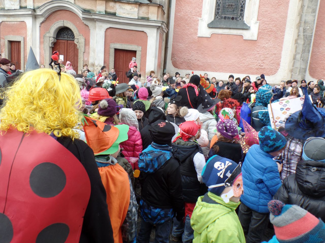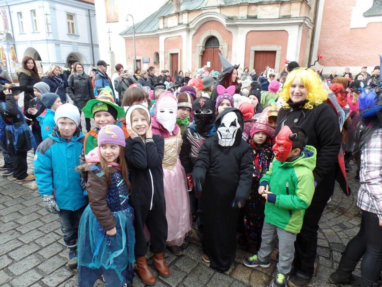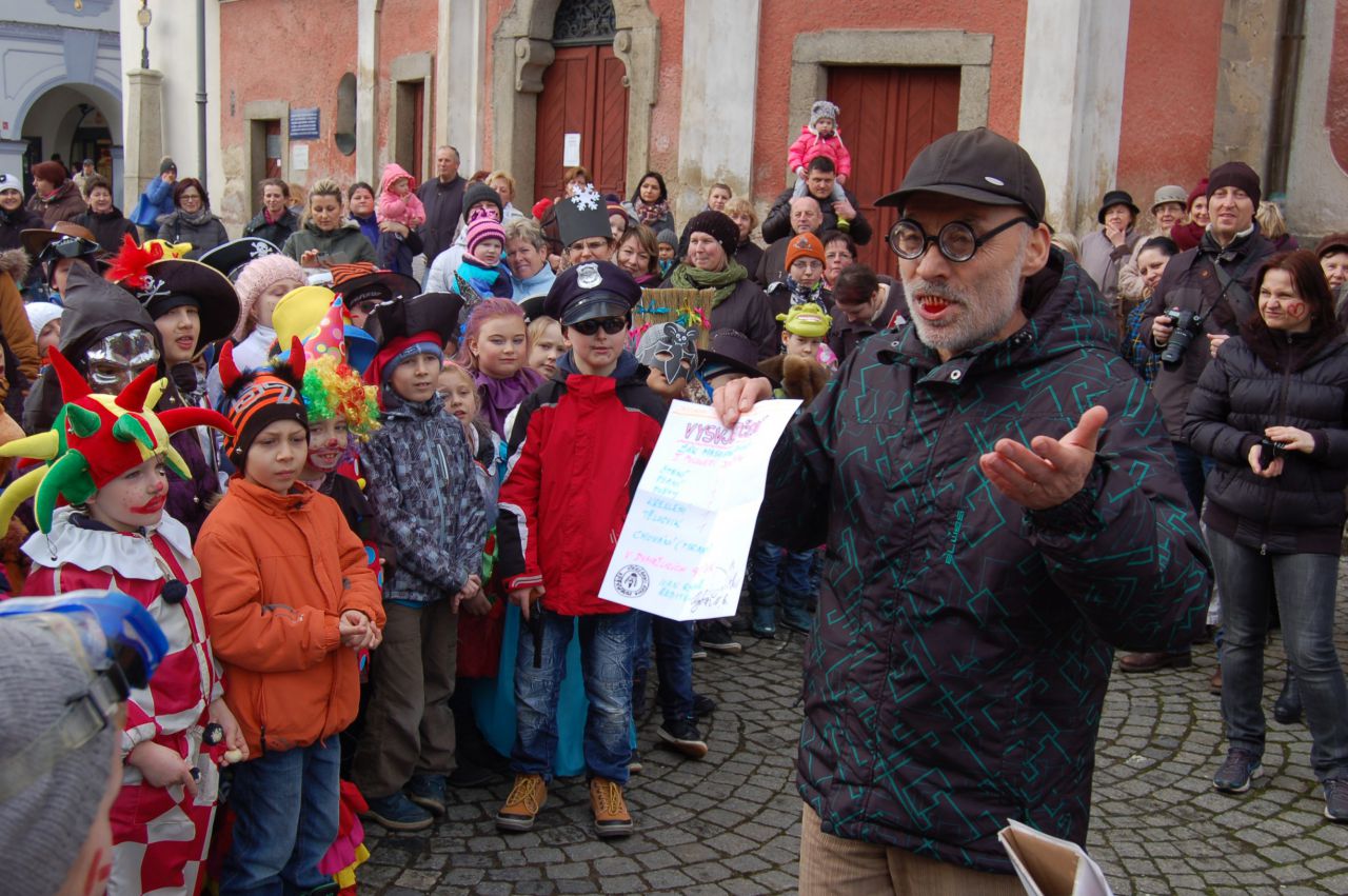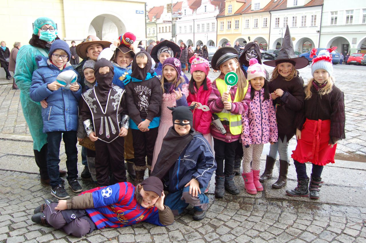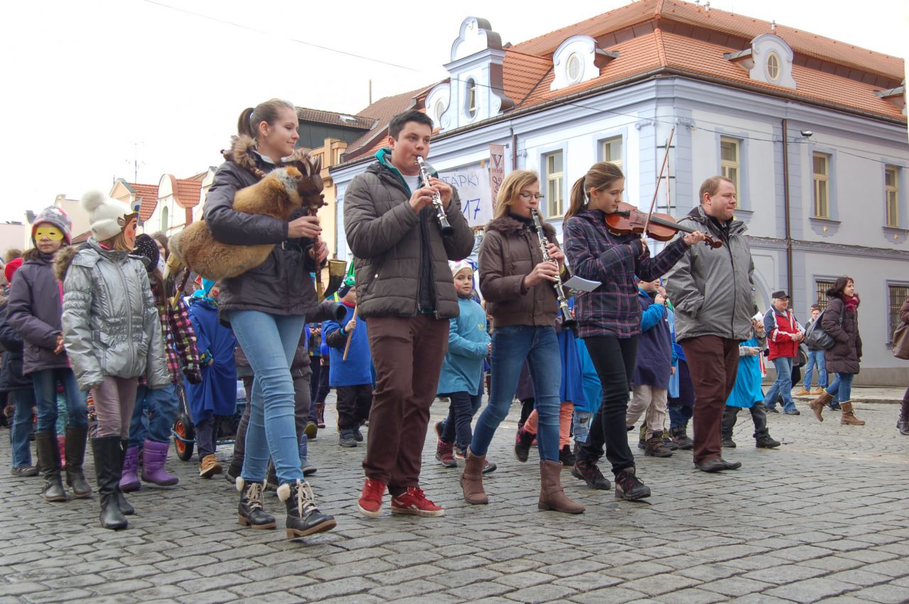 Úterní odpoledne 9. 2. 2016 patřilo v Domažlicích masopustnímu veselí. Proto se děti a paní vychovatelky ze školních družin obou domažlických škol převlékly do masek a vydaly se na masopustní průvod městem. Za doprovodu muzikantů ze ZUŠ prošly náměstím až k radnici. Oba místostarostové Domažlic dětem poděkovali a předali jim sladkosti.