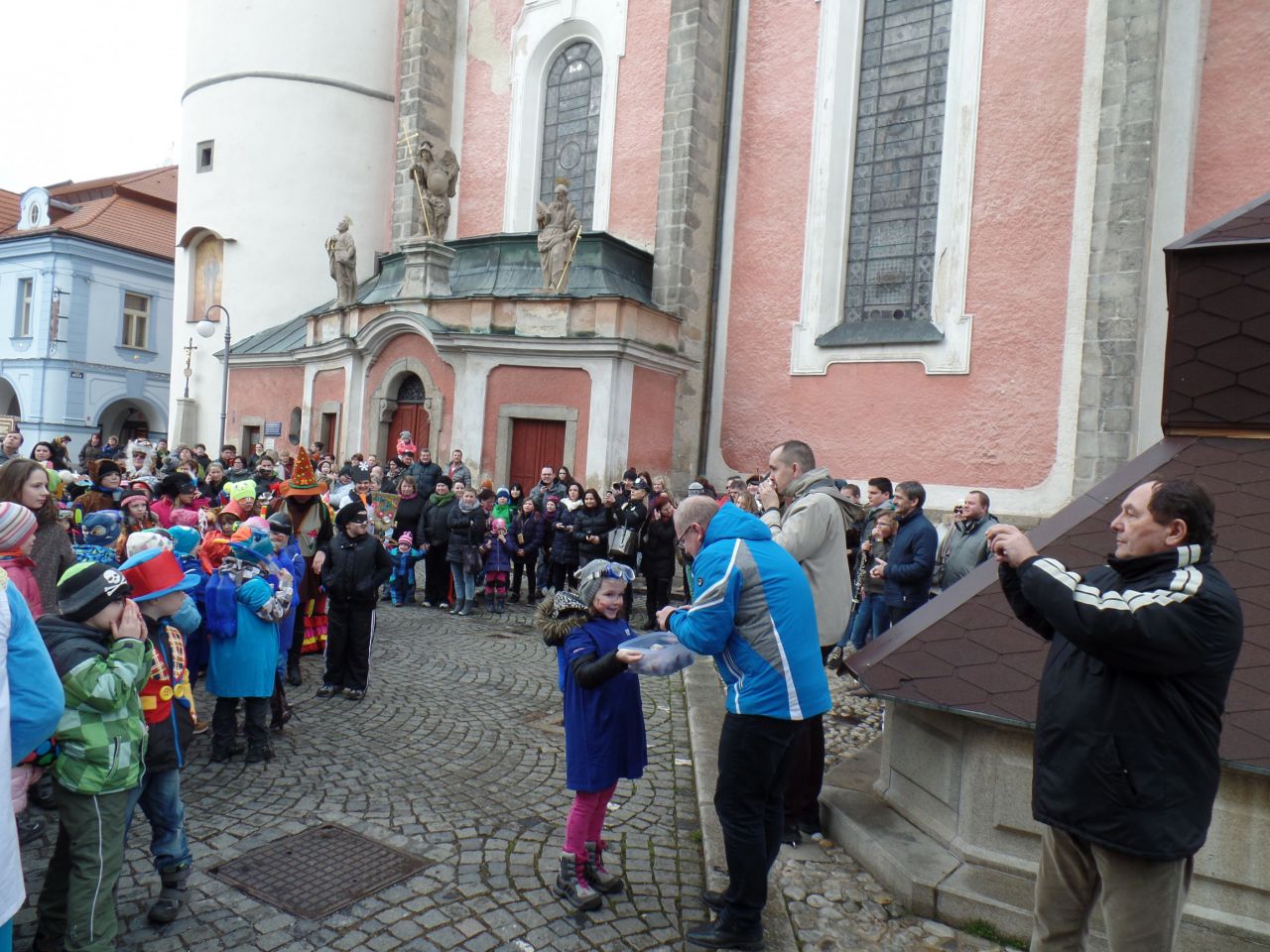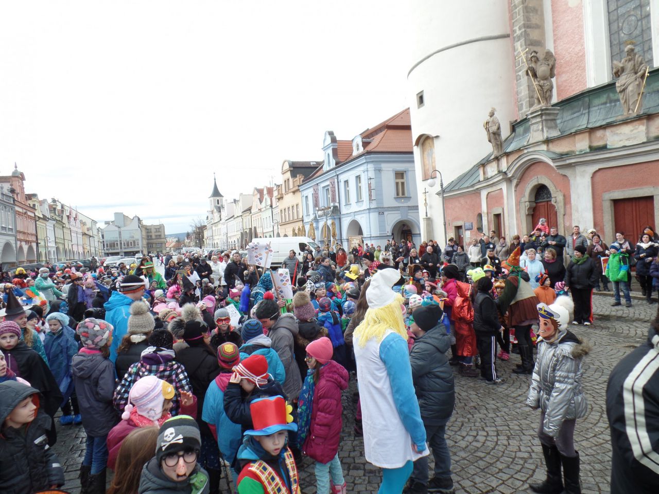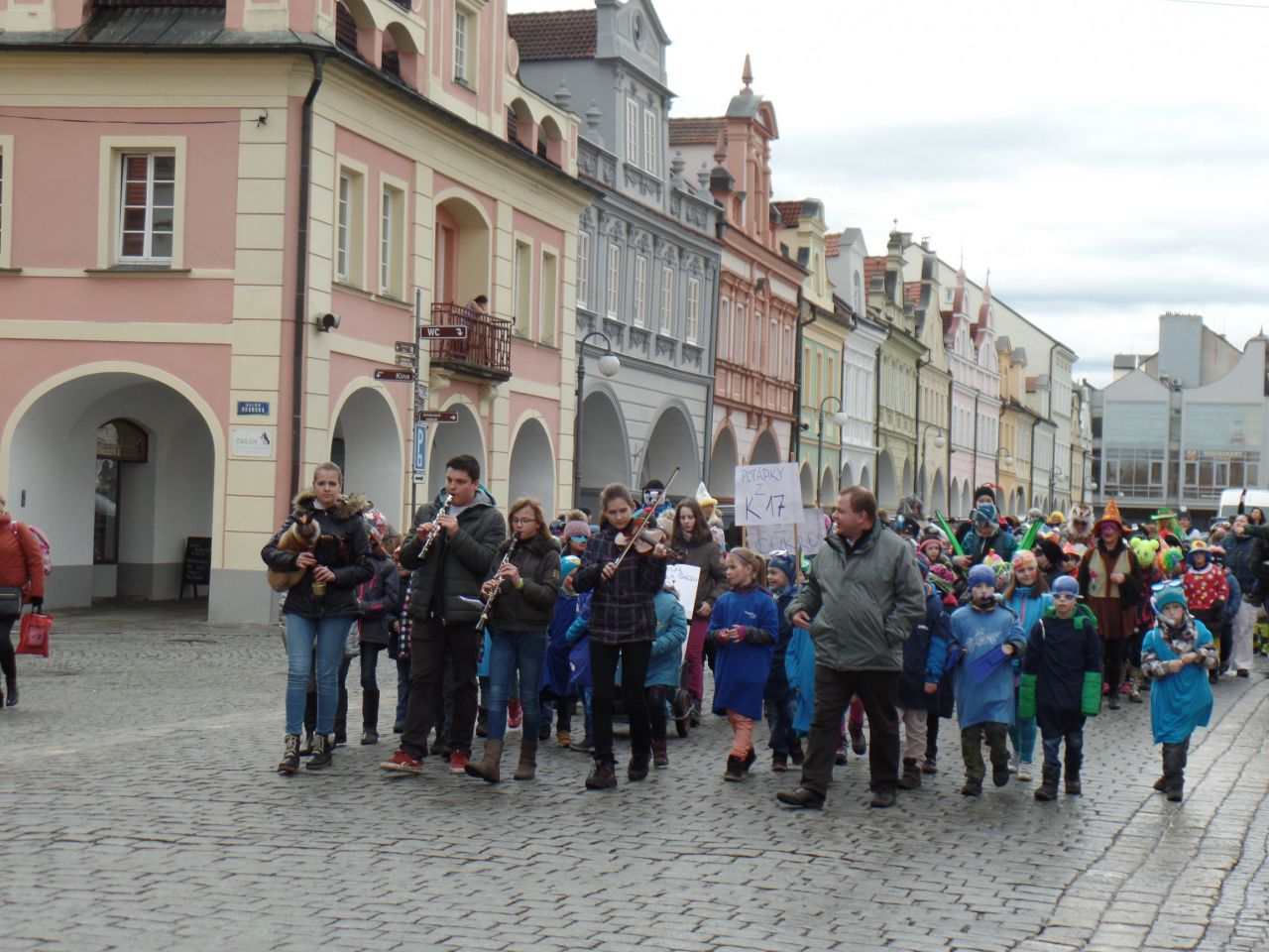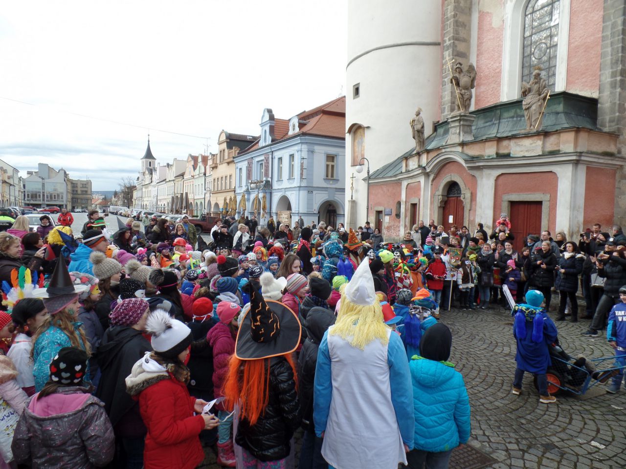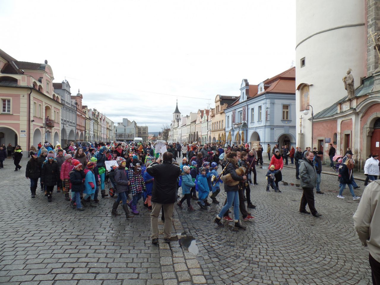 Úterní odpoledne 9. 2. 2016 patřilo v Domažlicích masopustnímu veselí. Proto se děti a paní vychovatelky ze školních družin obou domažlických škol převlékly do masek a vydaly se na masopustní průvod městem. Za doprovodu muzikantů ze ZUŠ prošly náměstím až k radnici. Oba místostarostové Domažlic dětem poděkovali a předali jim sladkosti.
