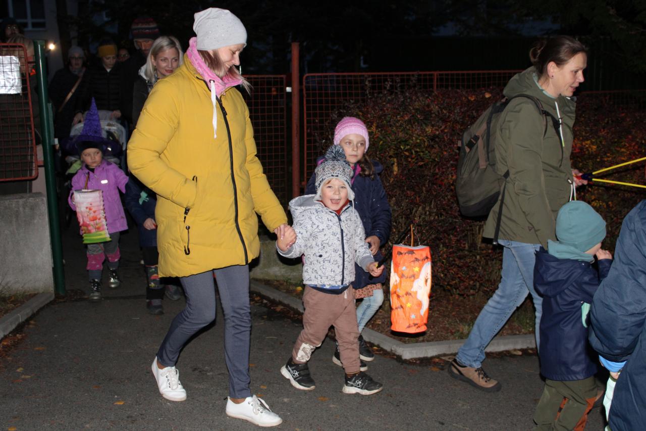 V úterý 31. října v podvečer uspořádala mateřská škola Msgre B. Staška lampionový halloweenský průvod.
