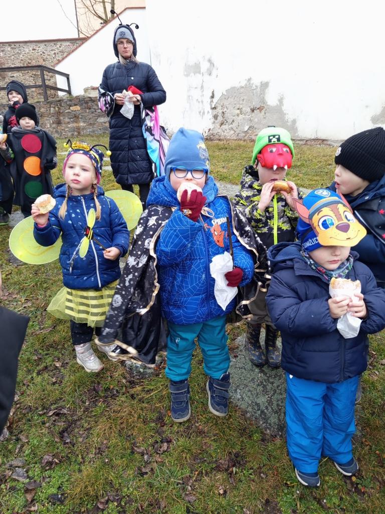 Ani letos nechyběly koblihy, tanec a zpěv na písně, které zahrál na dudy student ZUŠ Jindřicha Jindřicha Domažlice. Opět se dětem v masopustním průvodu podařilo vykouzlit úsměvy ve tvářích všem kolemjdoucím. Tato tradice se stala příjemnou radostí dětí u učitelek mateřské školy a věřím, že i zpestřením událostí v Domažlicích.