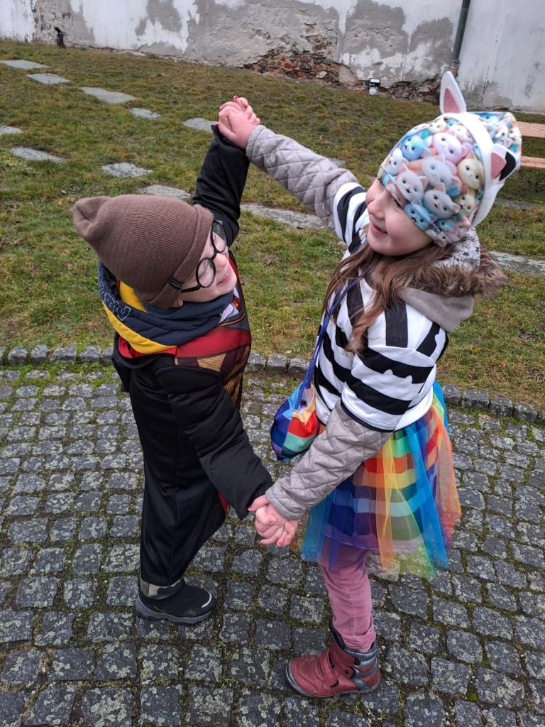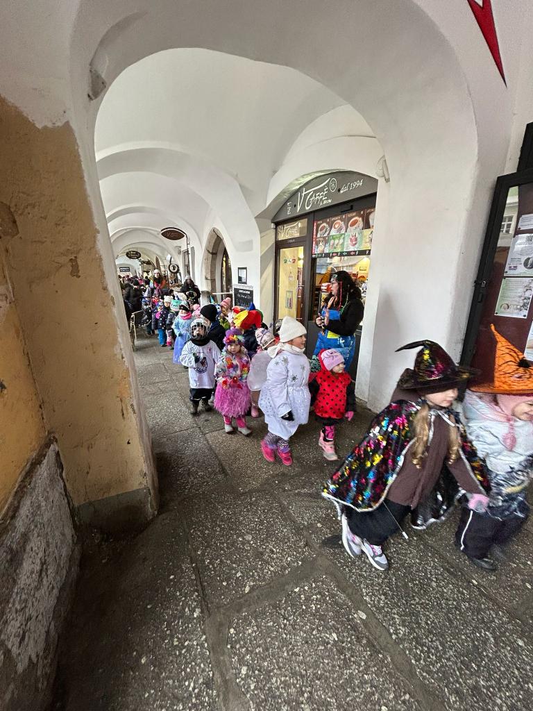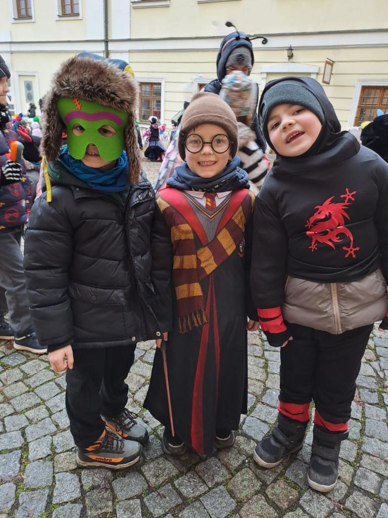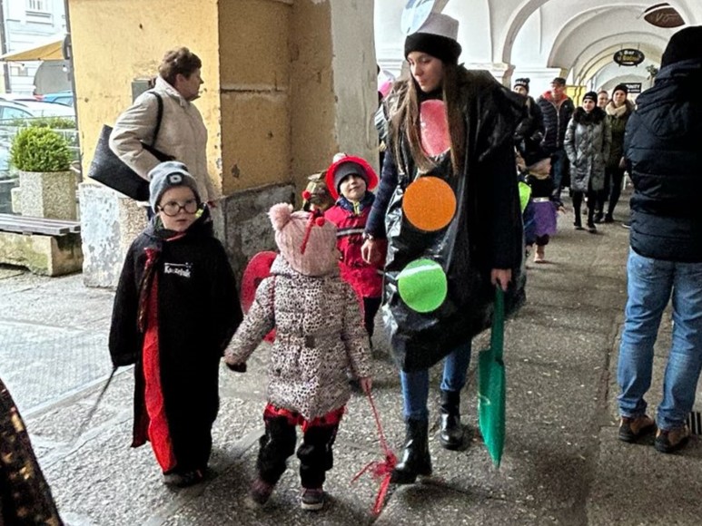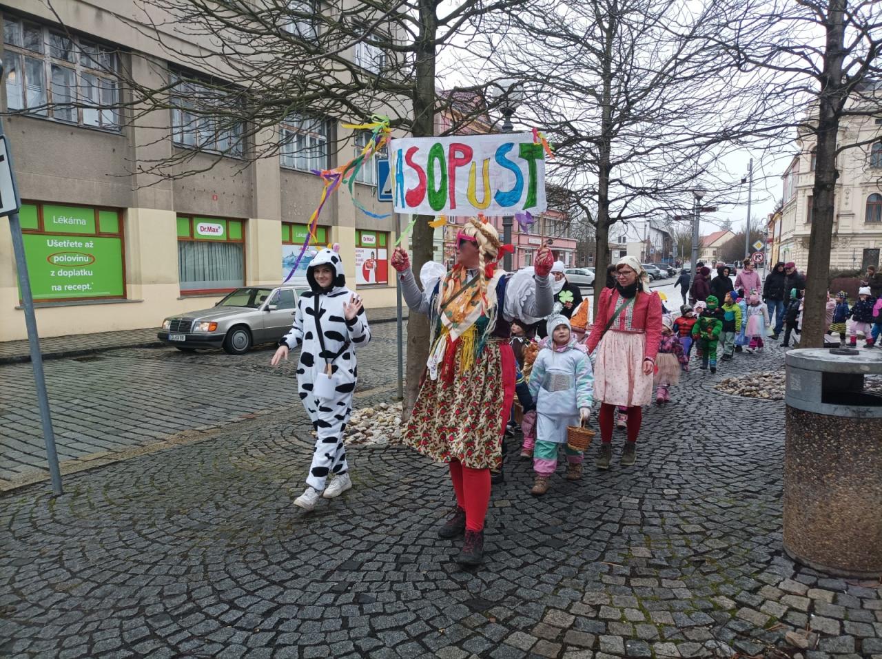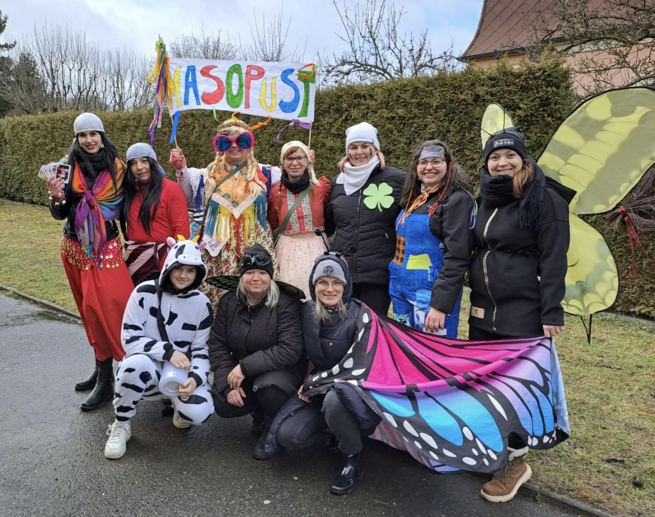 I přes deštivé ráno vyrazily v pátek 13. 2. 2026 již potřetí děti a učitelky z mateřských škol Zahradní, Michlova a Poděbradova do masopustního průvodu. Blížící se masopustní radovánky zavítaly díky nim i do Domažlic.