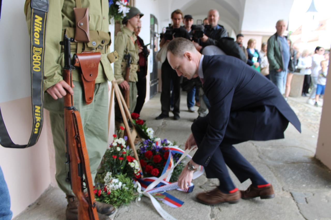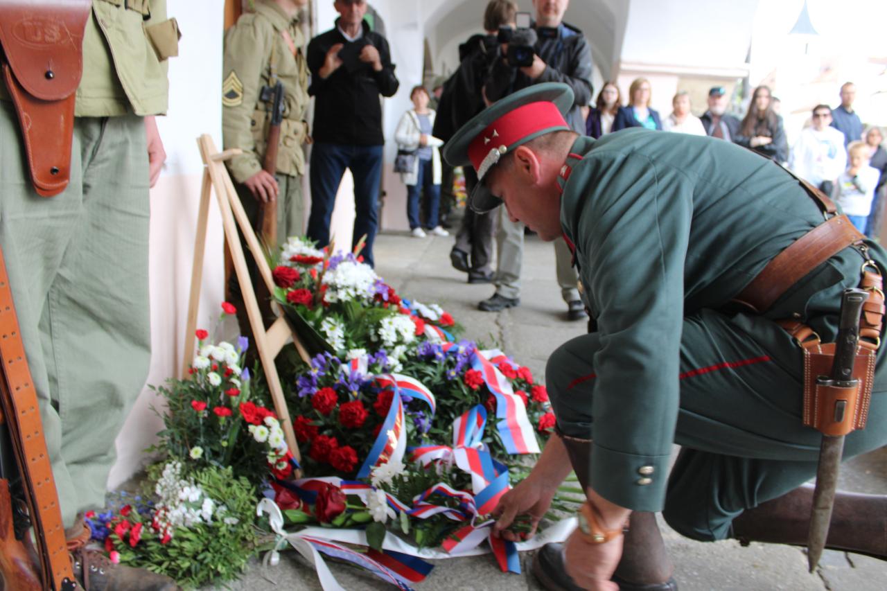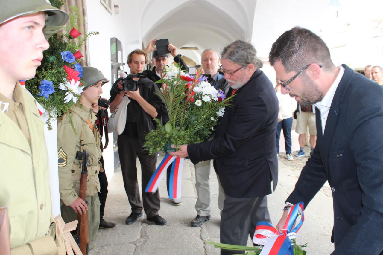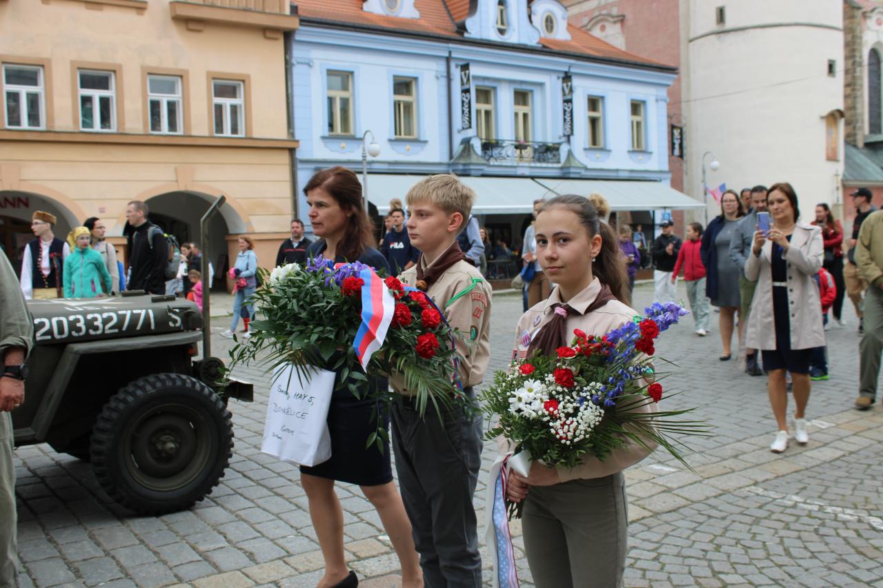 Položení kytic u pamětní desky Matta Konopa na náměstí Míru: