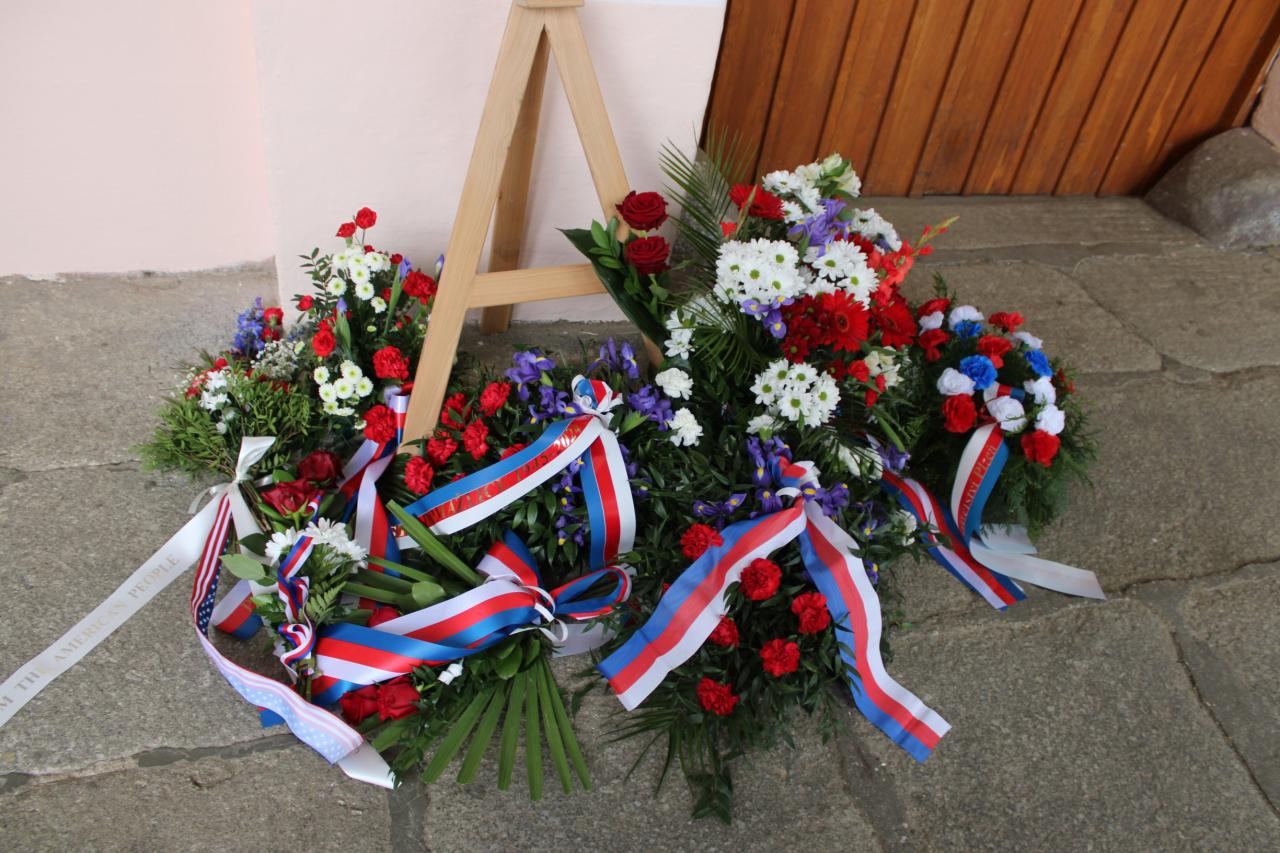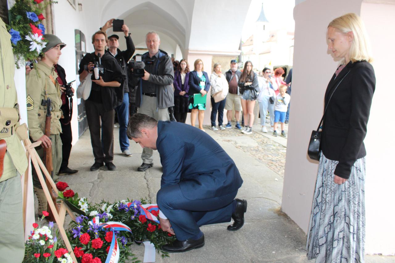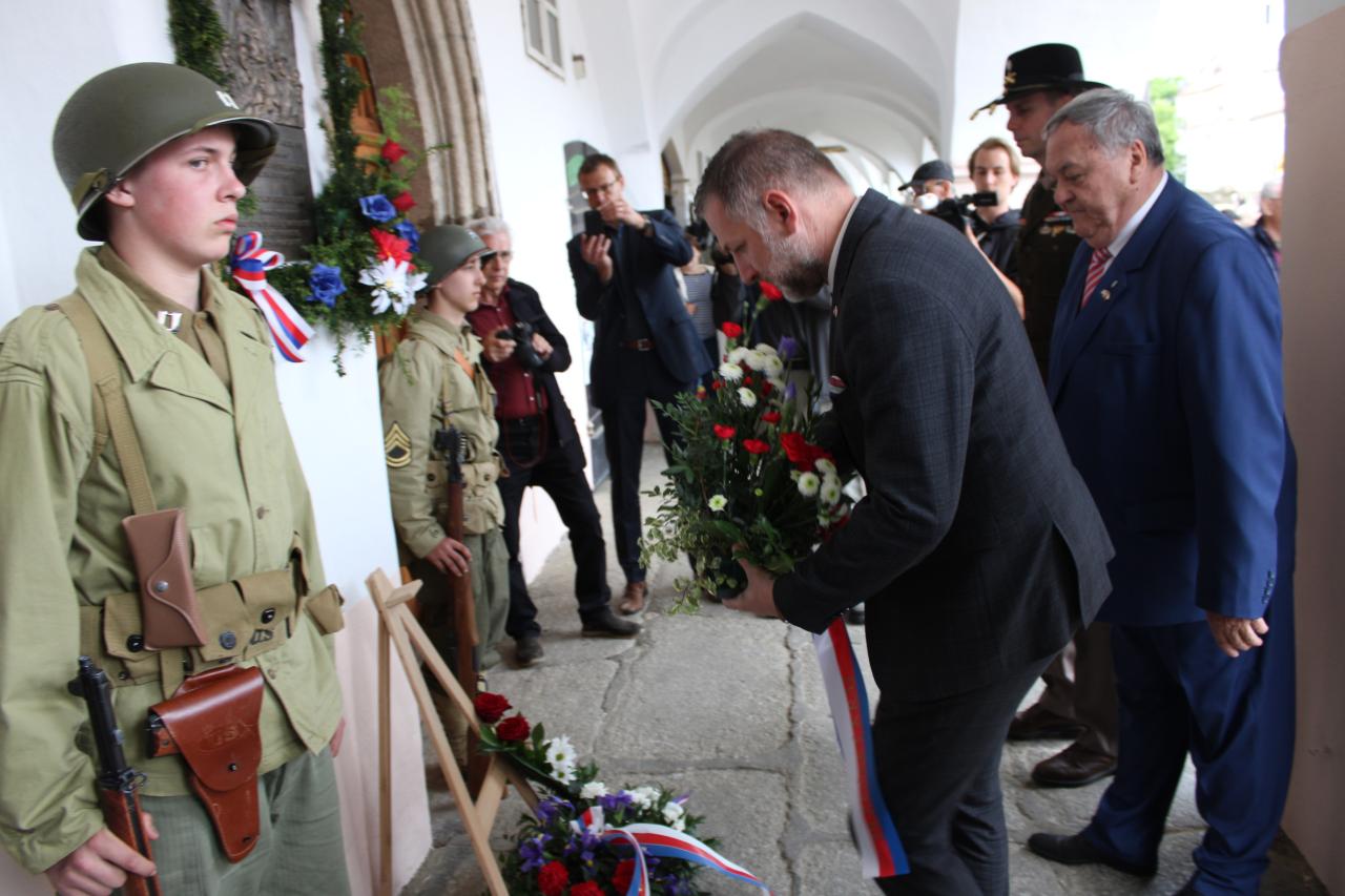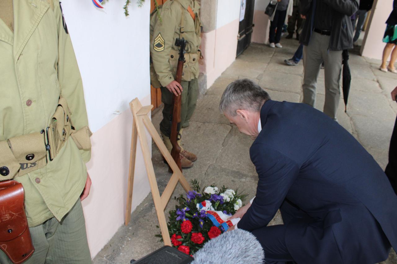 Položení kytic u pamětní desky Matta Konopa na náměstí Míru:
