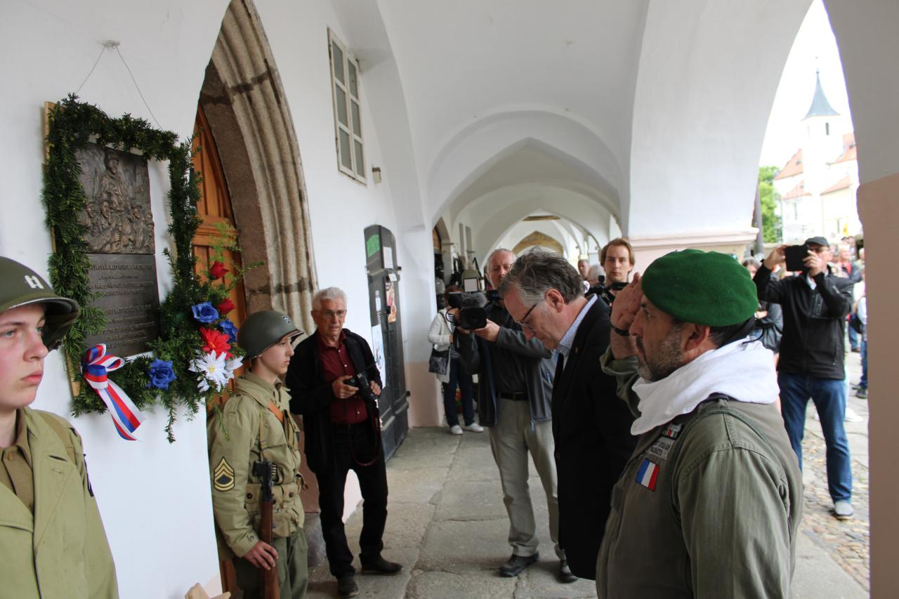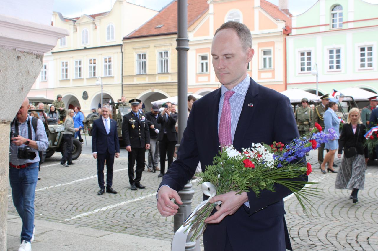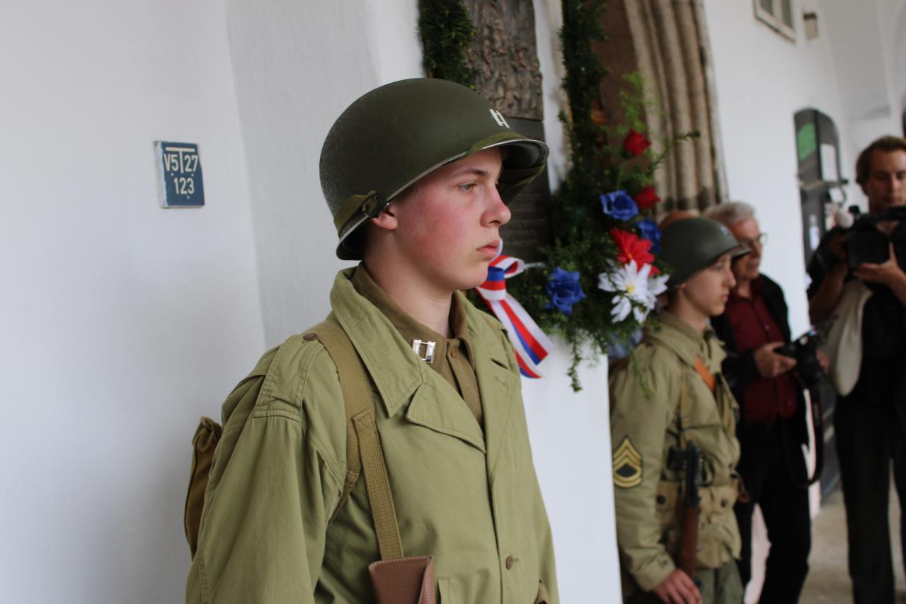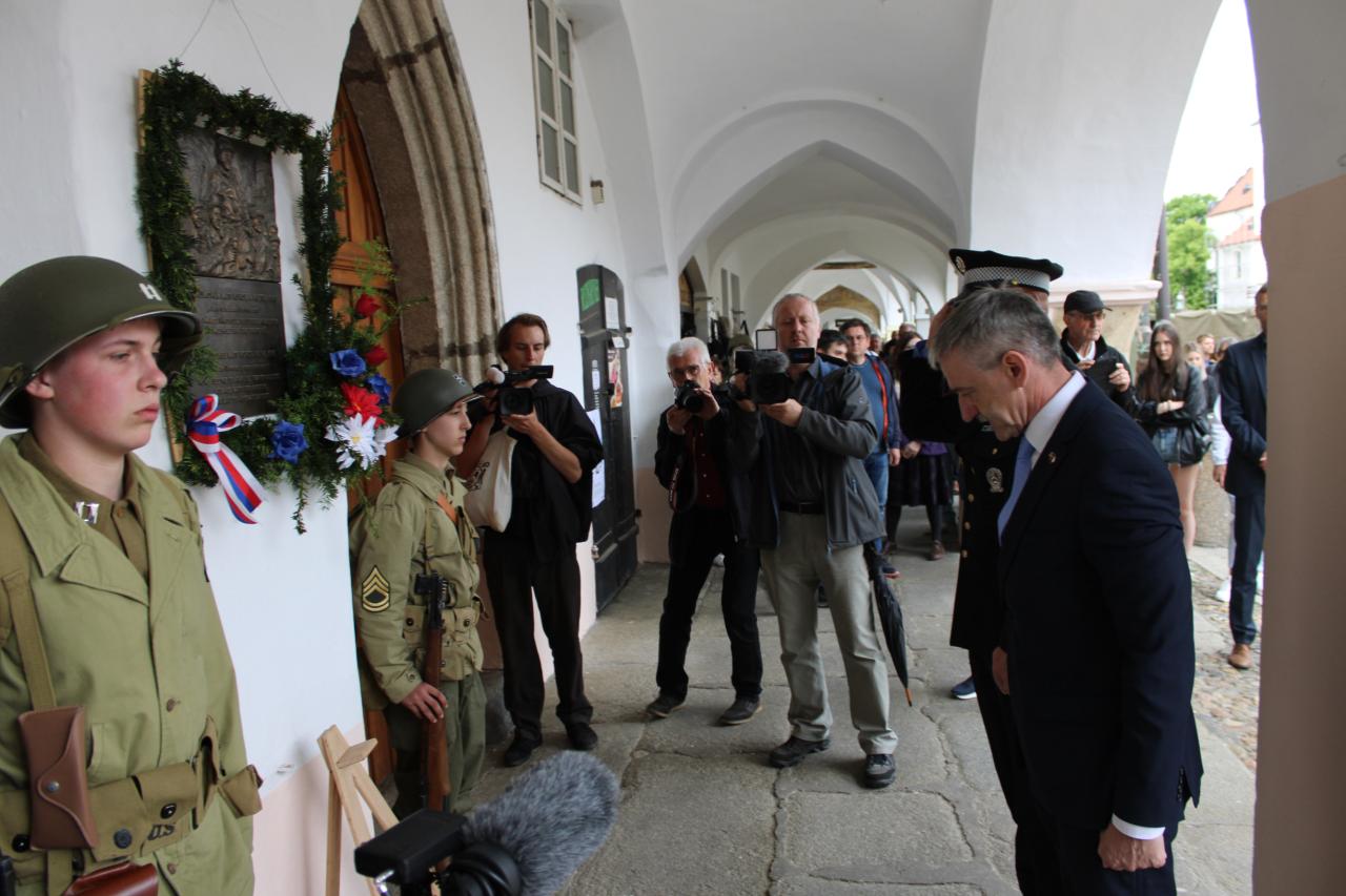 Položení kytic u pamětní desky Matta Konopa na náměstí Míru: