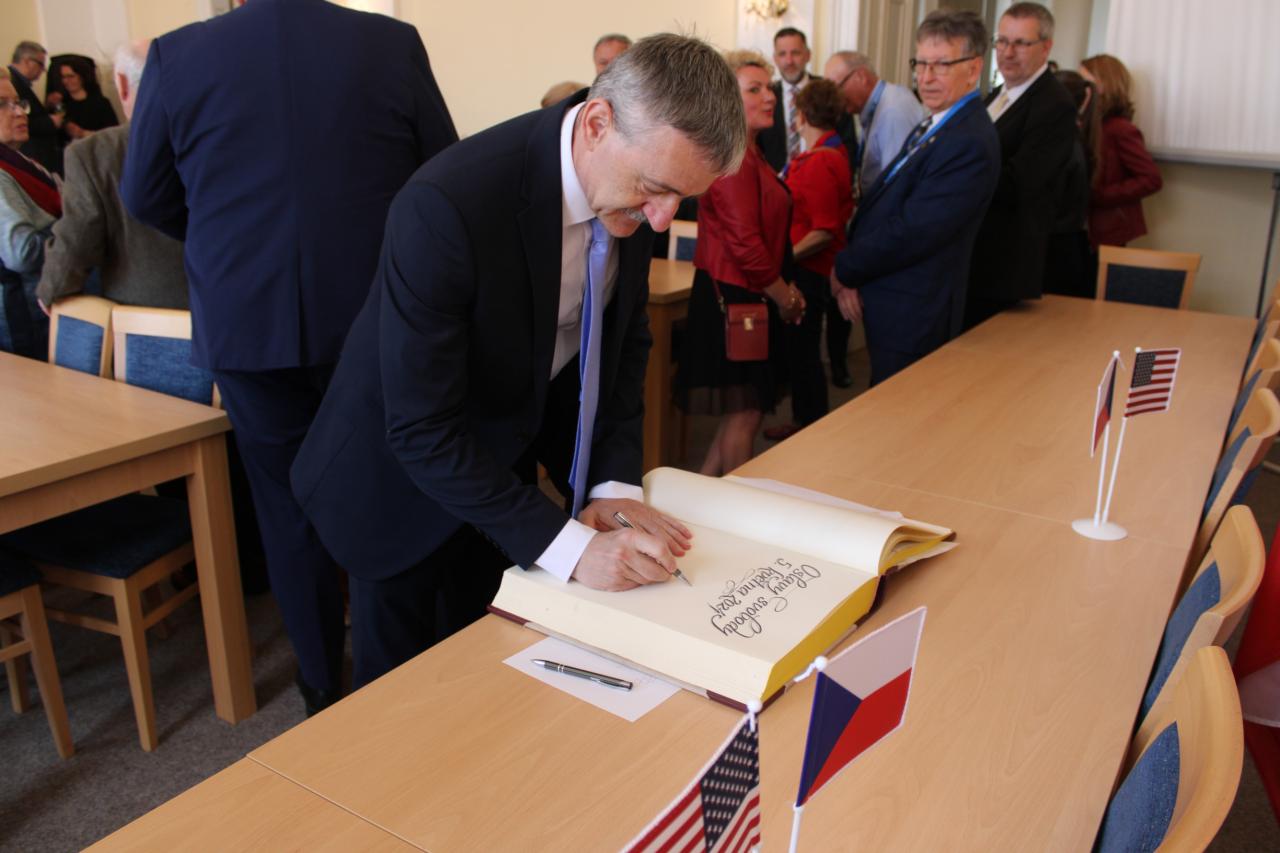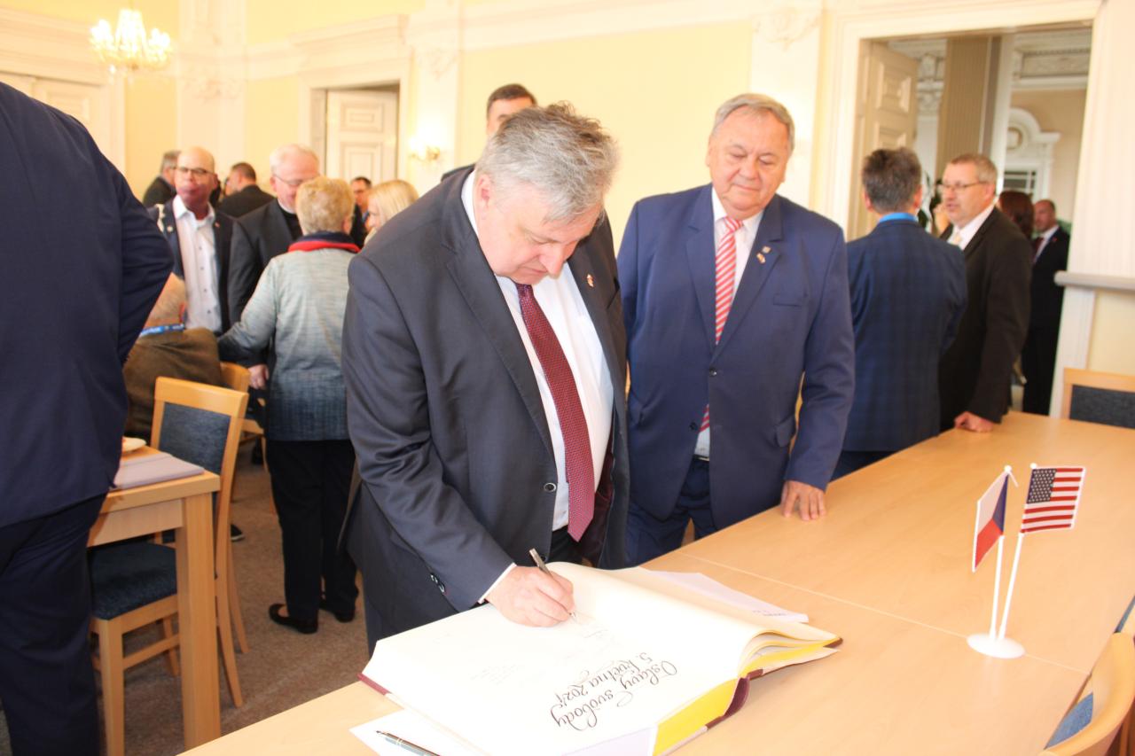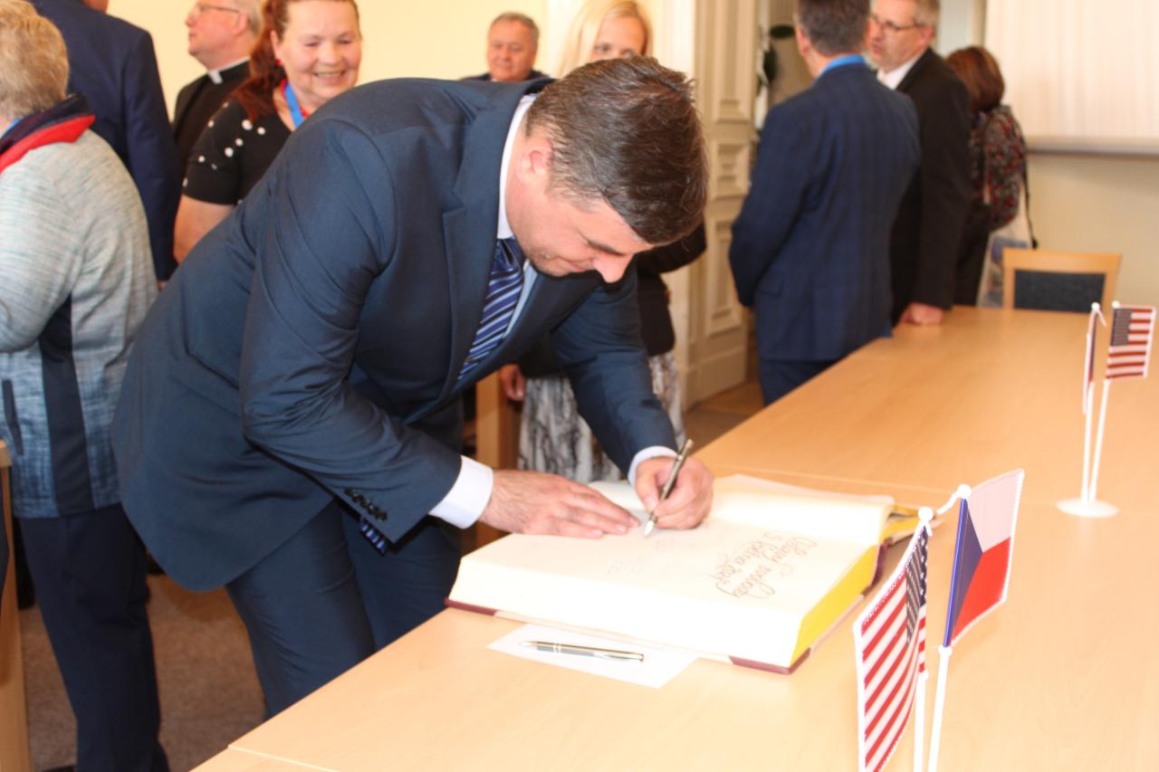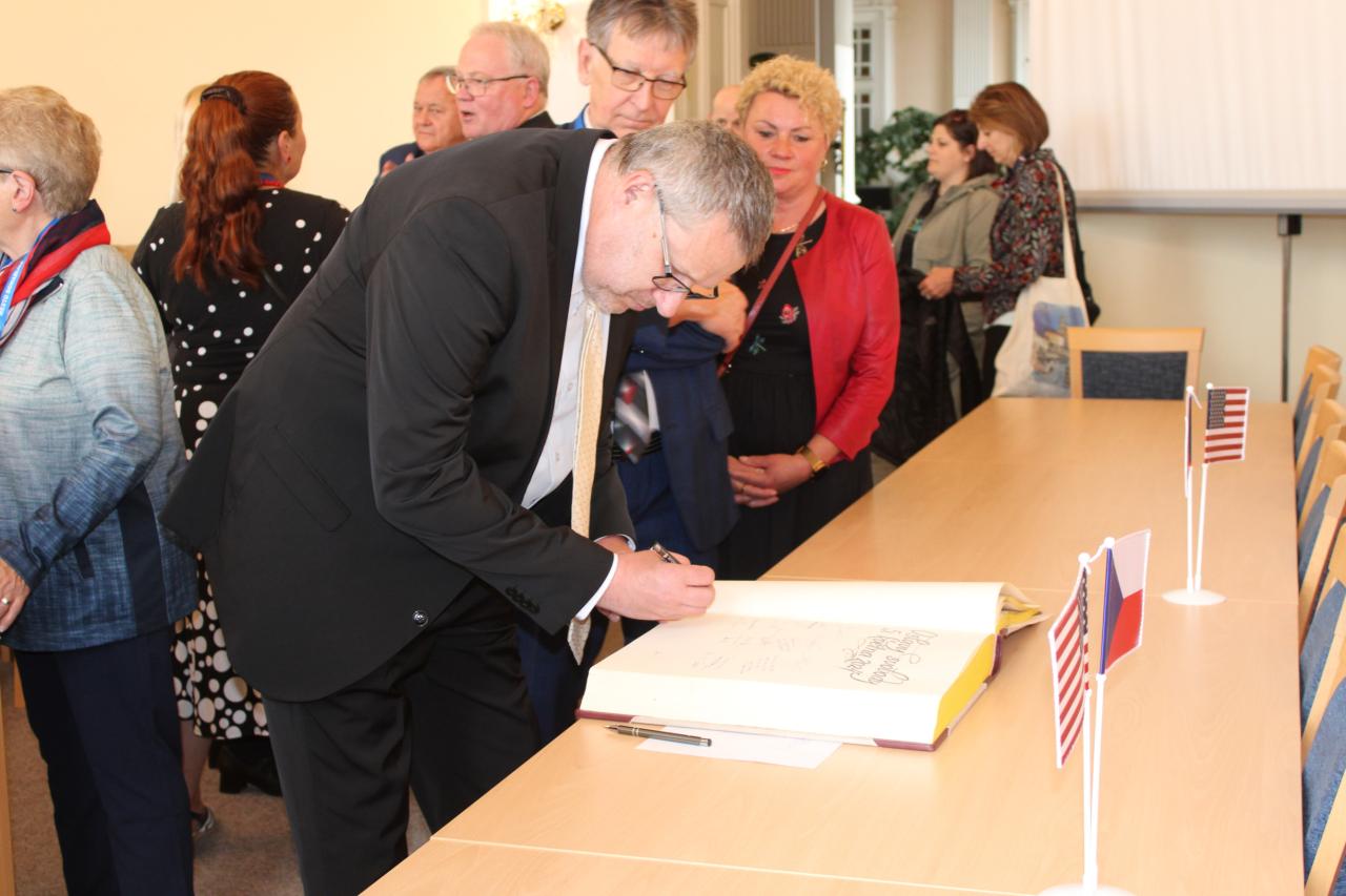 Neformální přijetí hostů slavnosti na domažlické radnici bylo spojeno se zápisy do pamětní knihy města:
