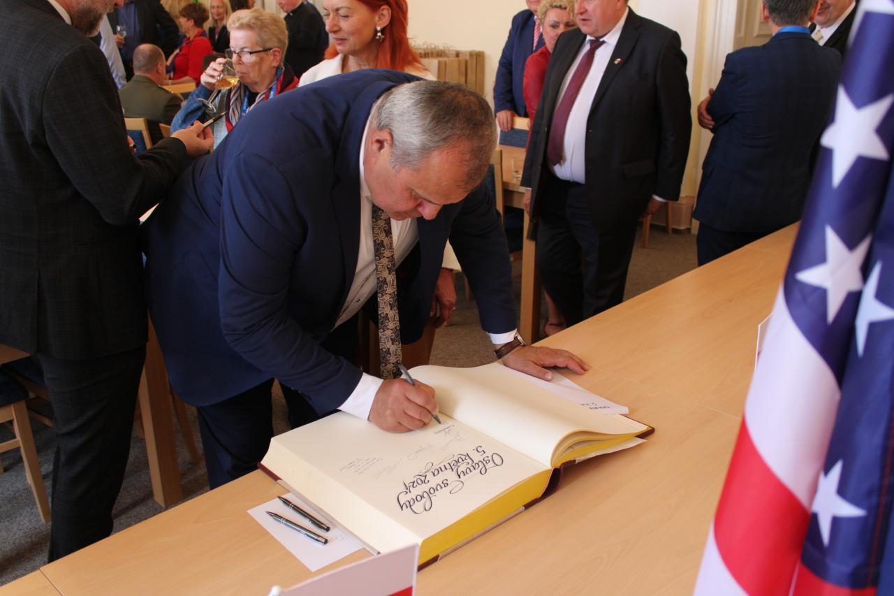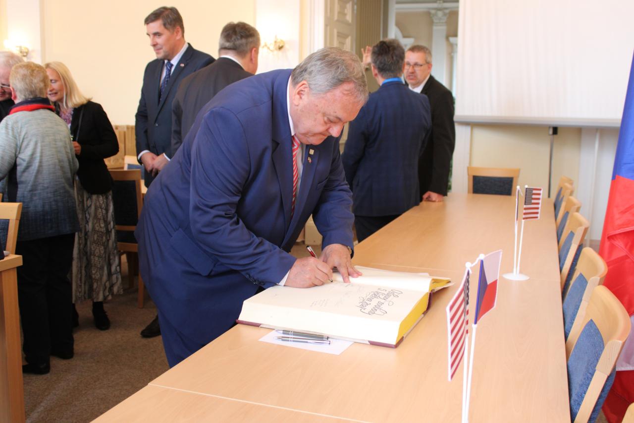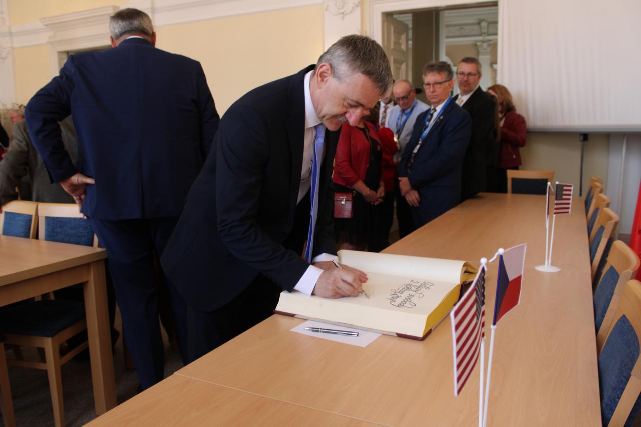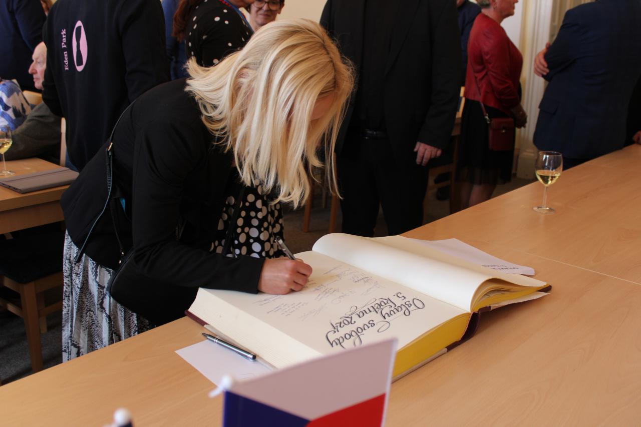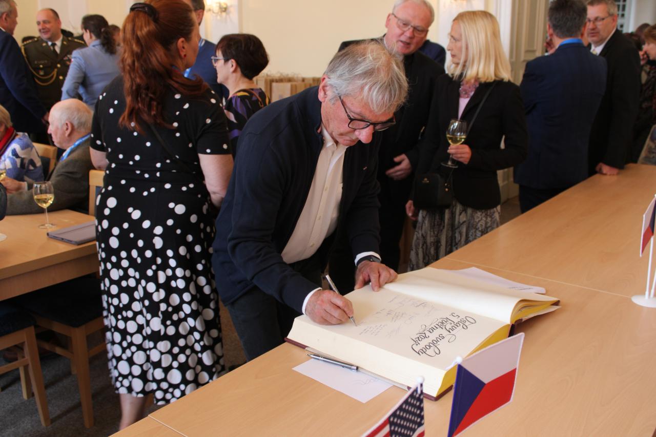 Neformální přijetí hostů slavnosti na domažlické radnici bylo spojeno se zápisy do pamětní knihy města: