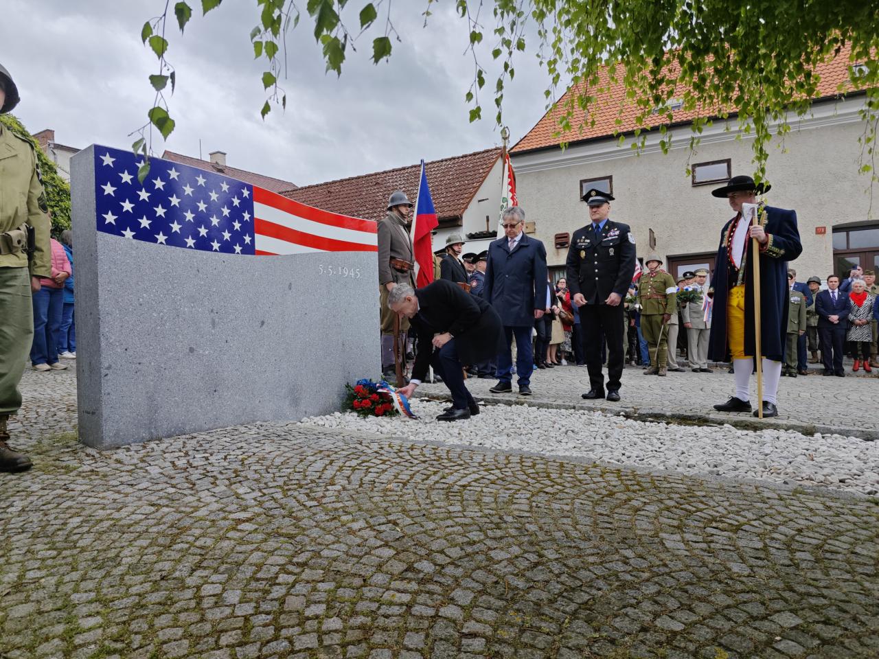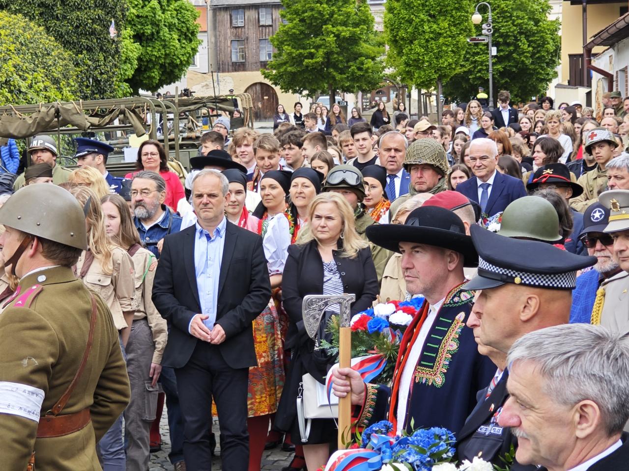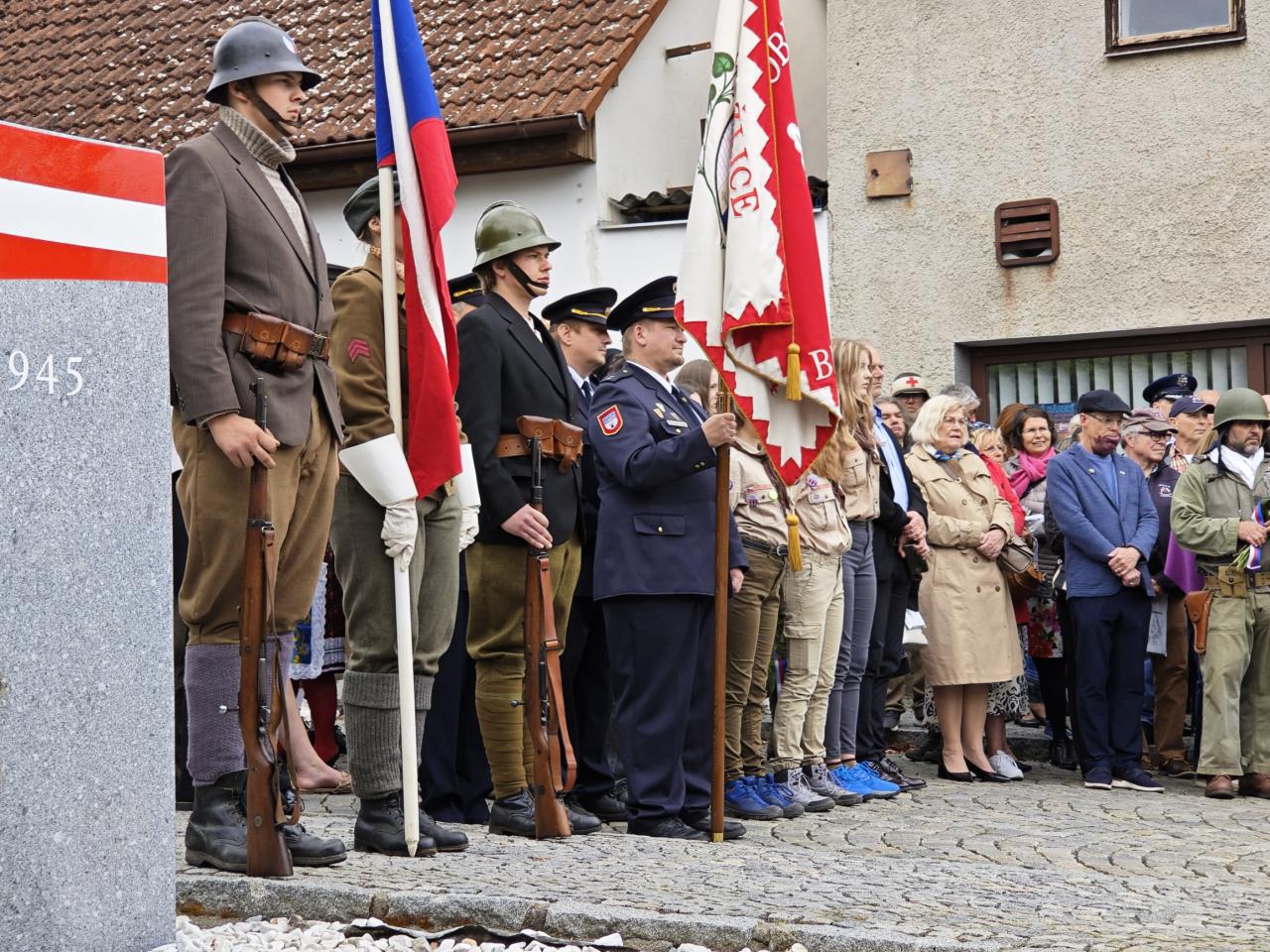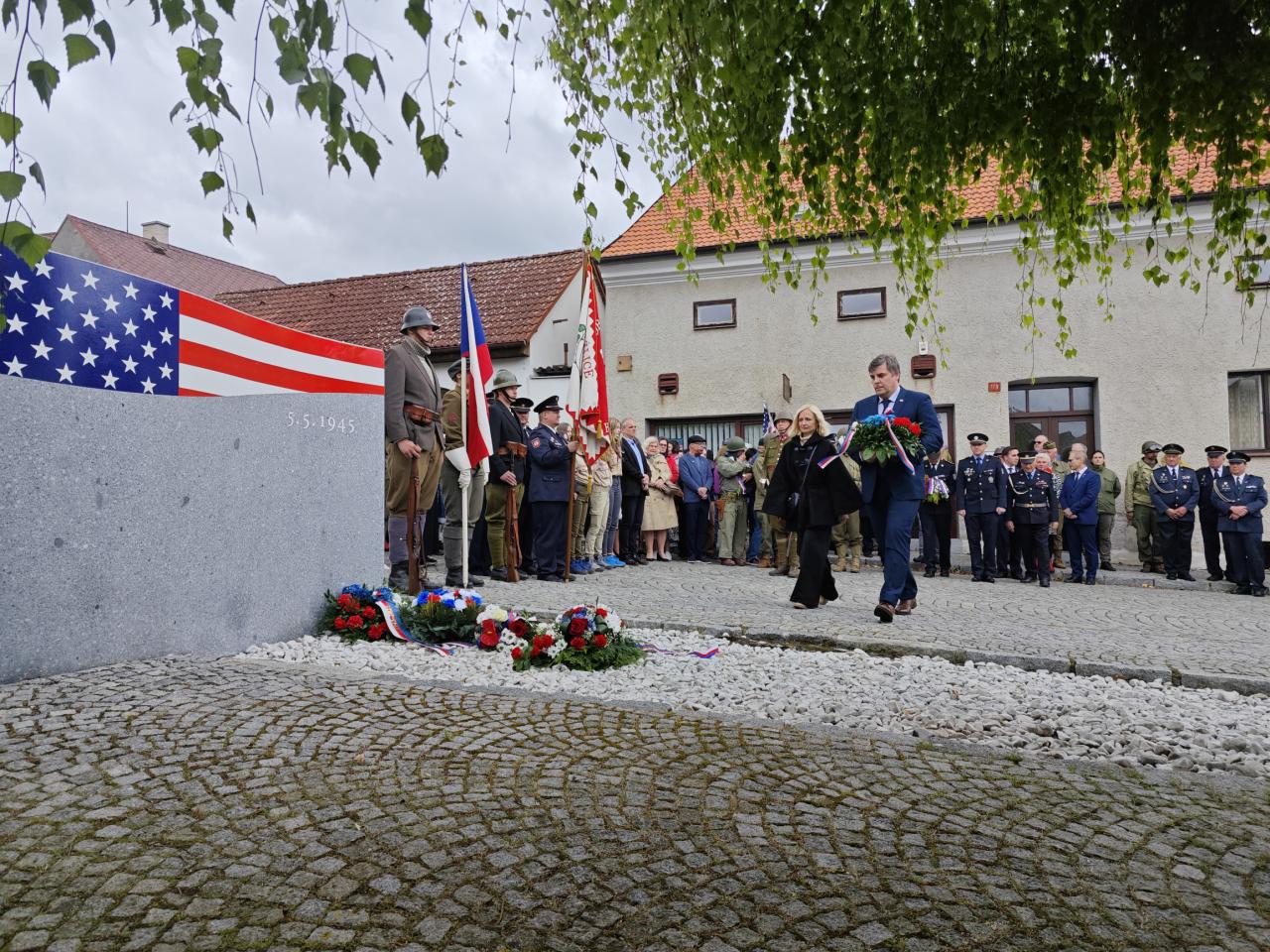 U pomníku osvobození pod Chodským hradem proběhl po poledni pietní akt s položením květin a věnců.
