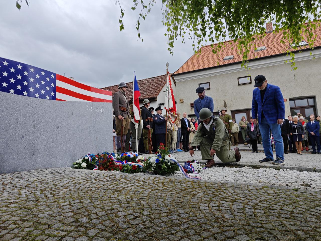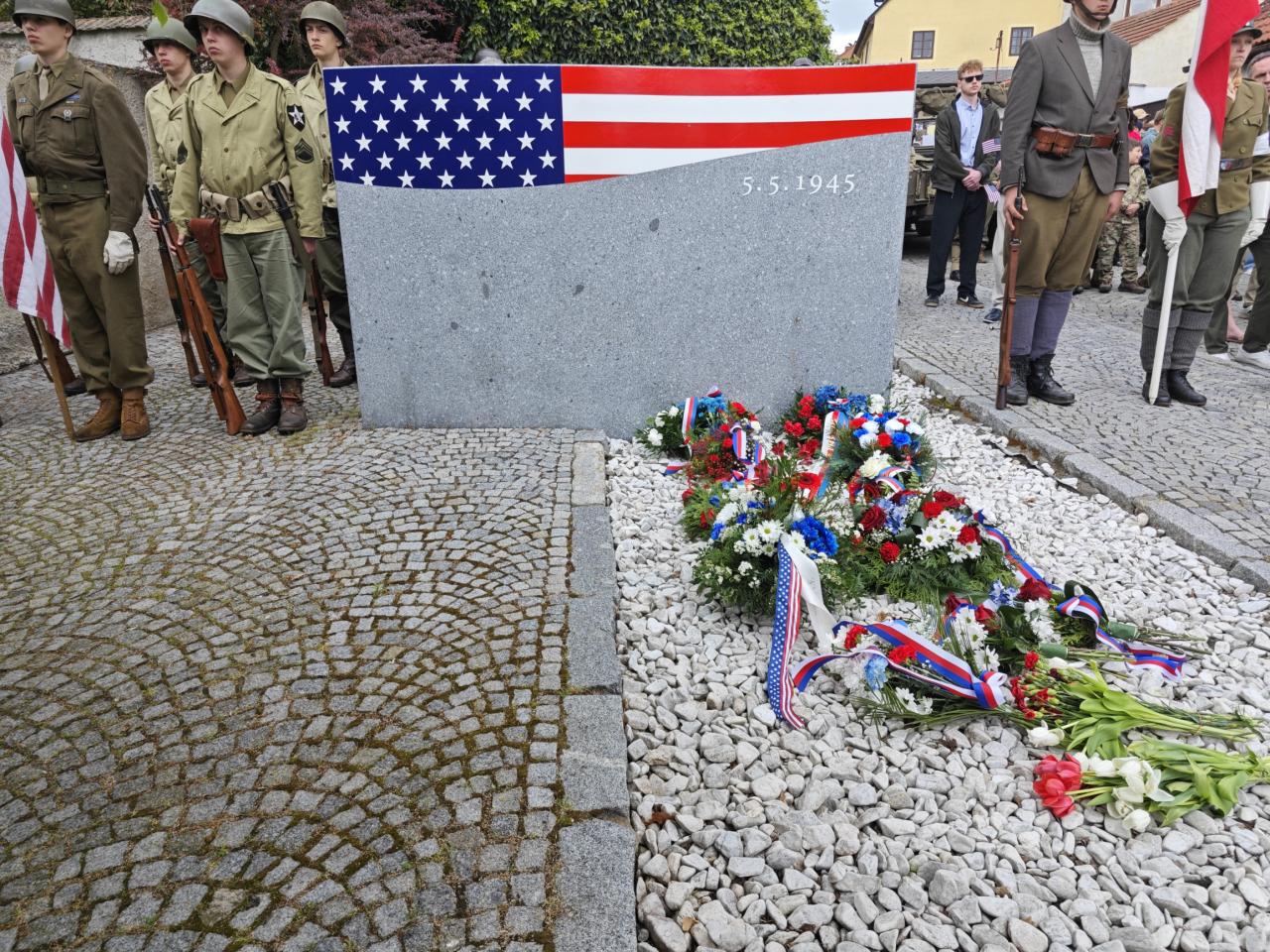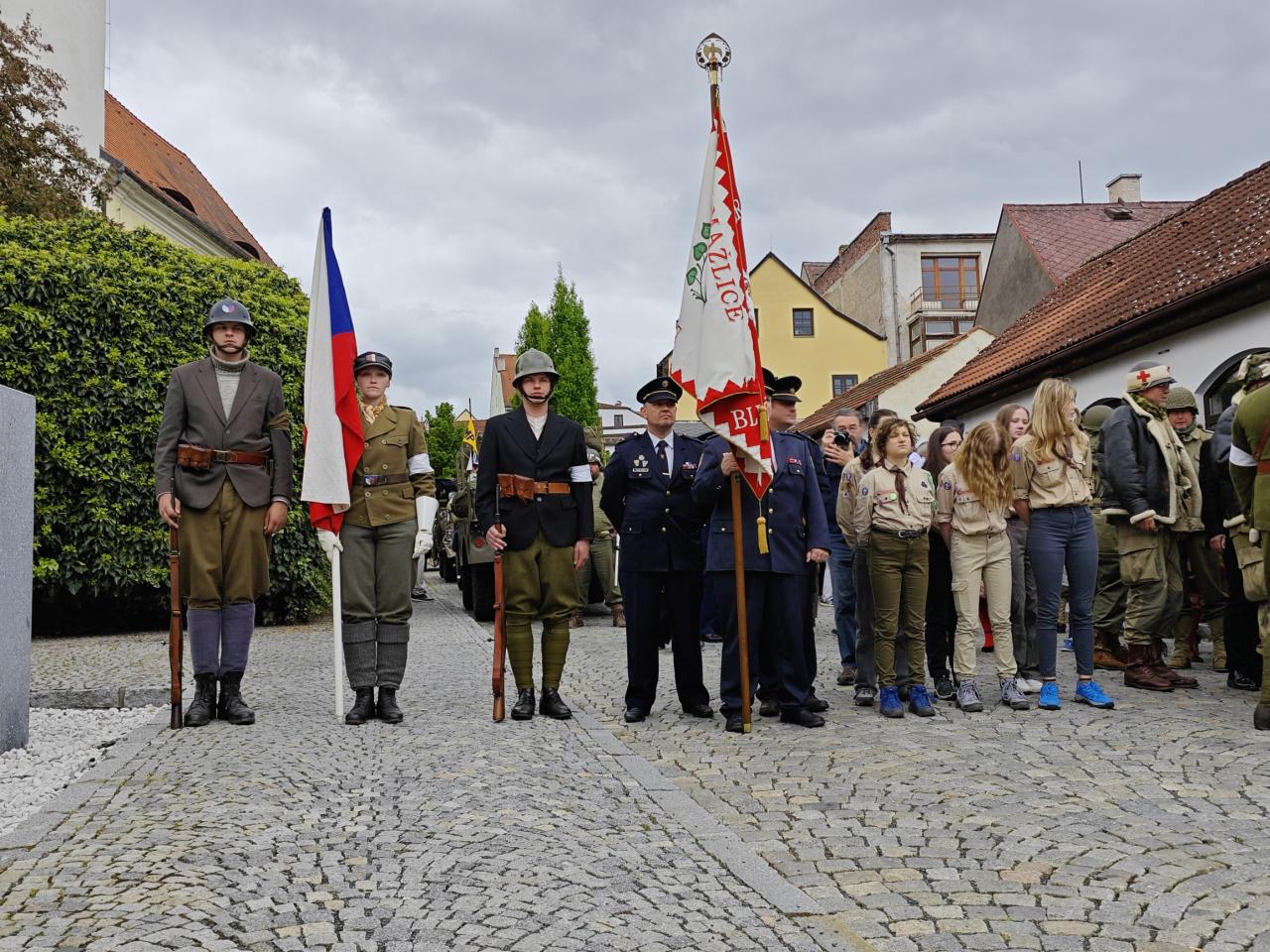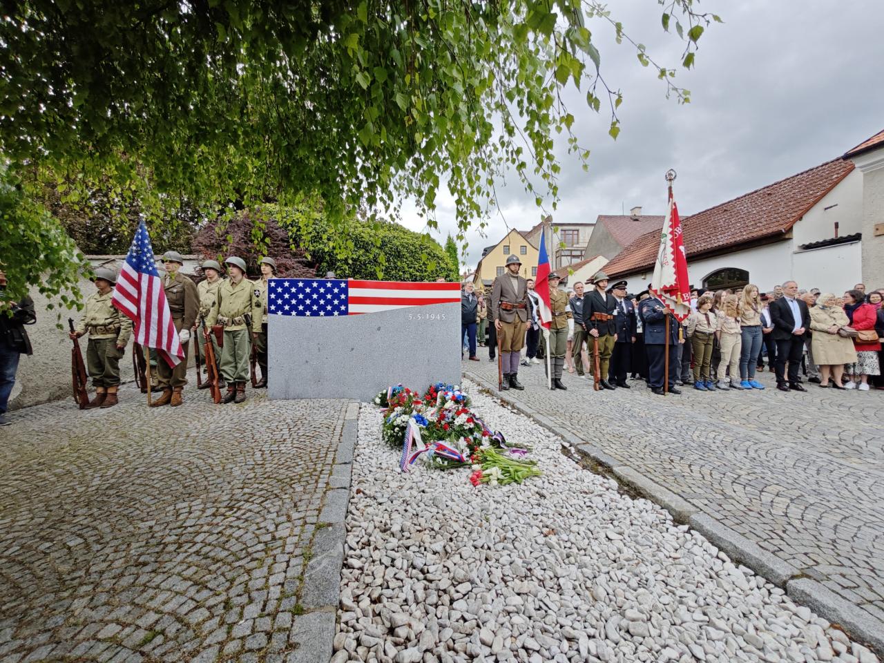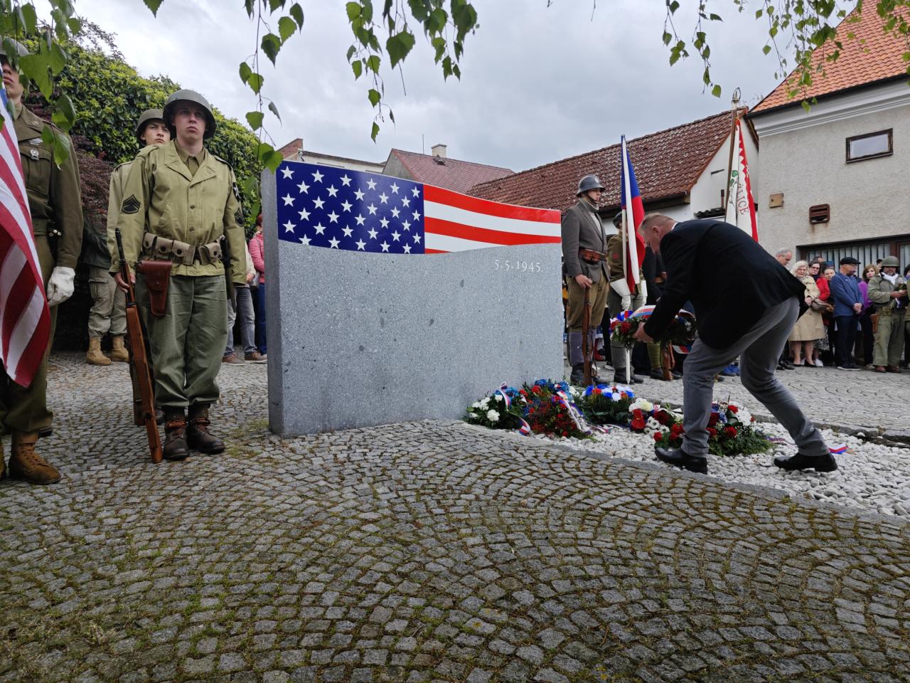 U pomníku osvobození pod Chodským hradem proběhl po poledni pietní akt s položením květin a věnců.