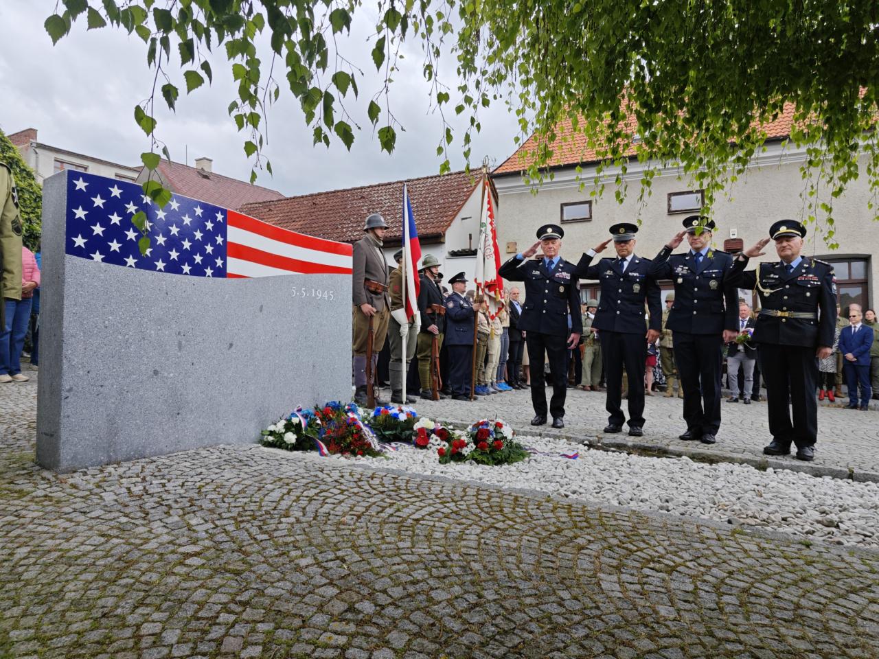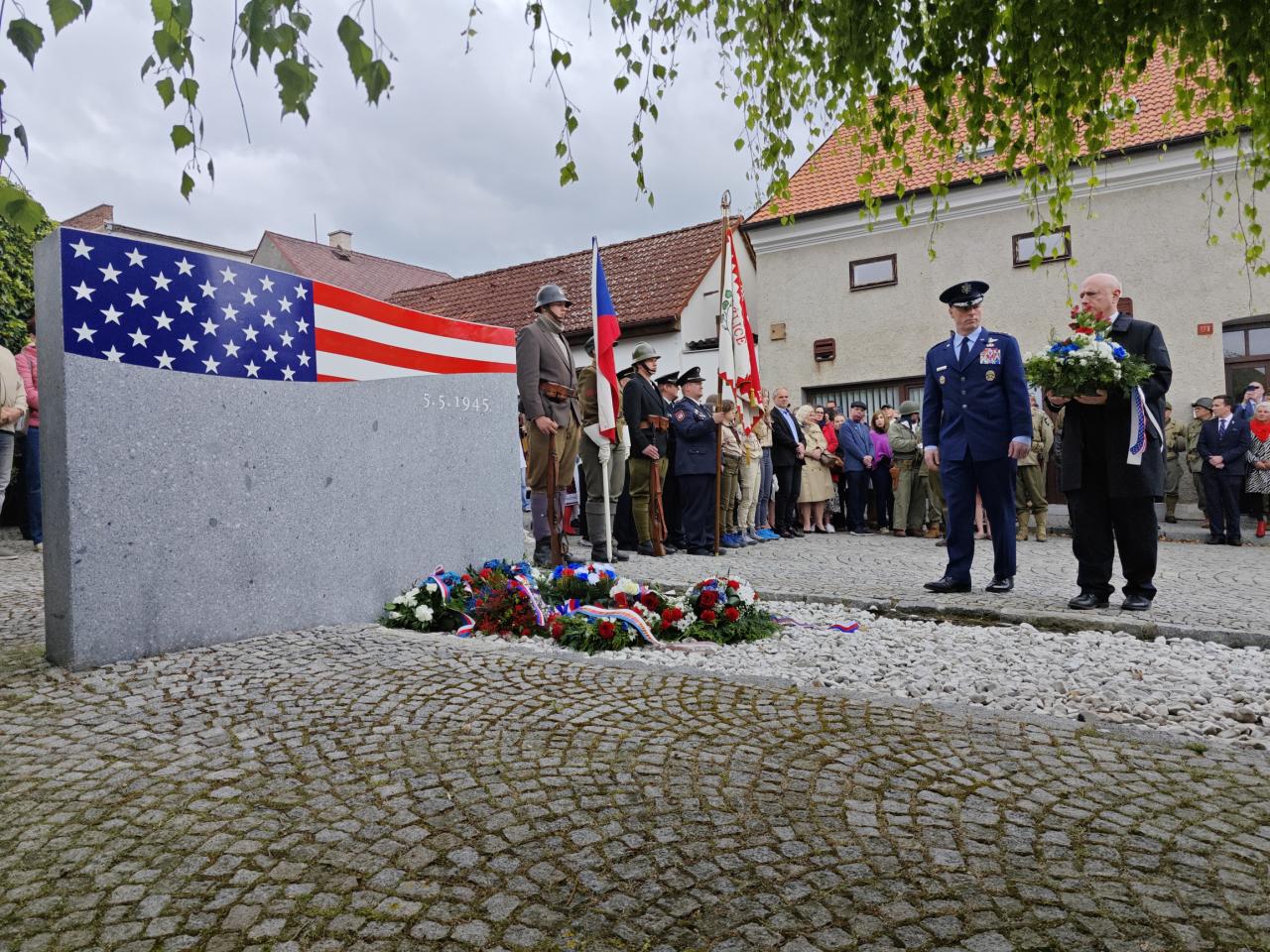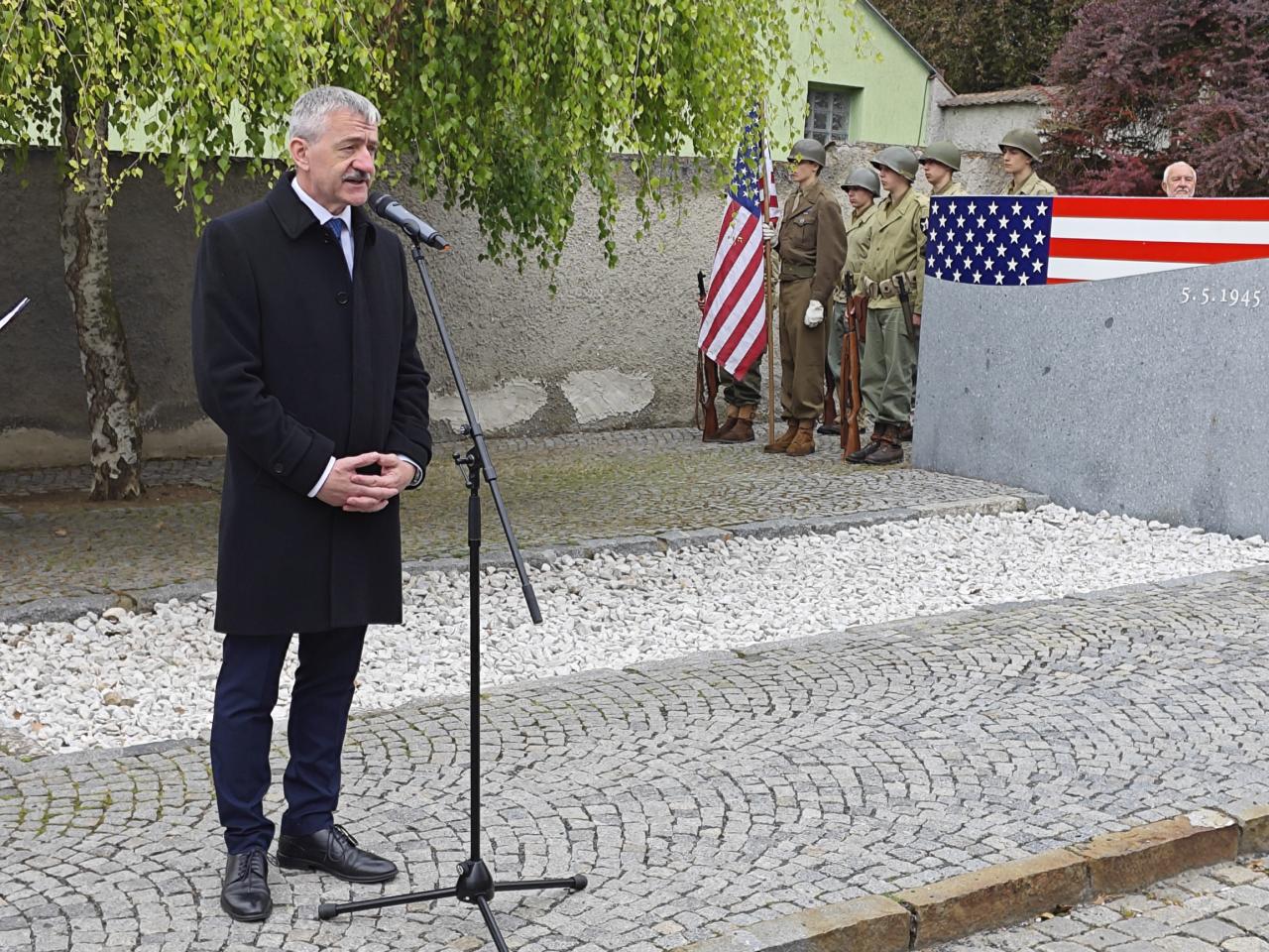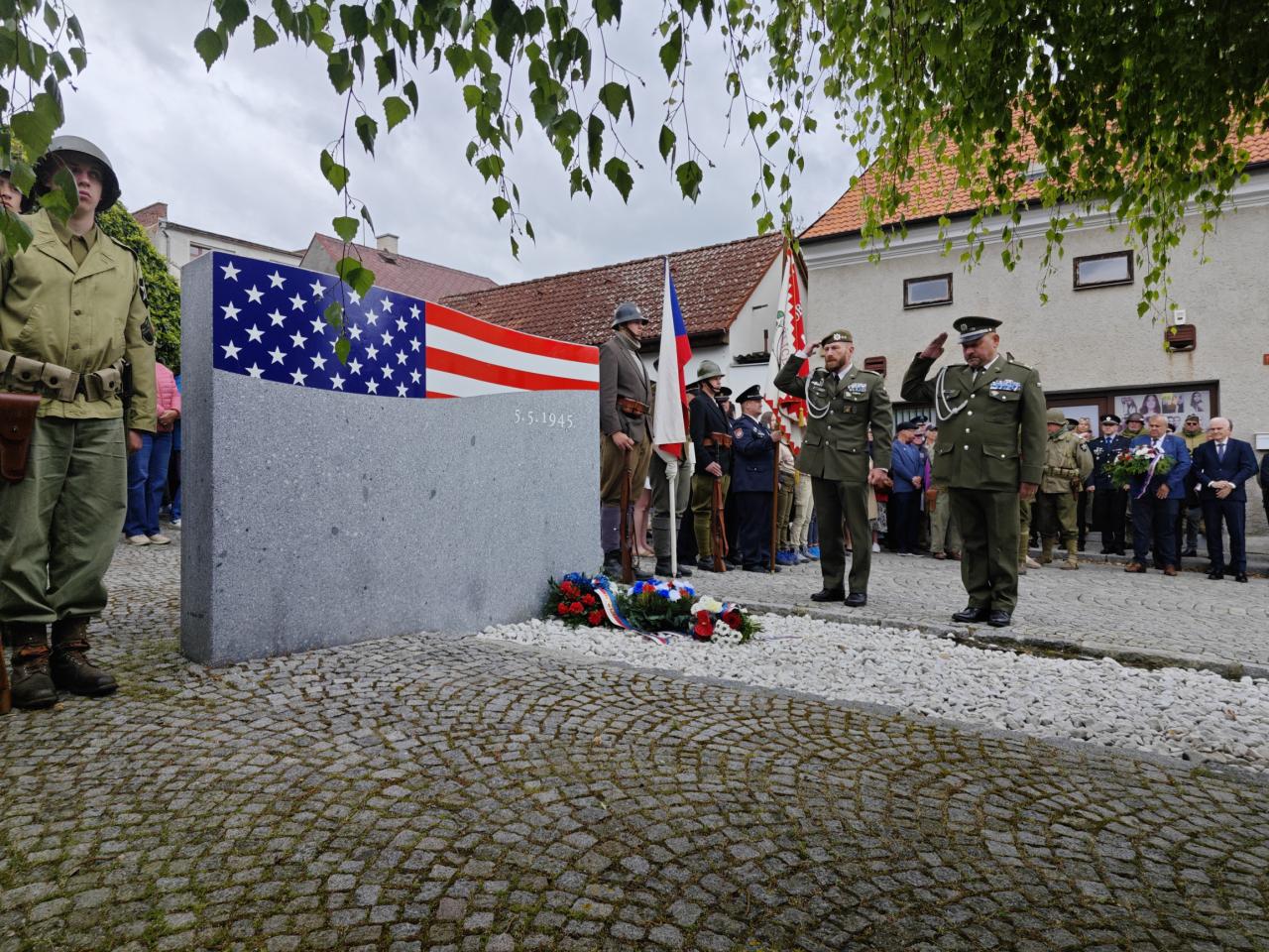U pomníku osvobození pod Chodským hradem proběhl po poledni pietní akt s položením květin a věnců.
