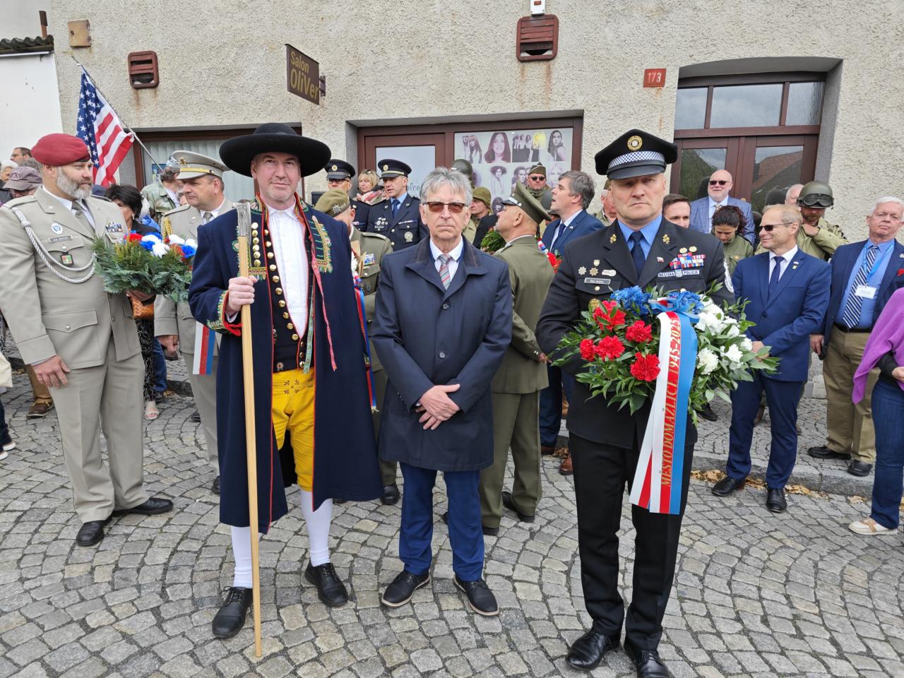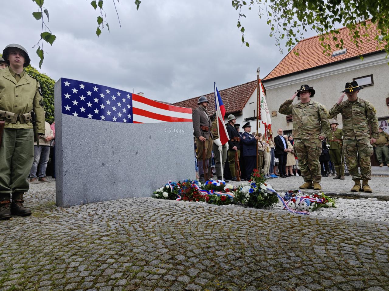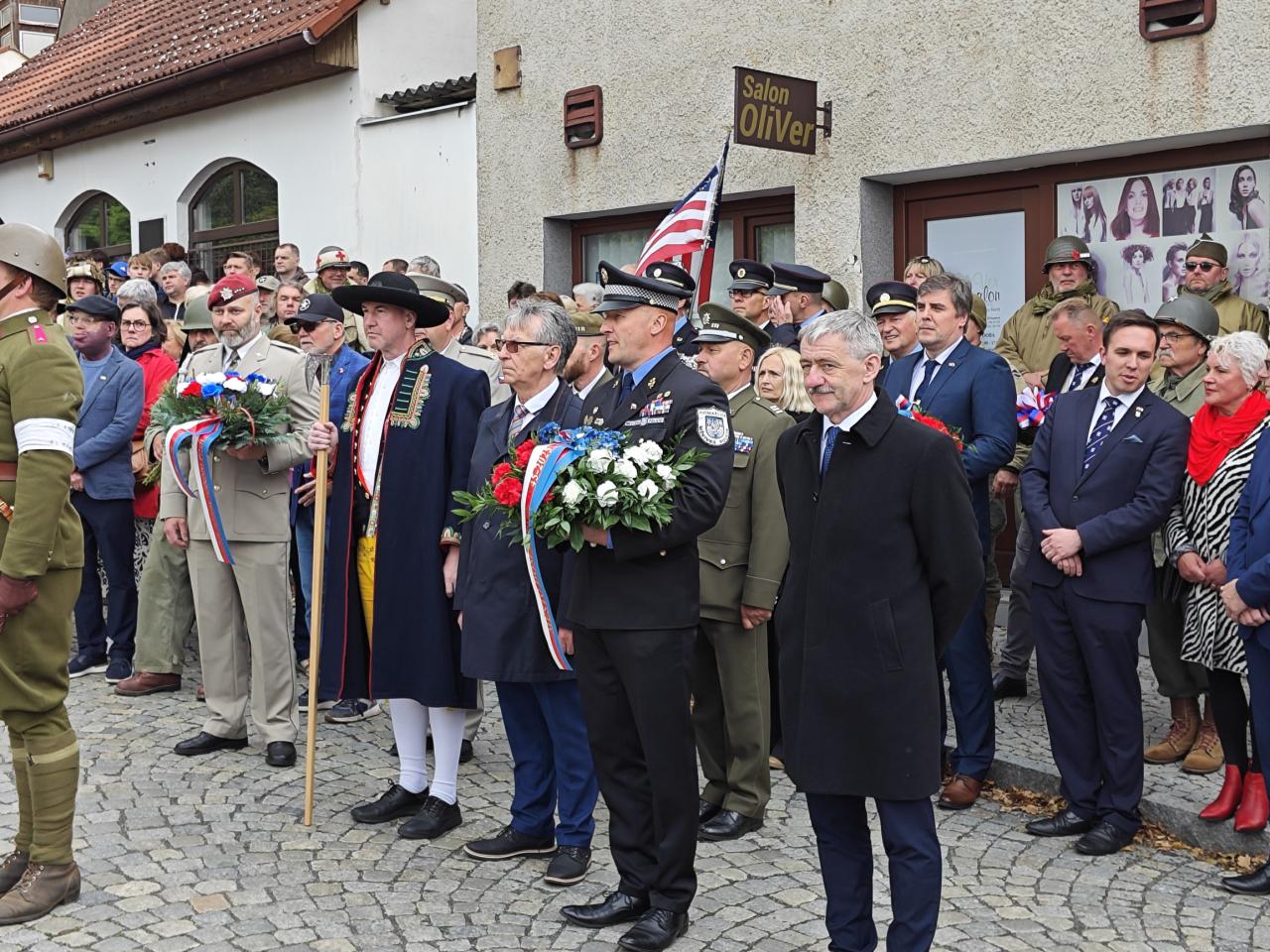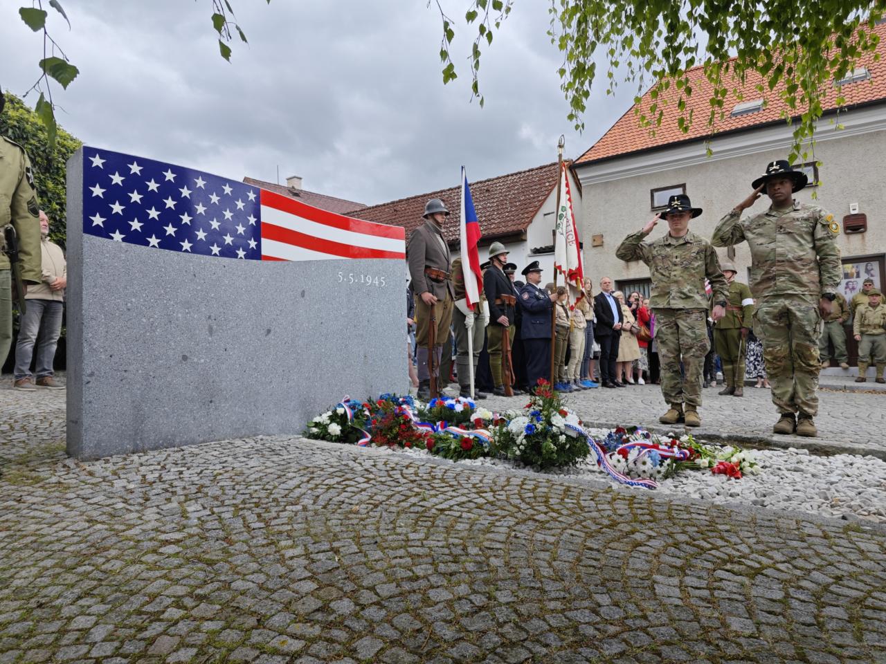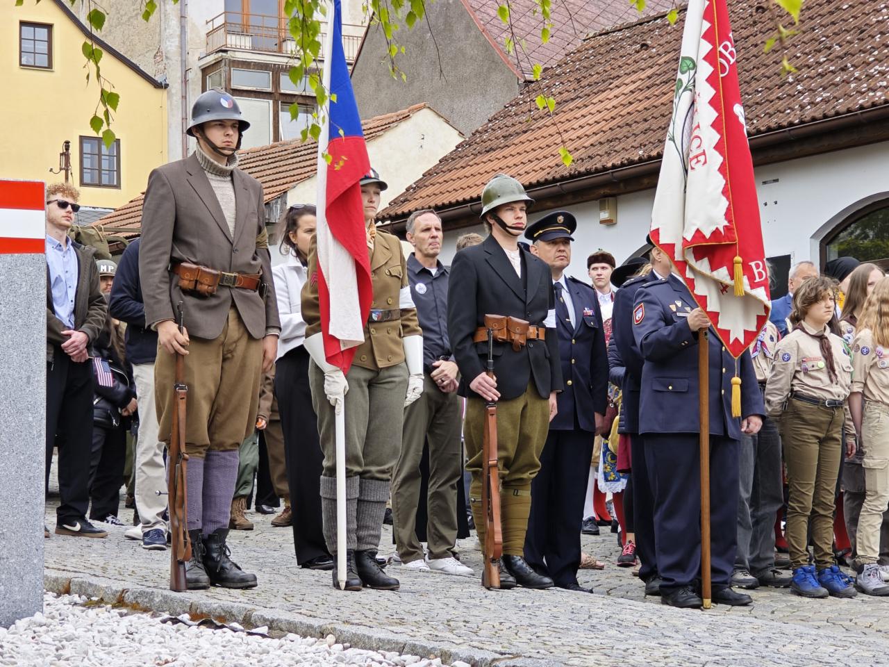 U pomníku osvobození pod Chodským hradem proběhl po poledni pietní akt s položením květin a věnců.