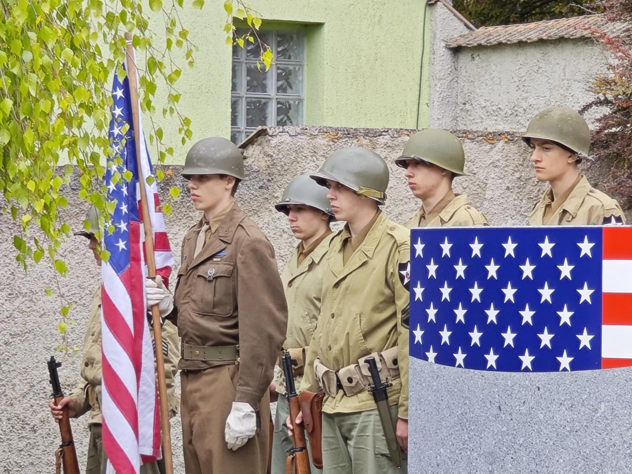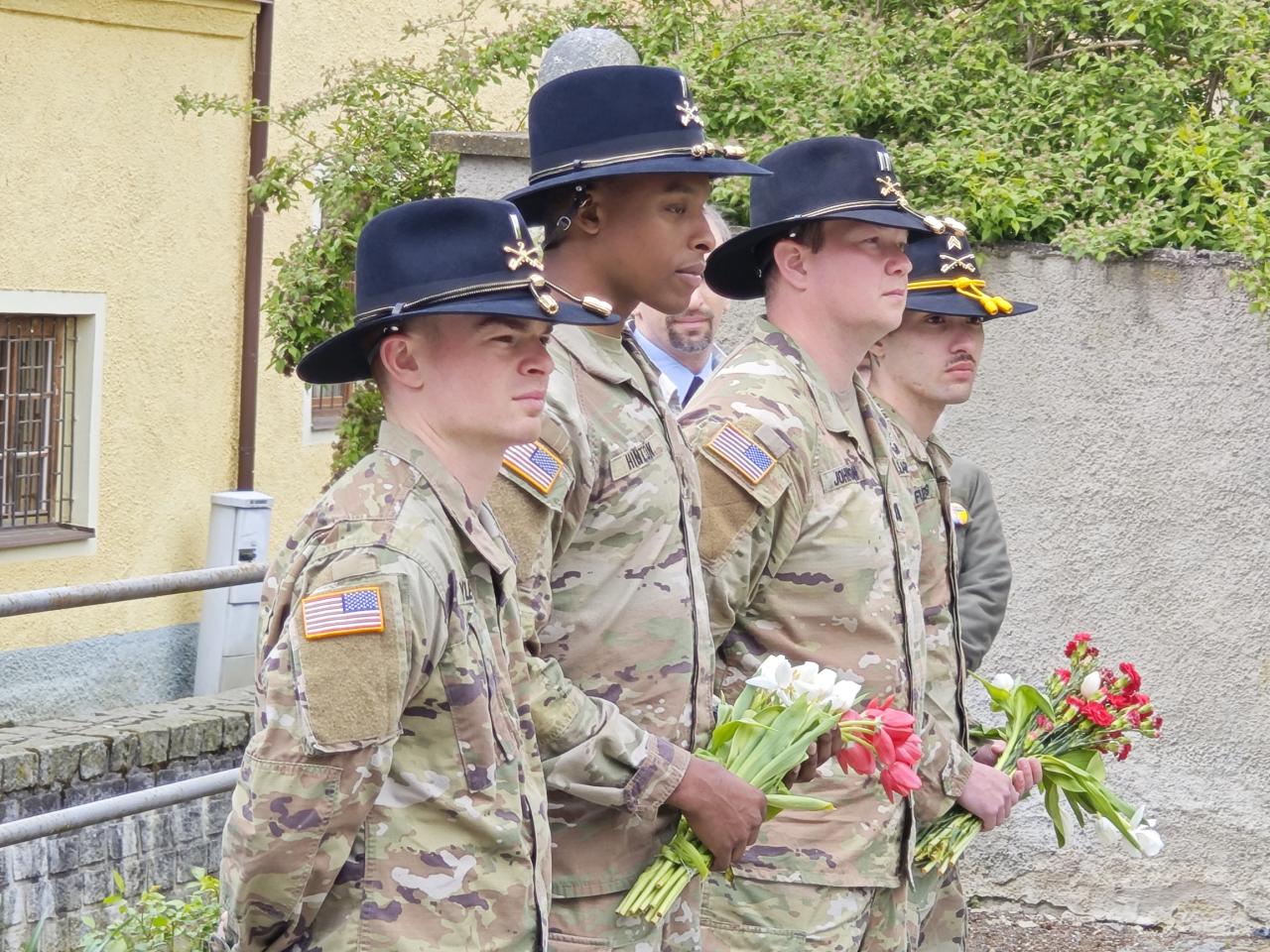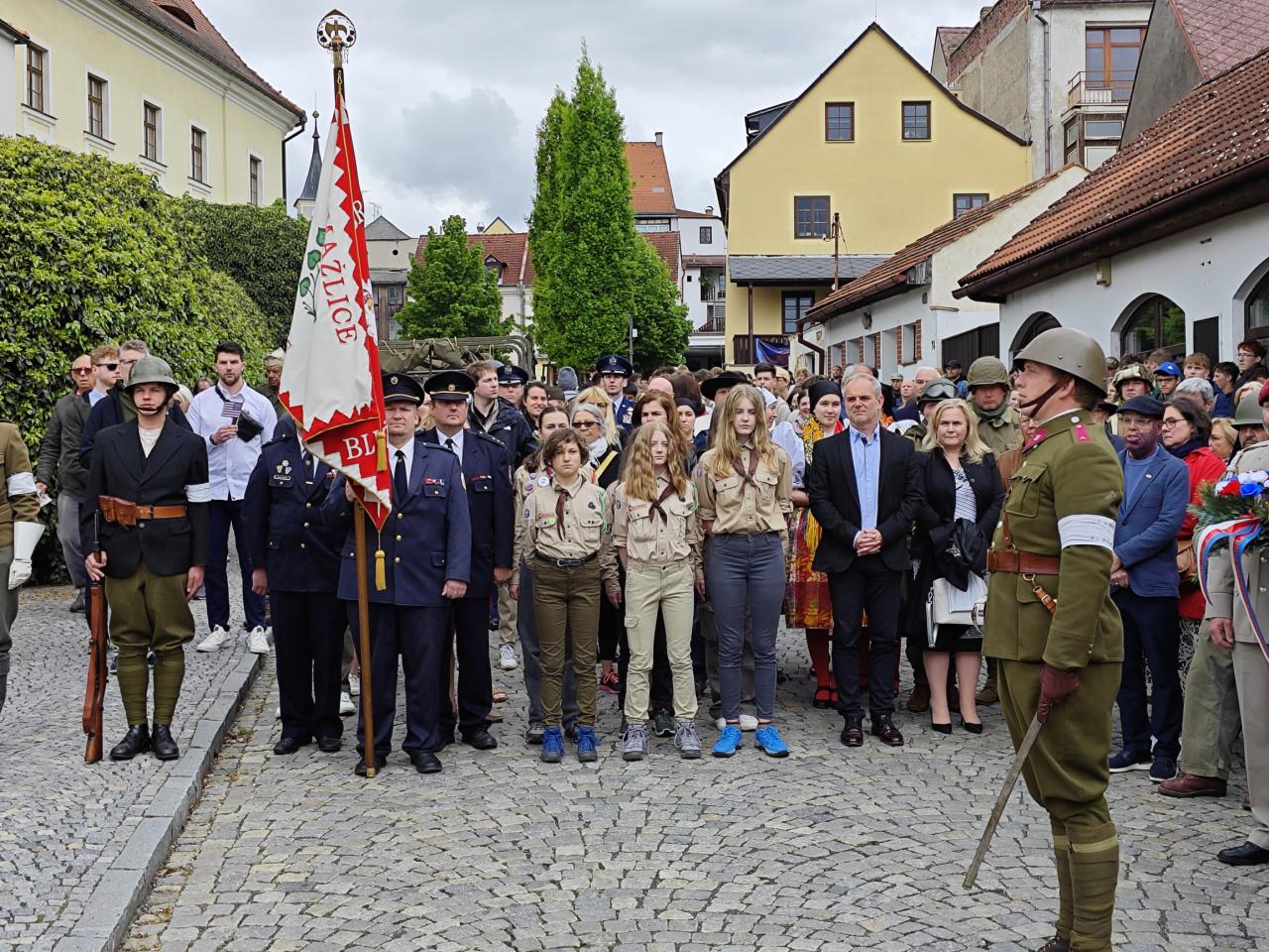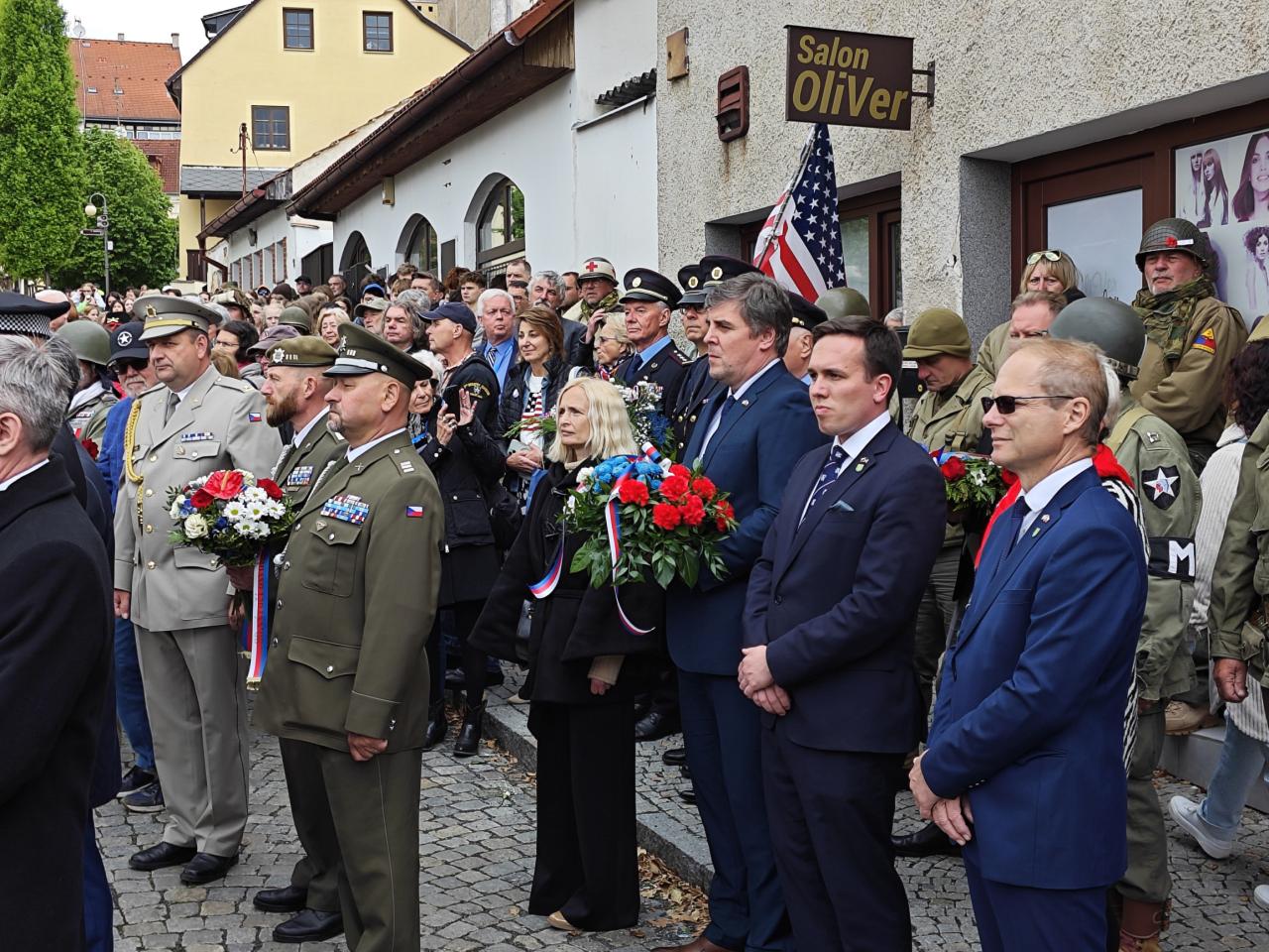 U pomníku osvobození pod Chodským hradem proběhl po poledni pietní akt s položením květin a věnců.
