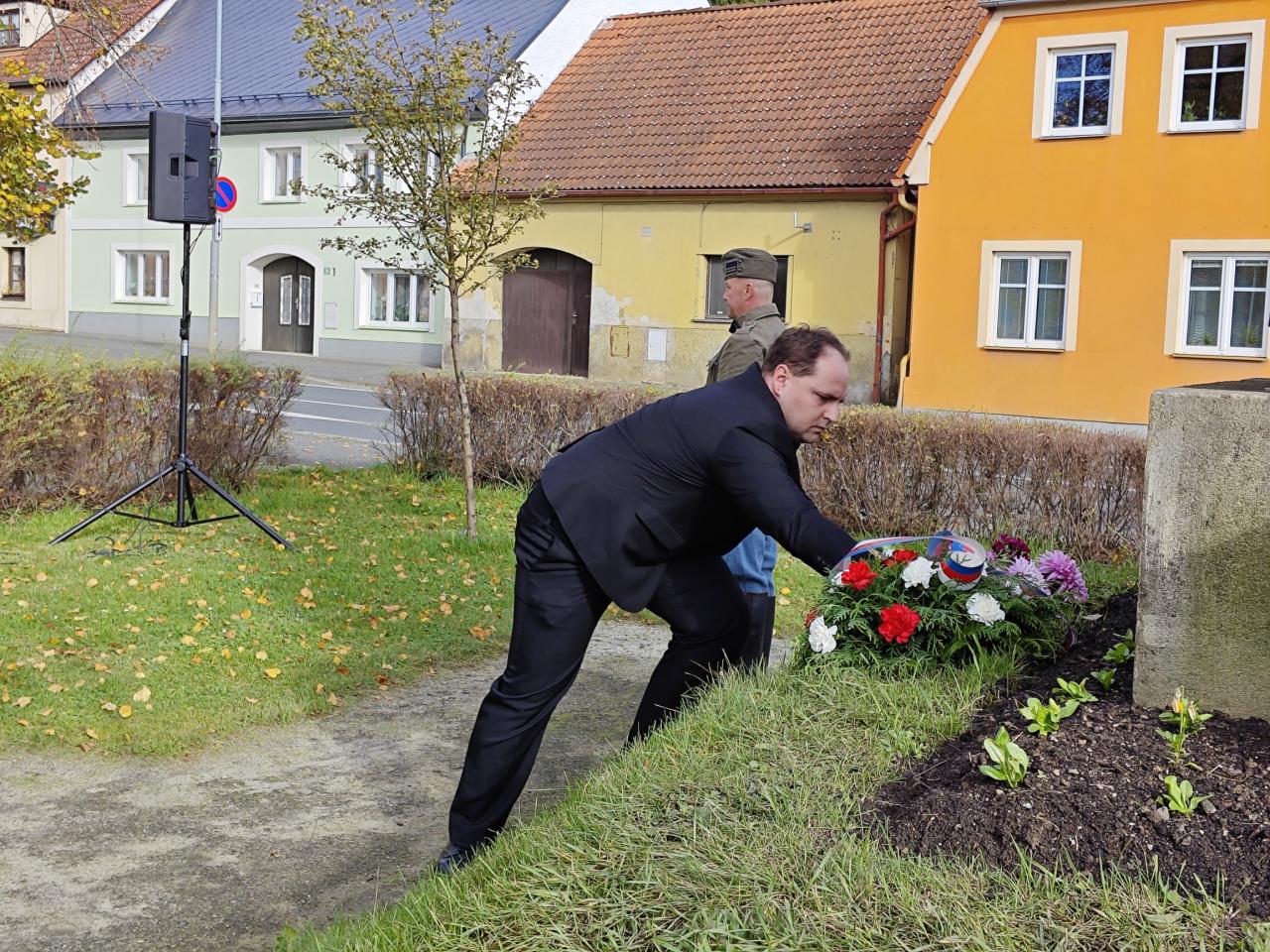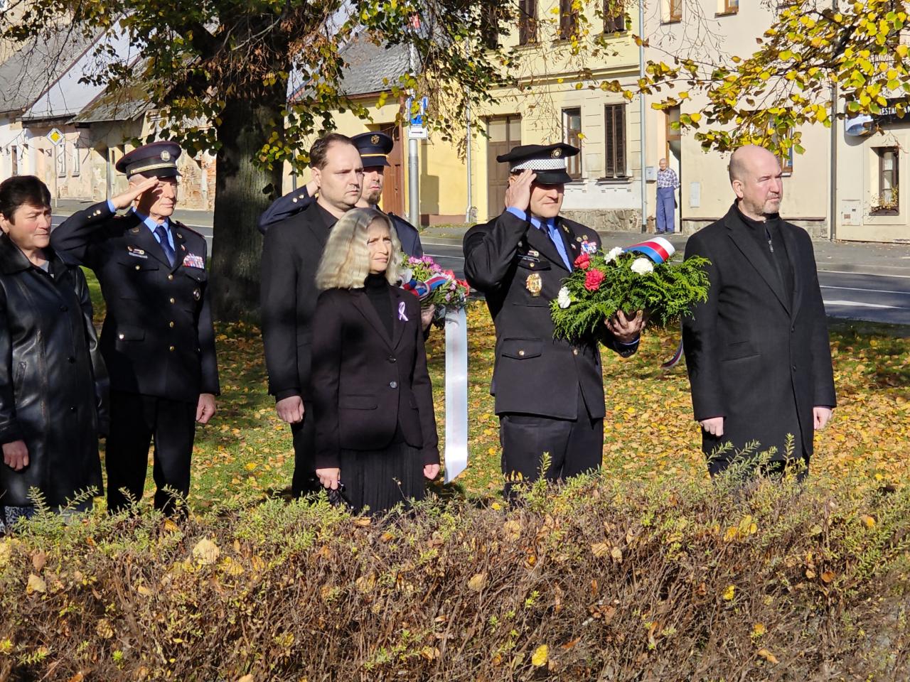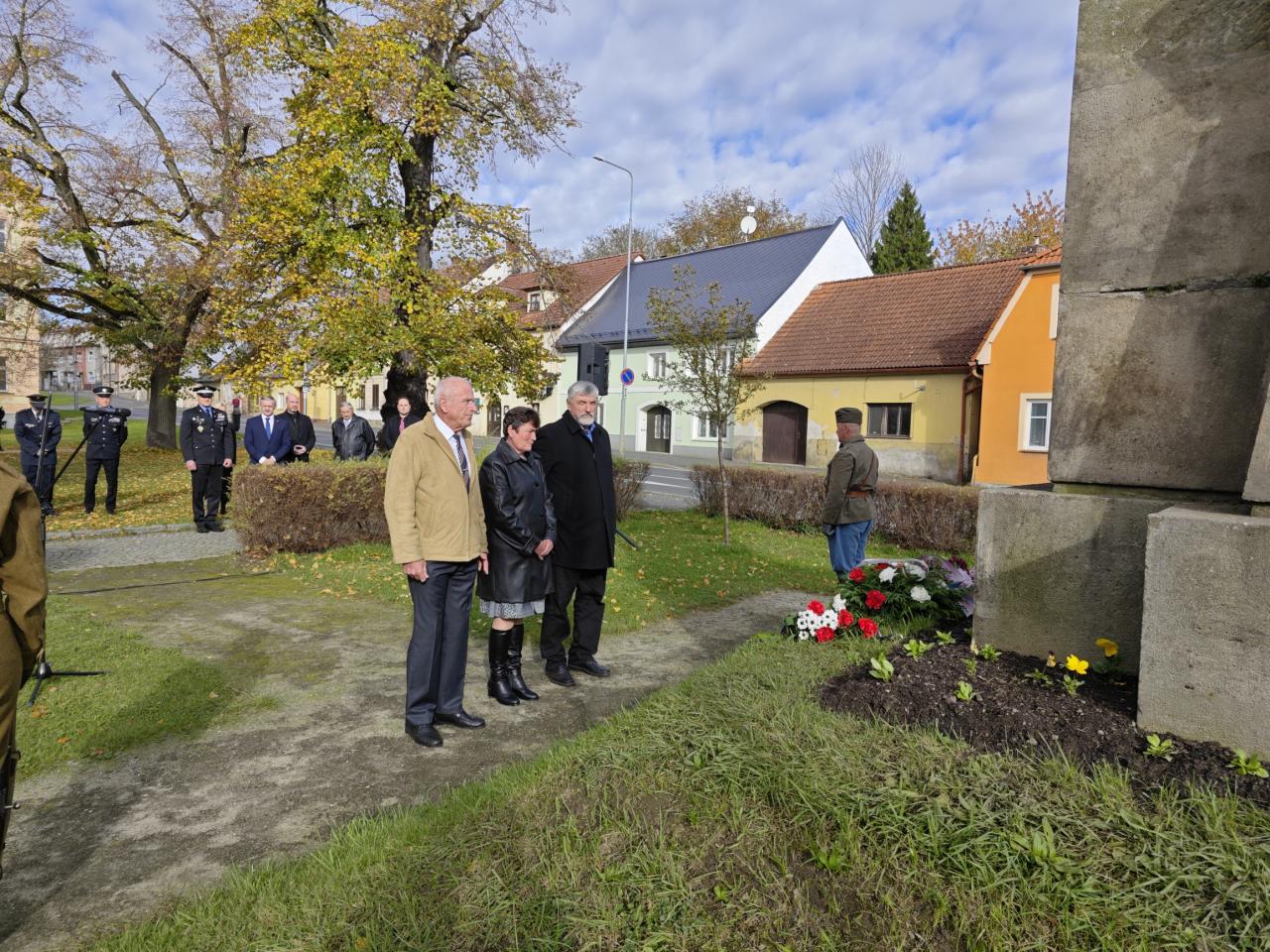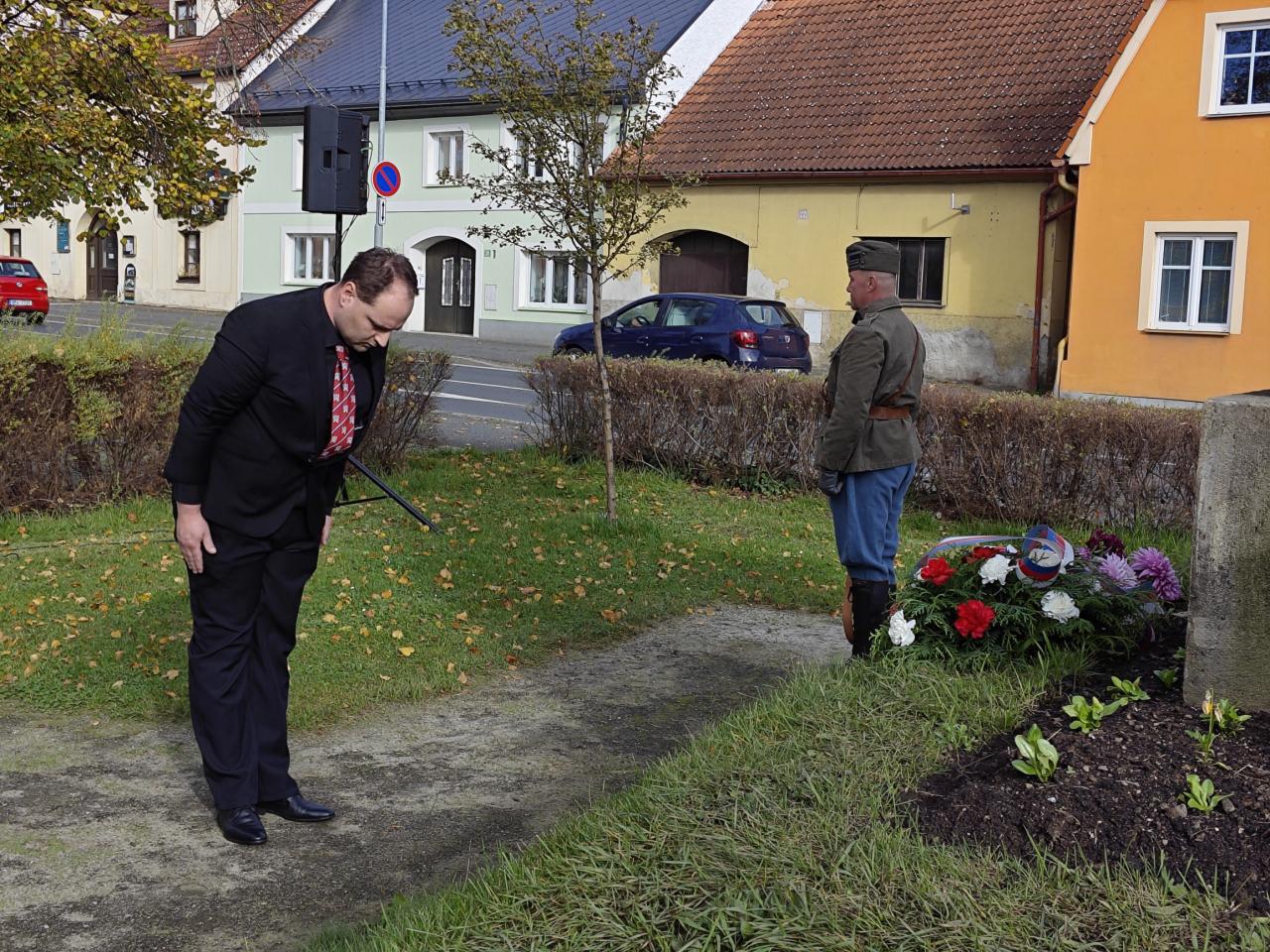 U příležitosti 106. výročí vzniku samostatného československého státu se v pondělí 28. října konaly tři pietní akty U POMNÍKU SVOBODY V DOMAŽLICÍCH, NA CENTRÁLNÍM HŘBITOVĚ V DOMAŽLICÍCH A V HAVLOVICÍCH. Naše snímky jsou z prvního z nich.
