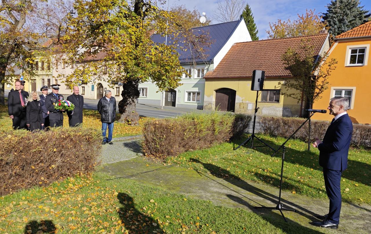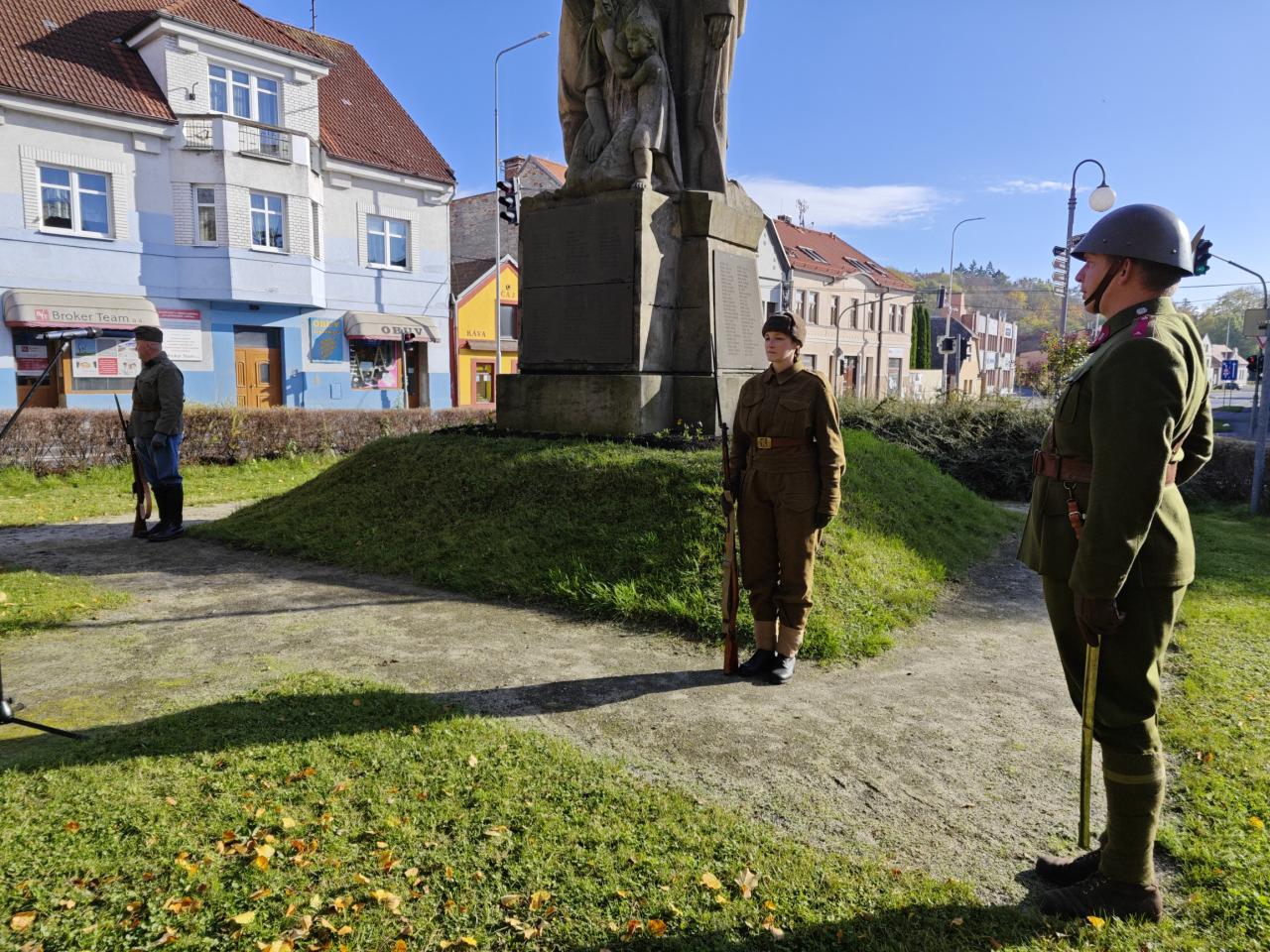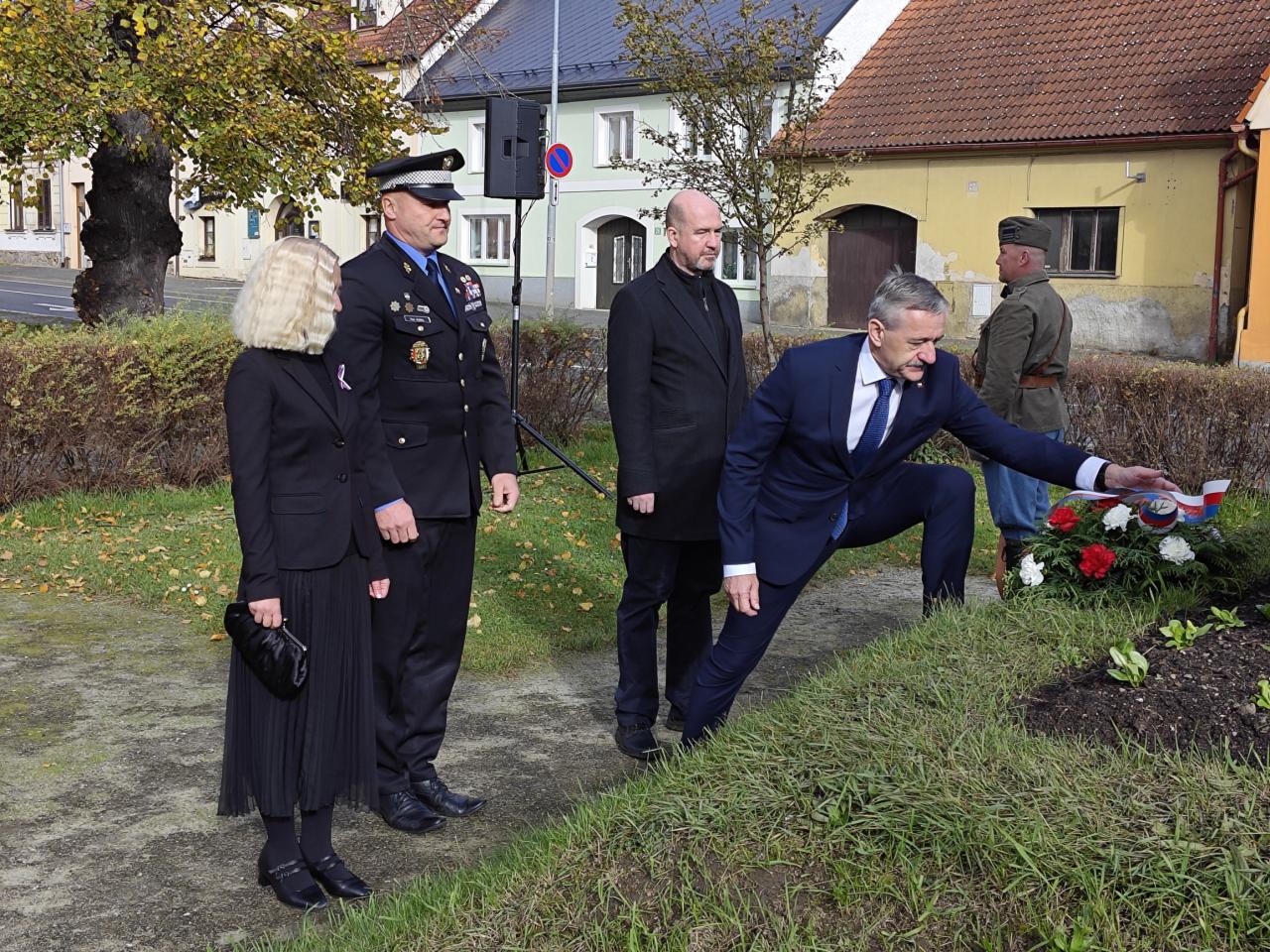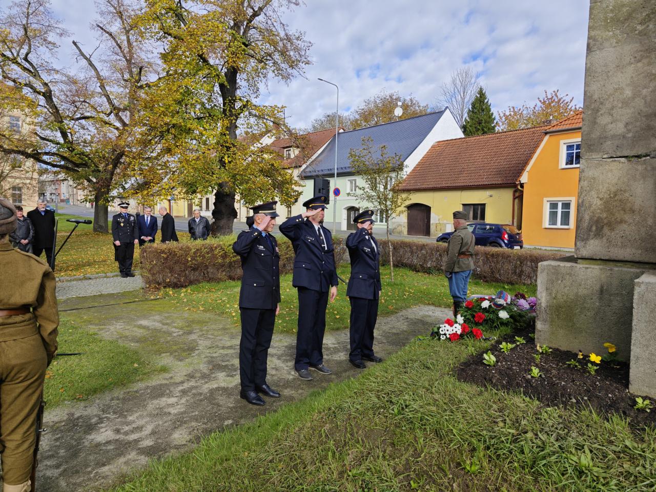 U příležitosti 106. výročí vzniku samostatného československého státu se v pondělí 28. října konaly tři pietní akty U POMNÍKU SVOBODY V DOMAŽLICÍCH, NA CENTRÁLNÍM HŘBITOVĚ V DOMAŽLICÍCH A V HAVLOVICÍCH. Naše snímky jsou z prvního z nich.
