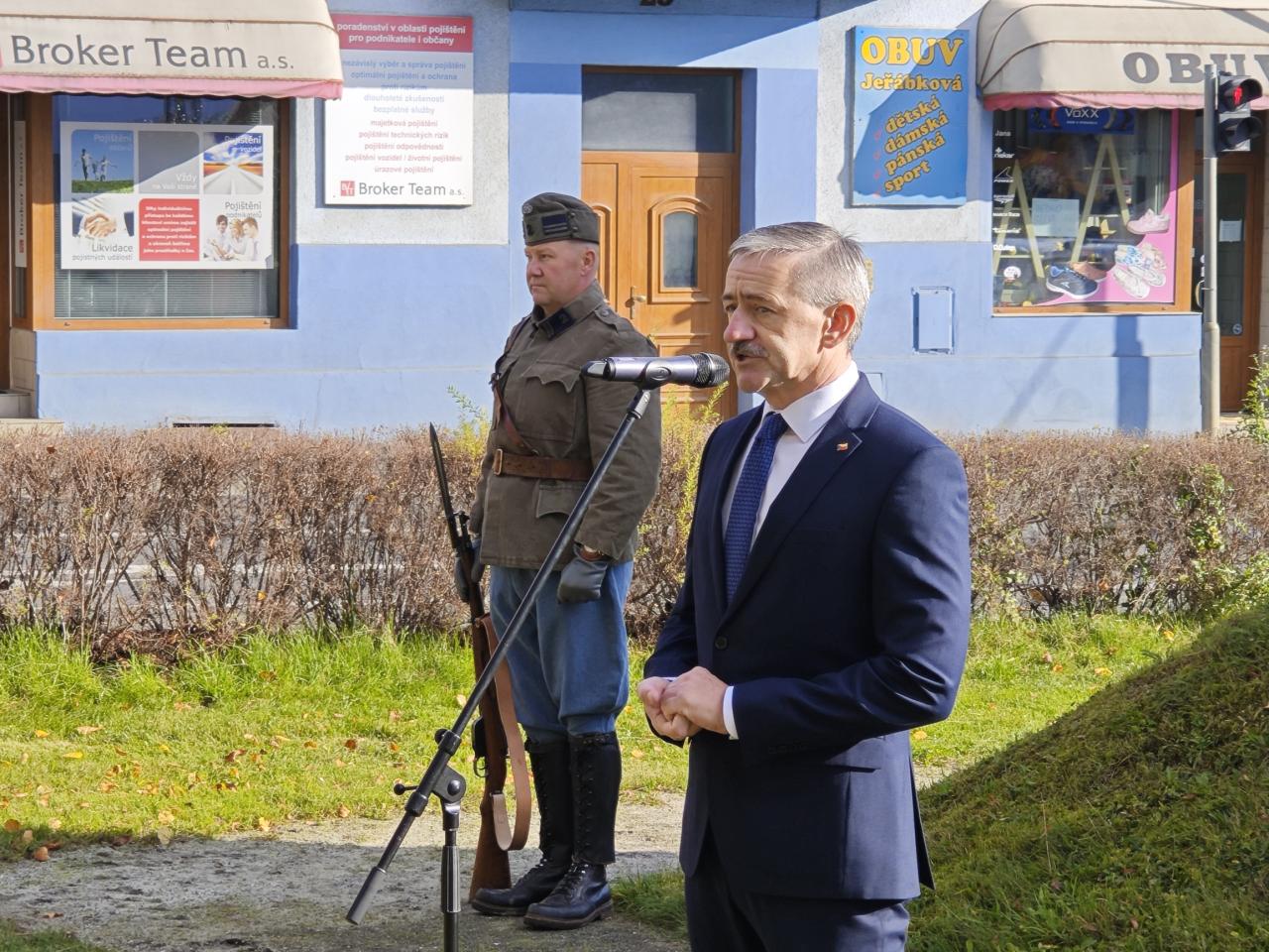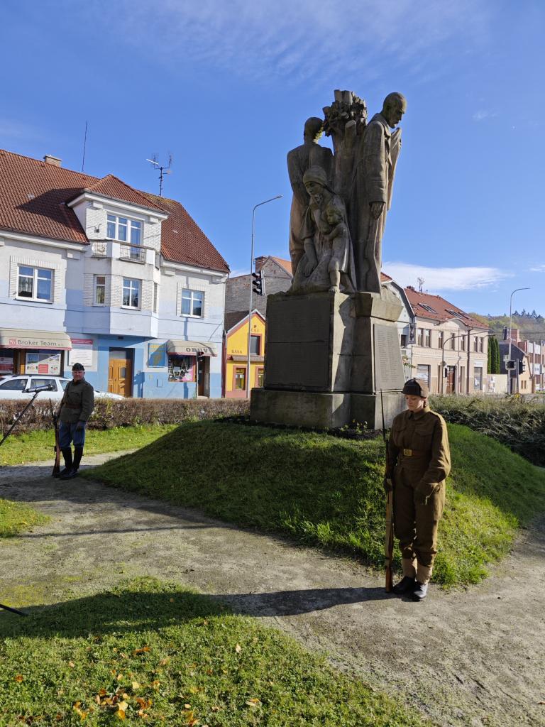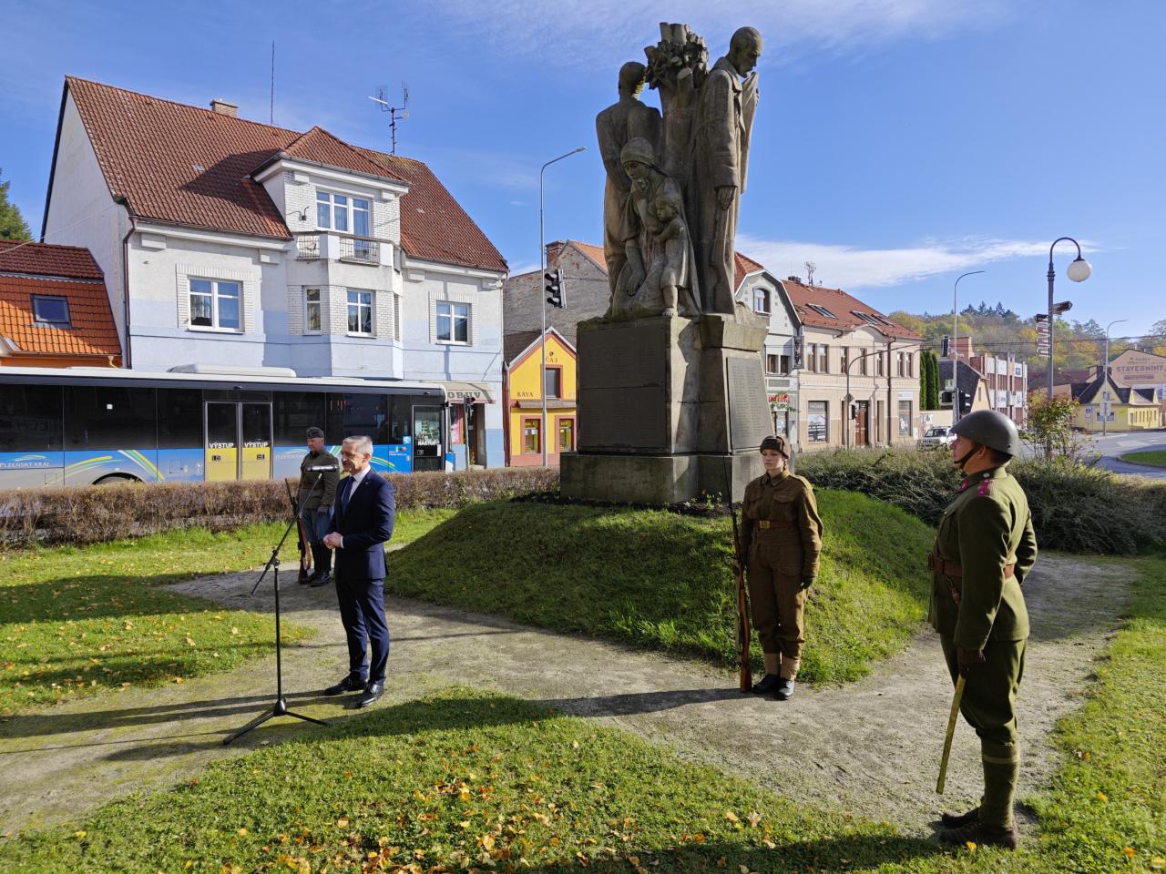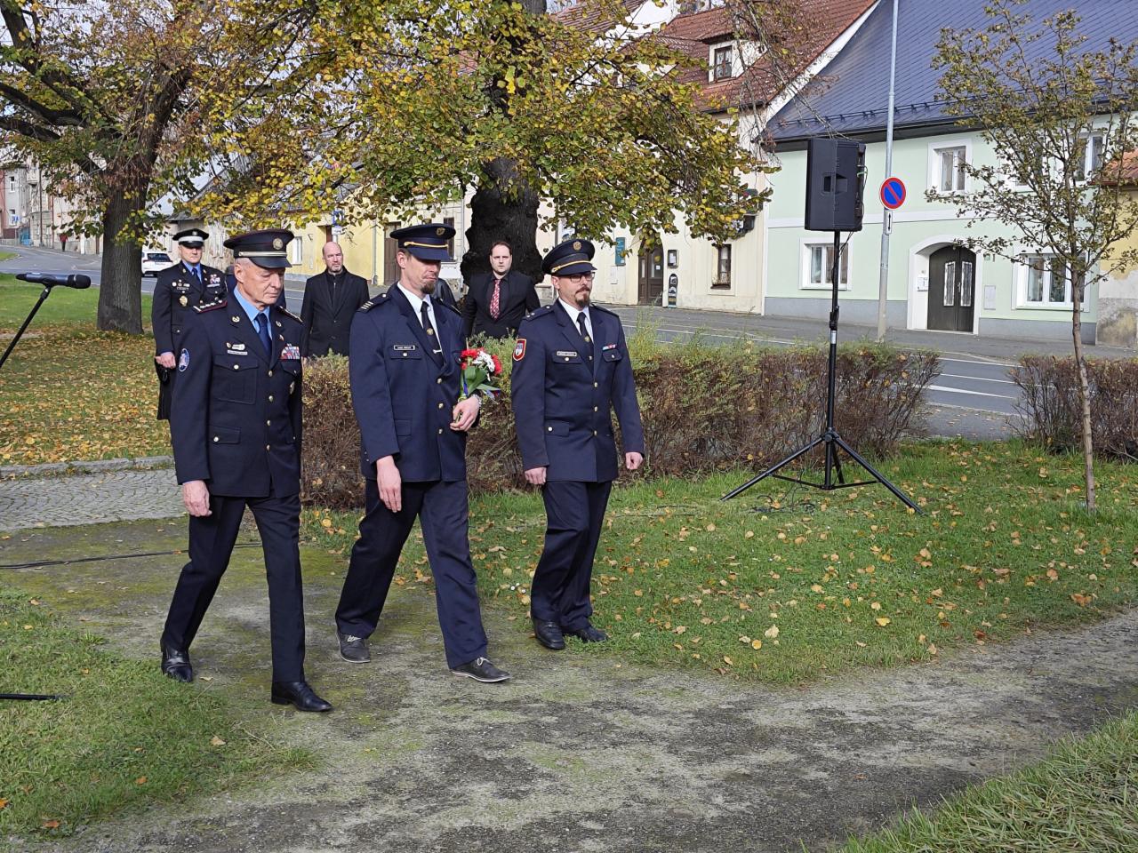 U příležitosti 106. výročí vzniku samostatného československého státu se v pondělí 28. října konaly tři pietní akty U POMNÍKU SVOBODY V DOMAŽLICÍCH, NA CENTRÁLNÍM HŘBITOVĚ V DOMAŽLICÍCH A V HAVLOVICÍCH. Naše snímky jsou z prvního z nich.