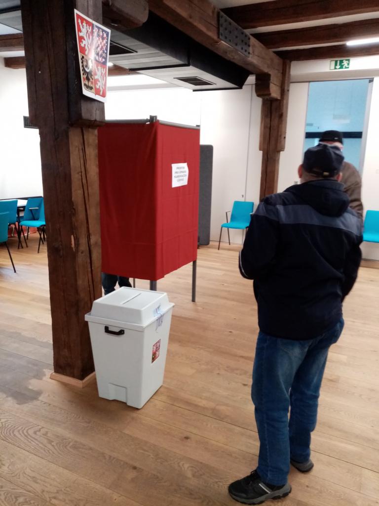 Snímky z volební místnosti v KC Pivovar. Autor: Eliška Urbanová