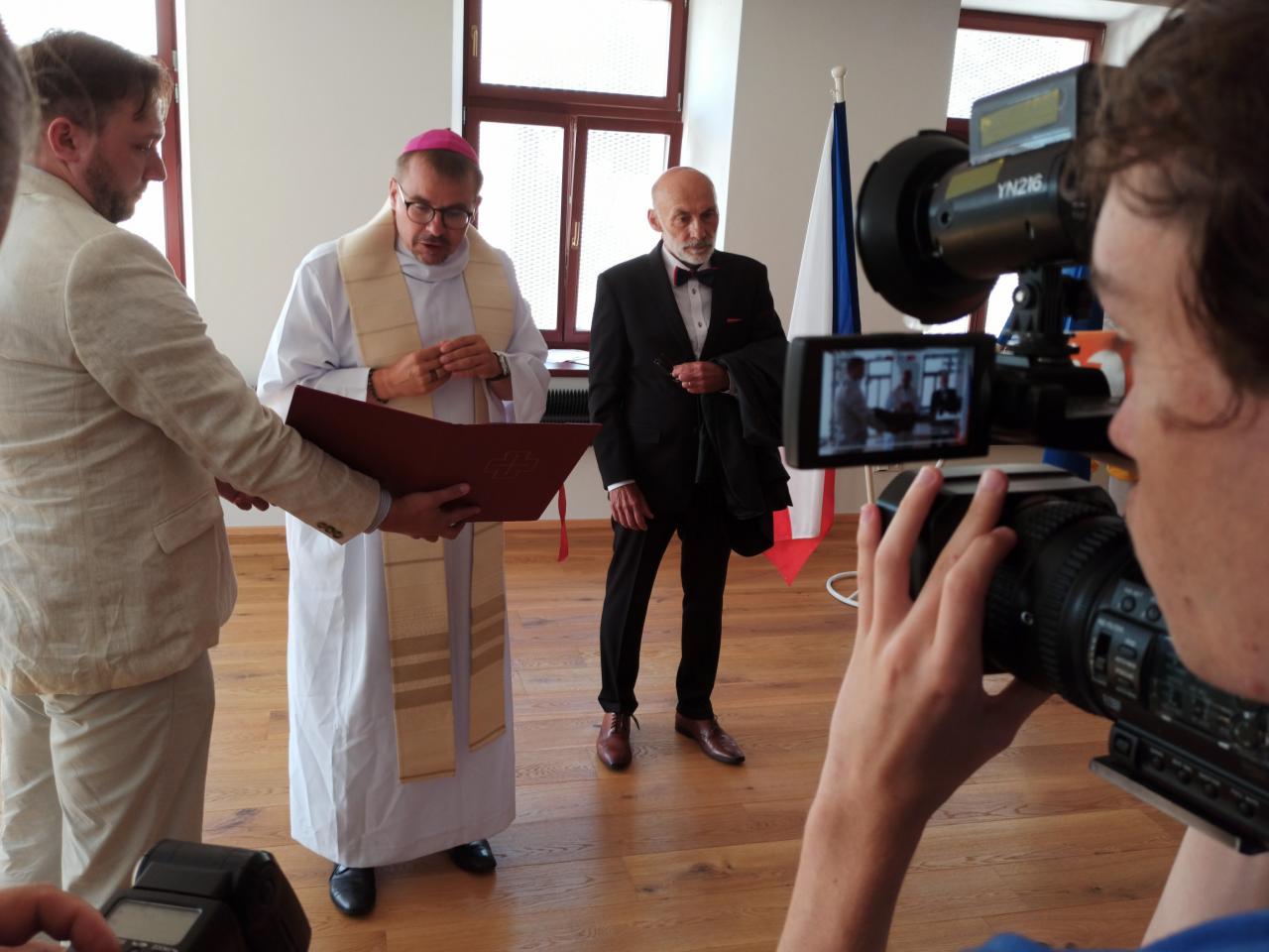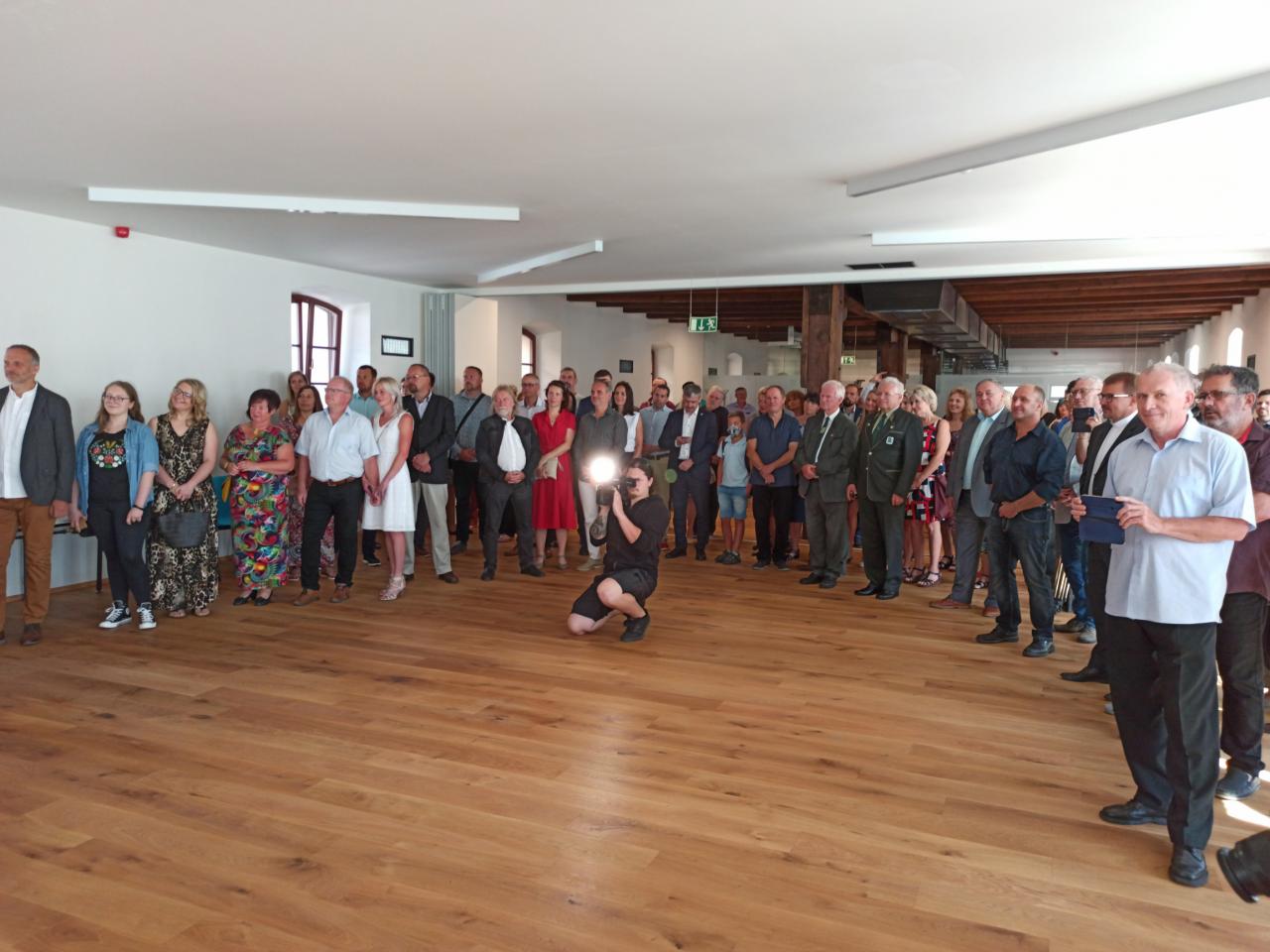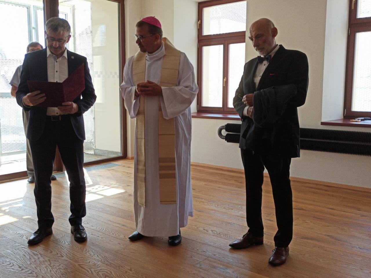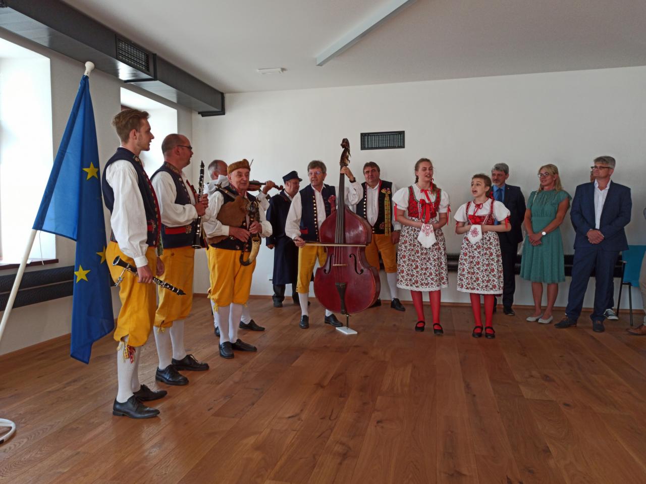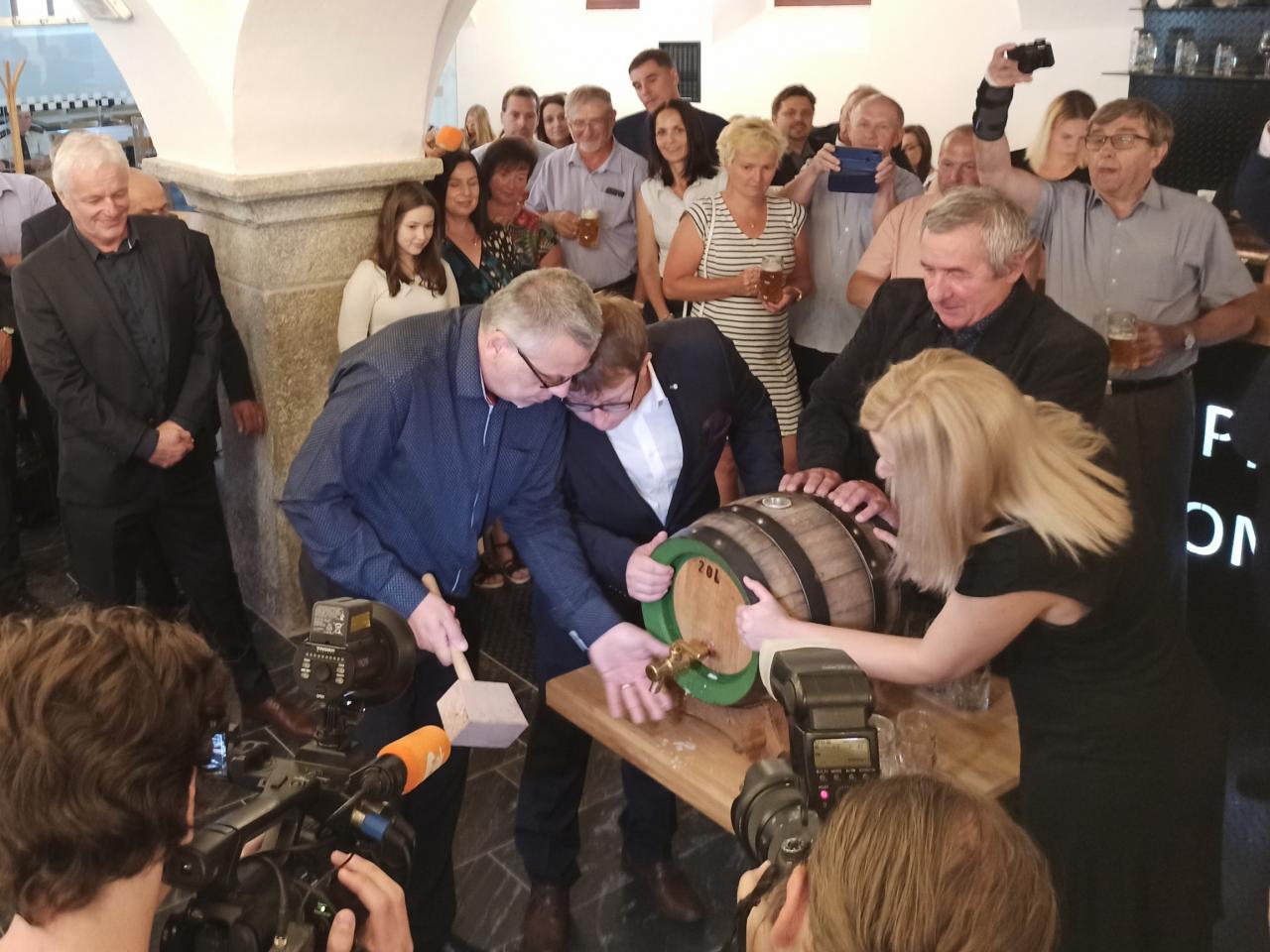 Multifunkční Kulturní centrum Pivovar Domažlice začíná sloužit veřejnosti. Zrekonstruovanému areálu historického domažlického pivovaru ve čtvrtek 23. července 2020 při slavnostním otevření požehnal biskup plzeňský Tomáš Holub. Slavnost doprovodila Konrádyho dudácká muzika. Foto: (job)