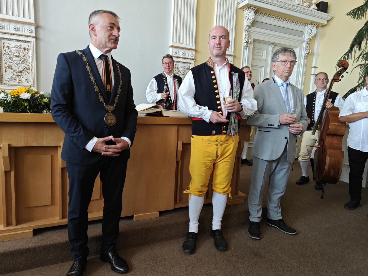 V sobotu 9. srpna po 14. hodině přivítal starosta Domažlic Stanislav Antoš pozvané hosty letošních Chodských slavností-Vavřinecké pouti v obřadní síni radnice.