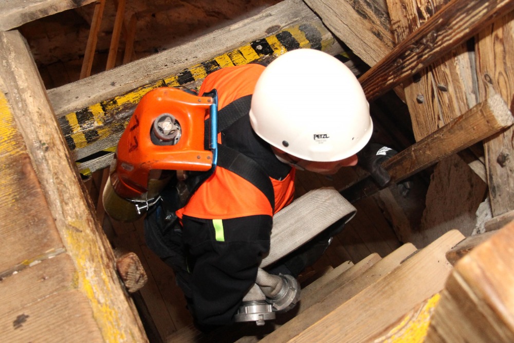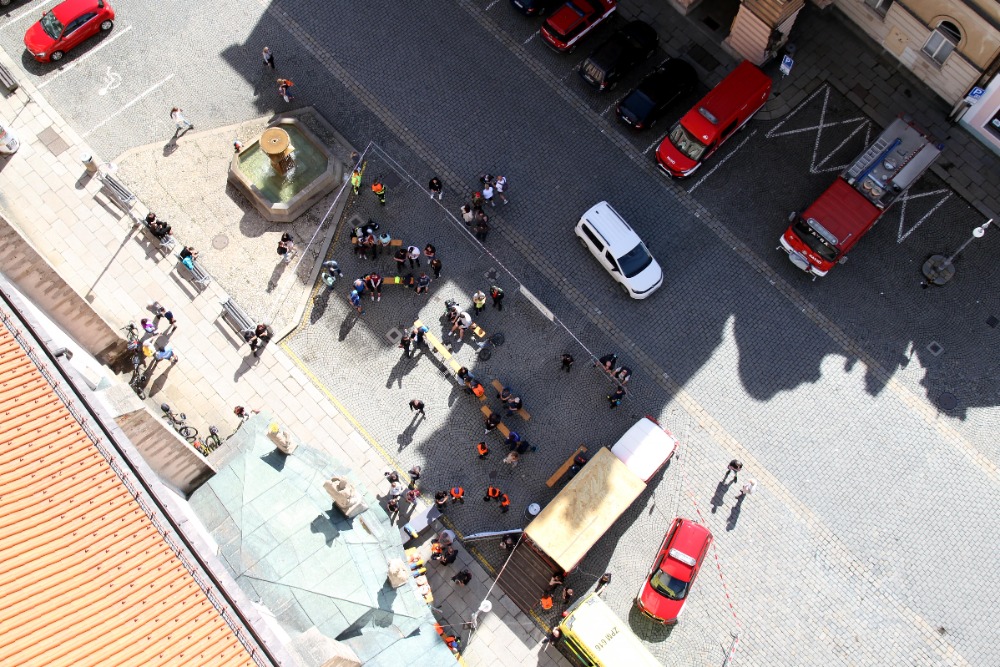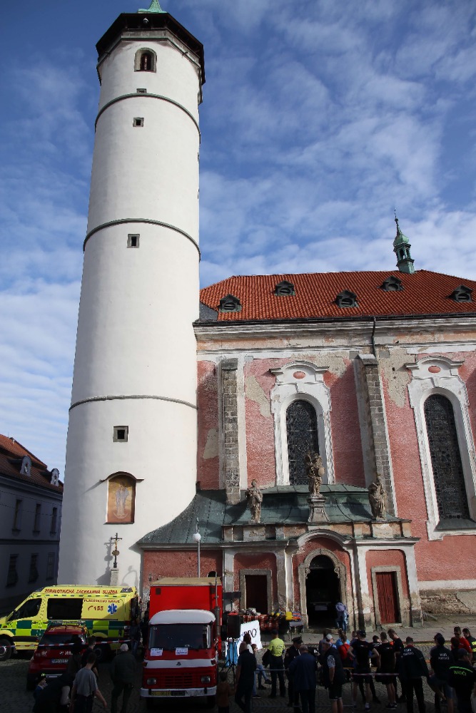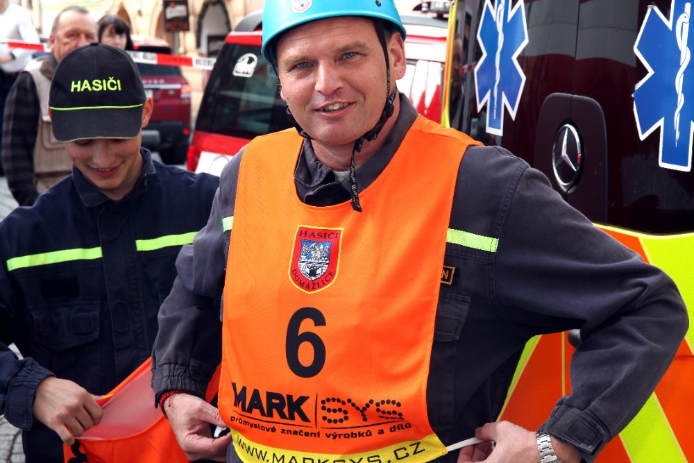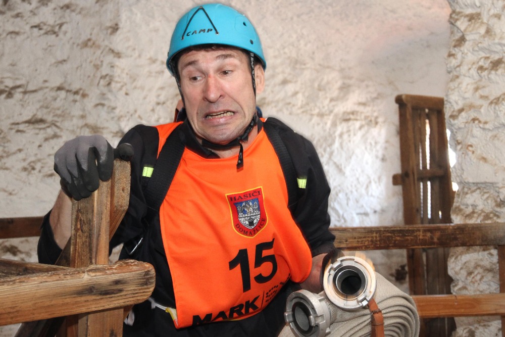 Celkem 34 hasičů z 22 Sborů dobrovolných hasičů z Plzeňského kraje a Německa si letos trouflo zdolat domažlickou věž. 196 schodů do ochozu domažlické dominanty vysoké 56 metrů závodníci zdolávali „v plné polní“.