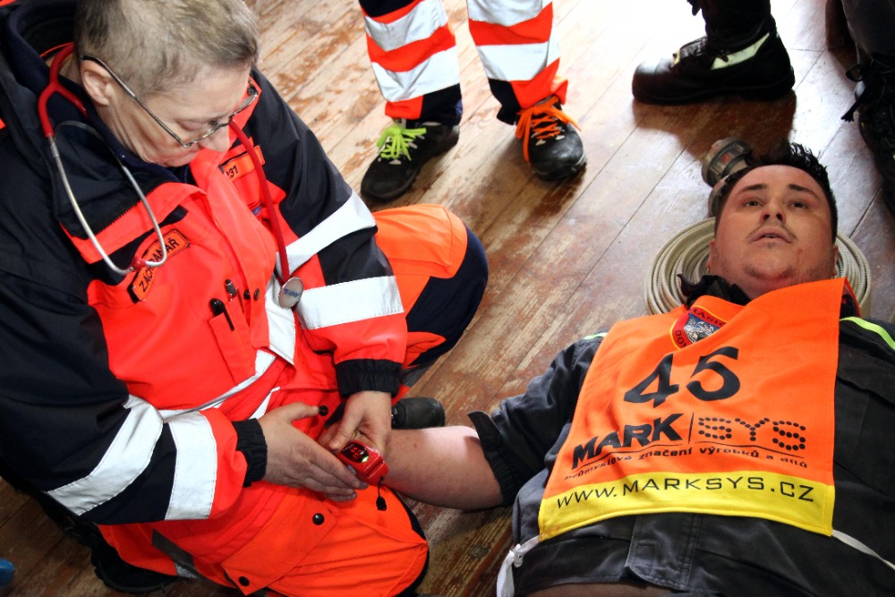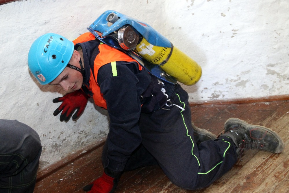 Závodník musel mít předepsanou ústroj: pracovní stejnokroj, rukavice, přilbu a na cestu dostal od pořadatelů dýchací přístroj Satrurn S7 a hadici C52 v kotouči.