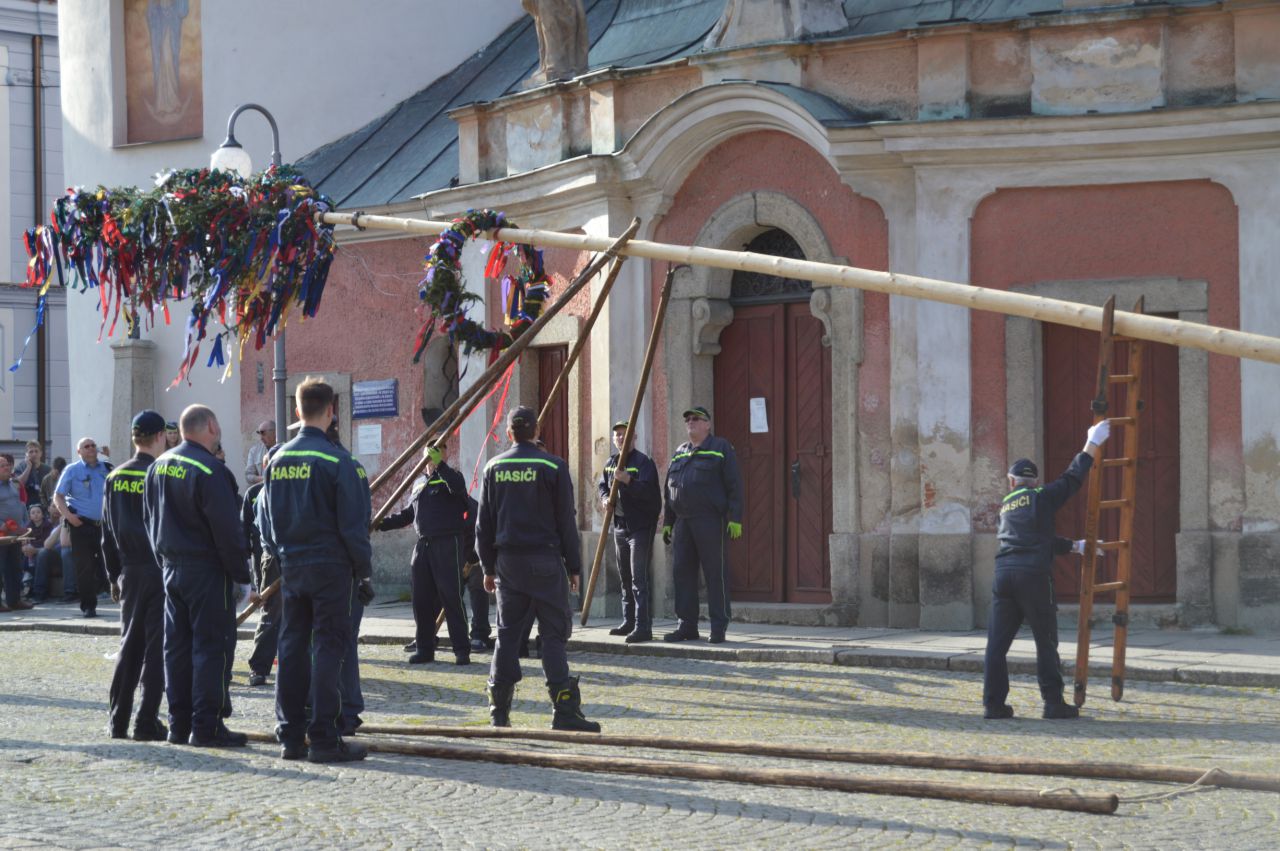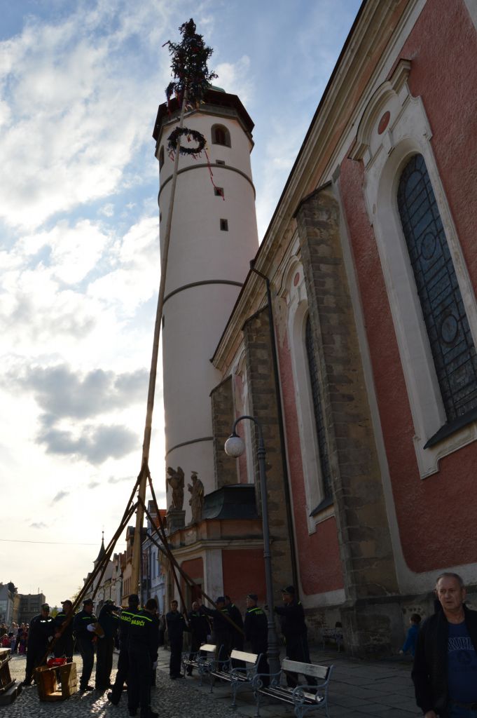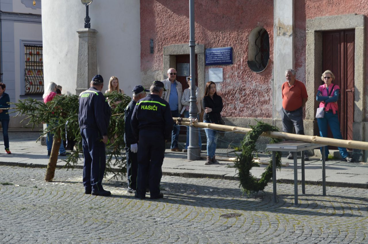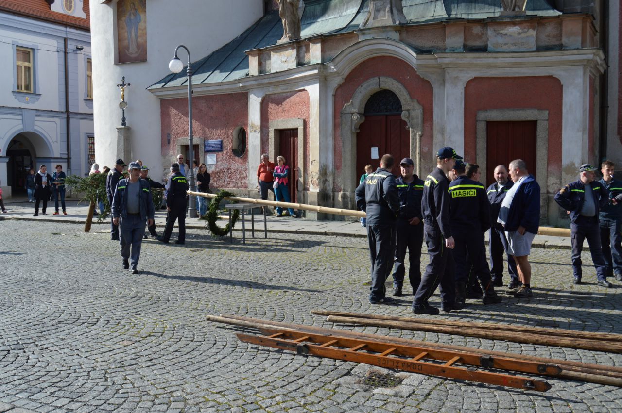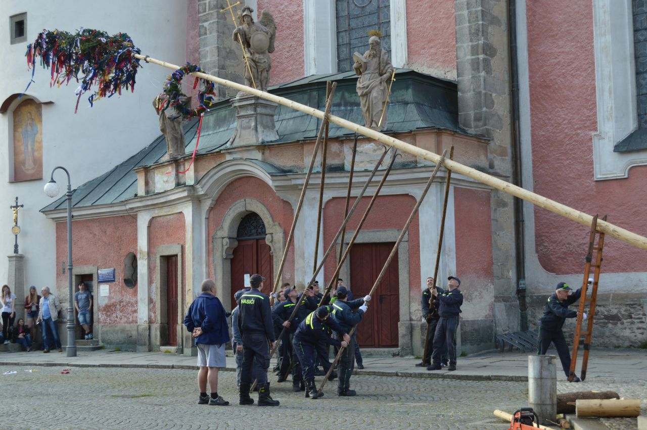 Májka je vysoká 21 metrů. O její postavení se opět postarali dobrovolní hasiči z Domažlic.