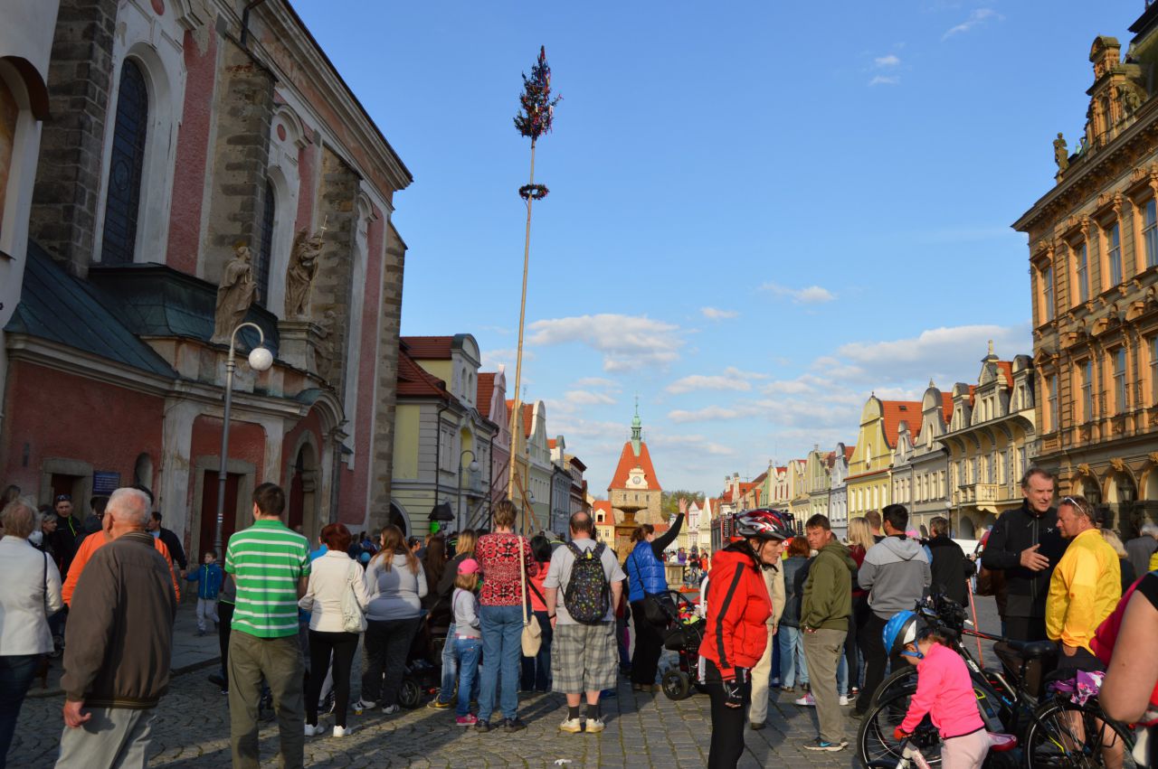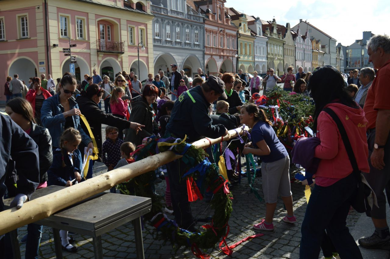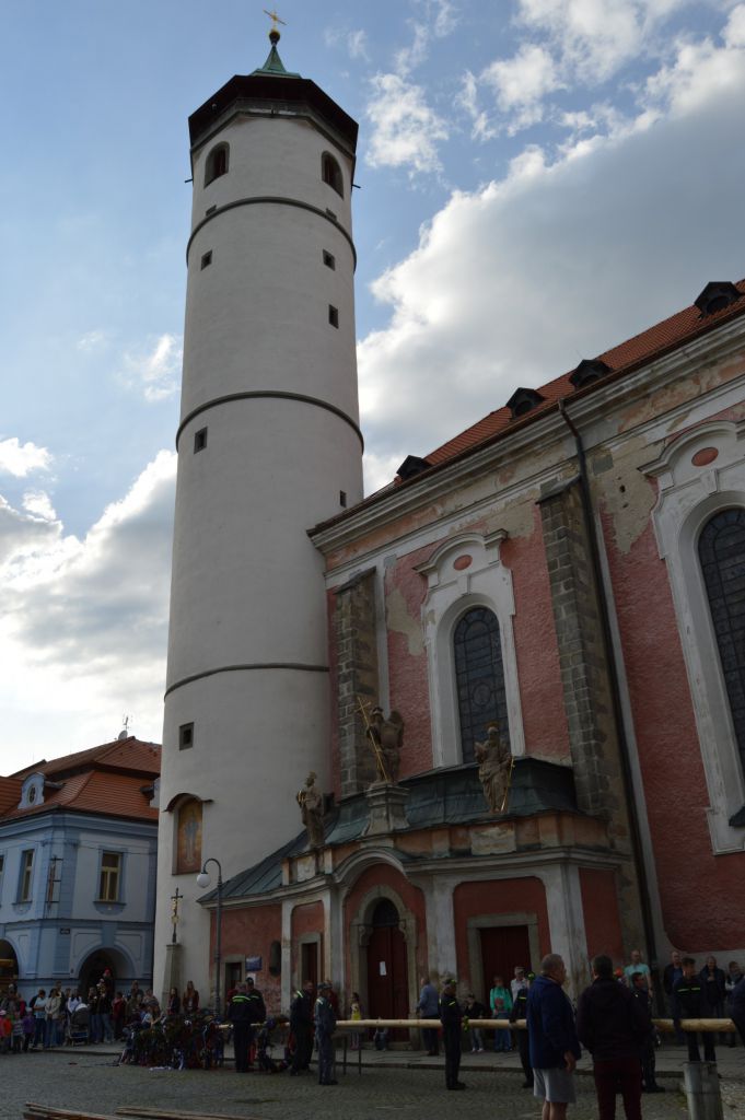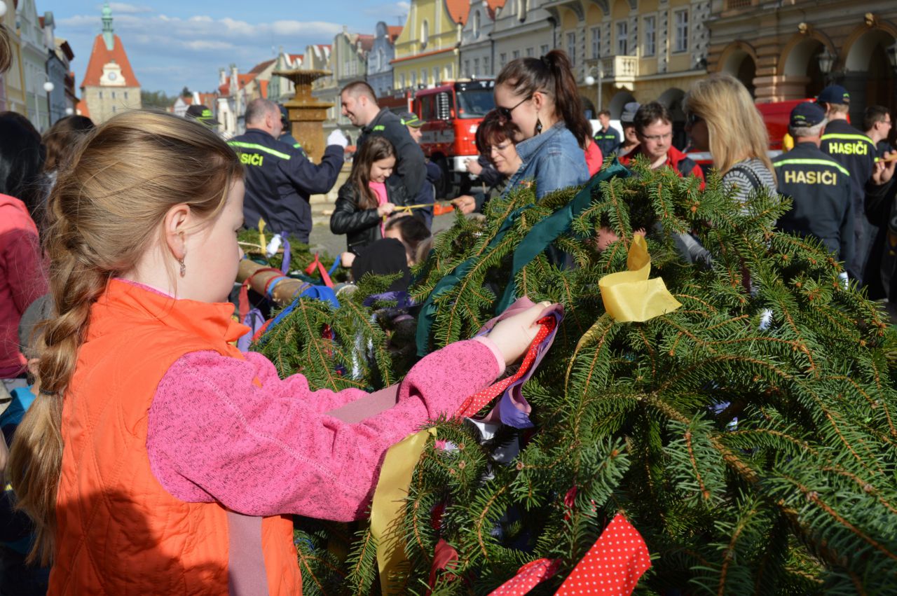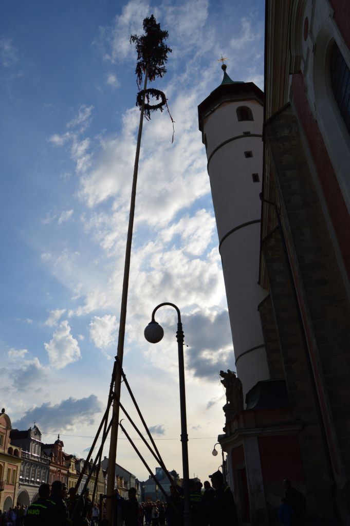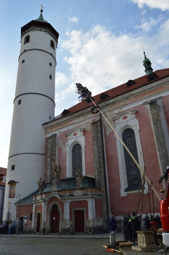 Májka je vysoká 21 metrů. O její postavení se opět postarali dobrovolní hasiči z Domažlic.