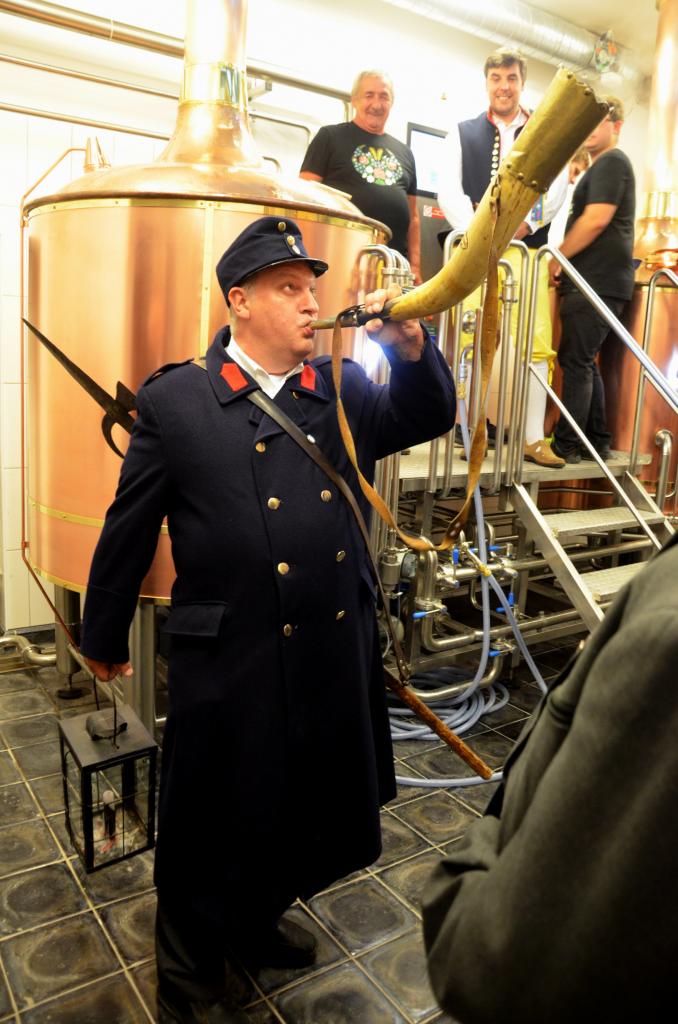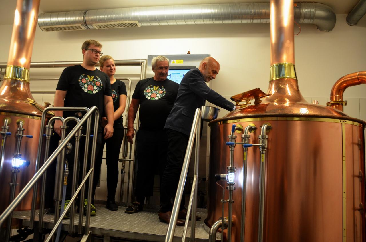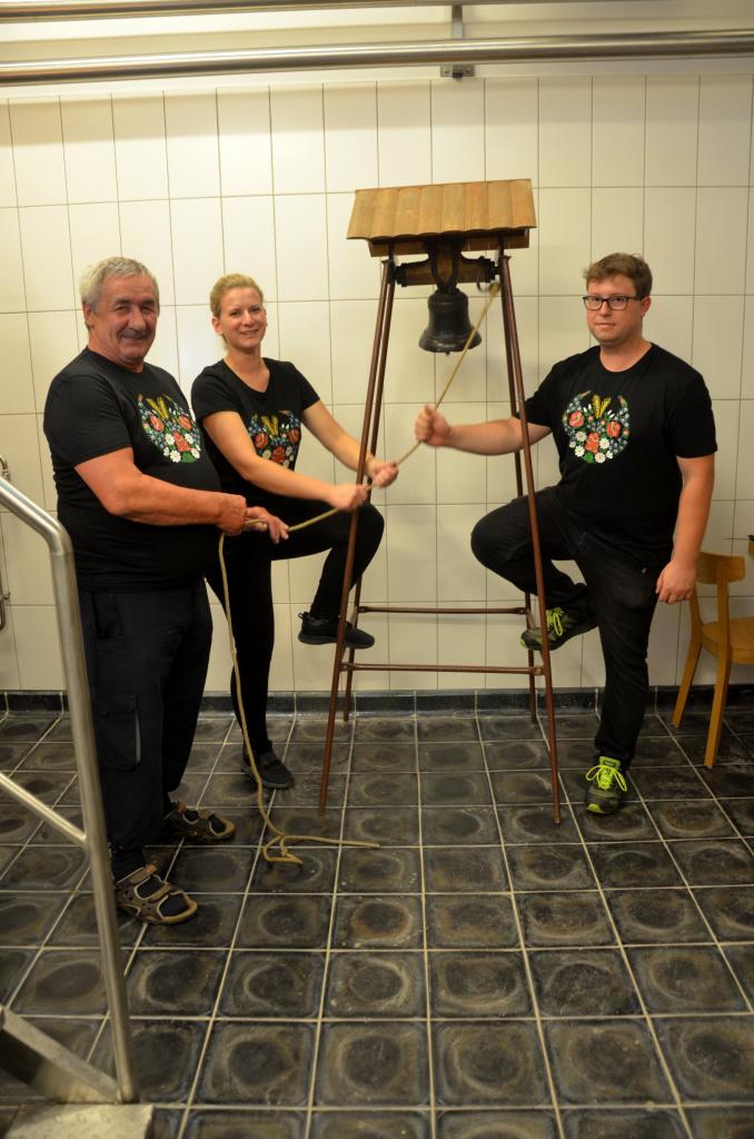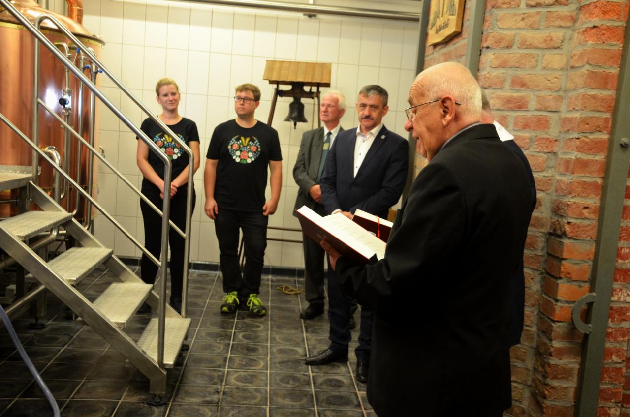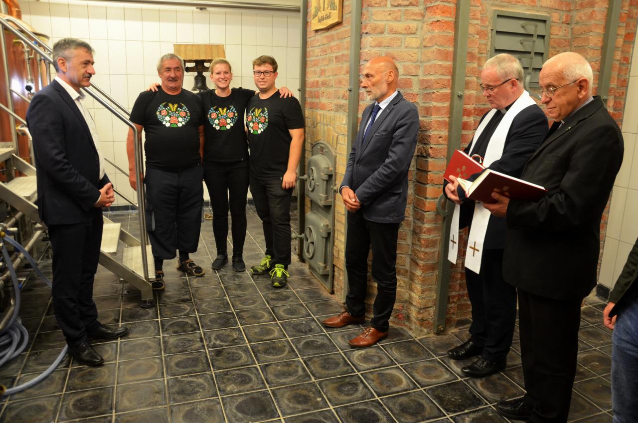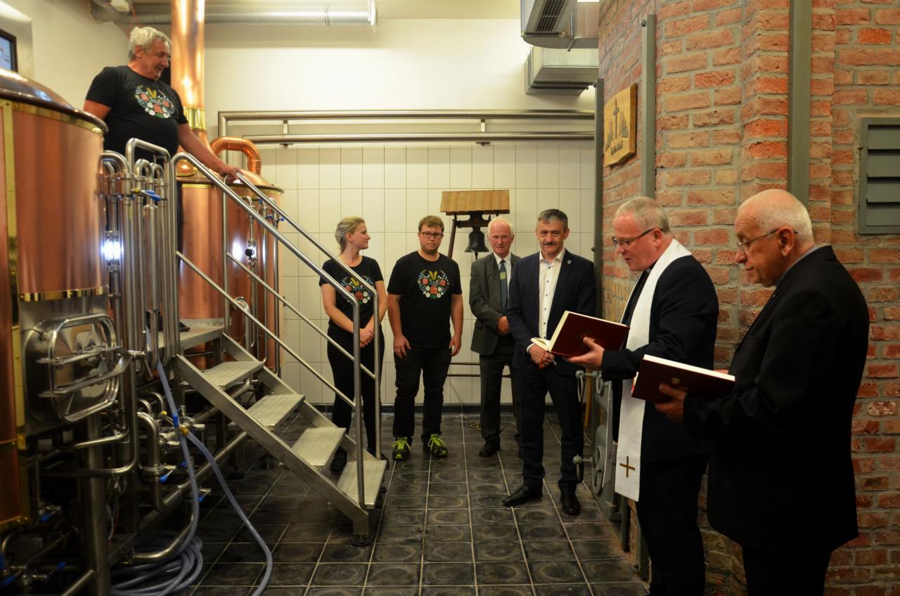 Ve středu 15. července 2020 se v městském pivovaru konala komorní slavnost, kdy do kotle, ve kterém se vaří první várka domažlického piva, přítomní vhodili hrst chmele. Tři sládkové pak zazvonili na zvon Advent pro zdar svého počínání a následně první várce piva požehnali Msgre Emil Soukup a domažlický vikář Miroslaw Gierga. Foto: Jana Jankovcová