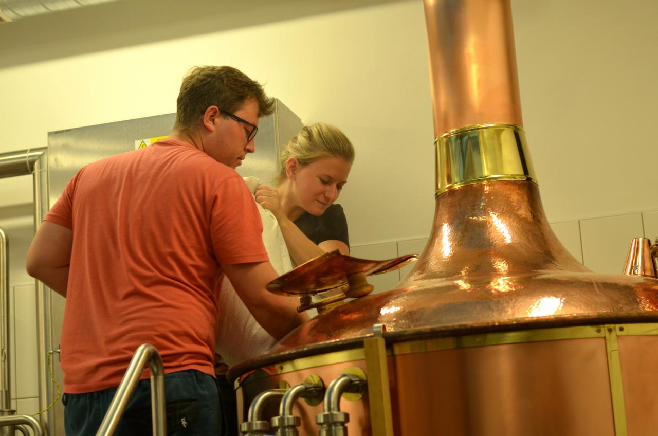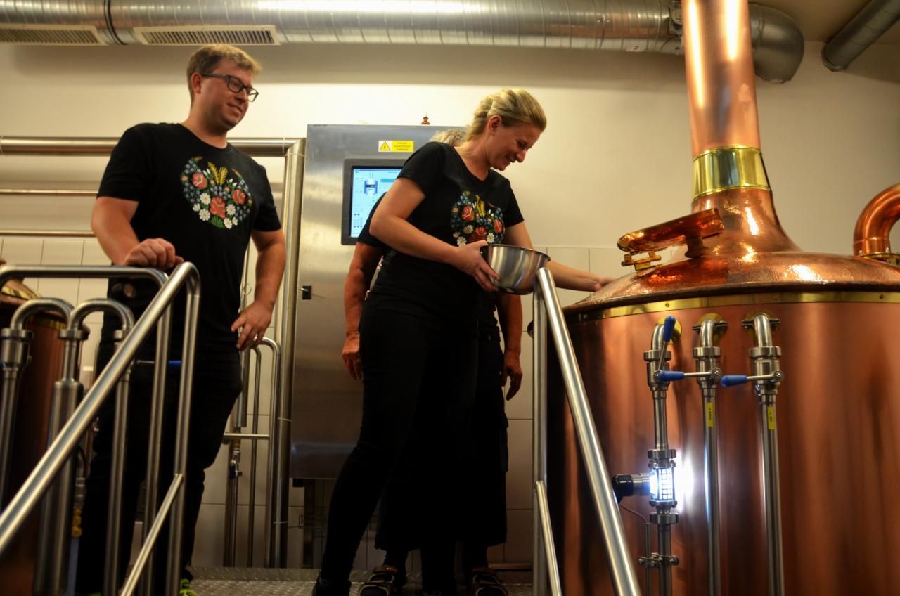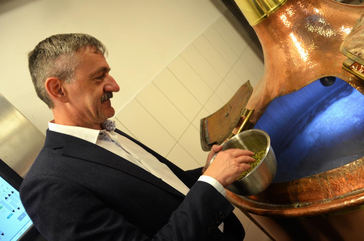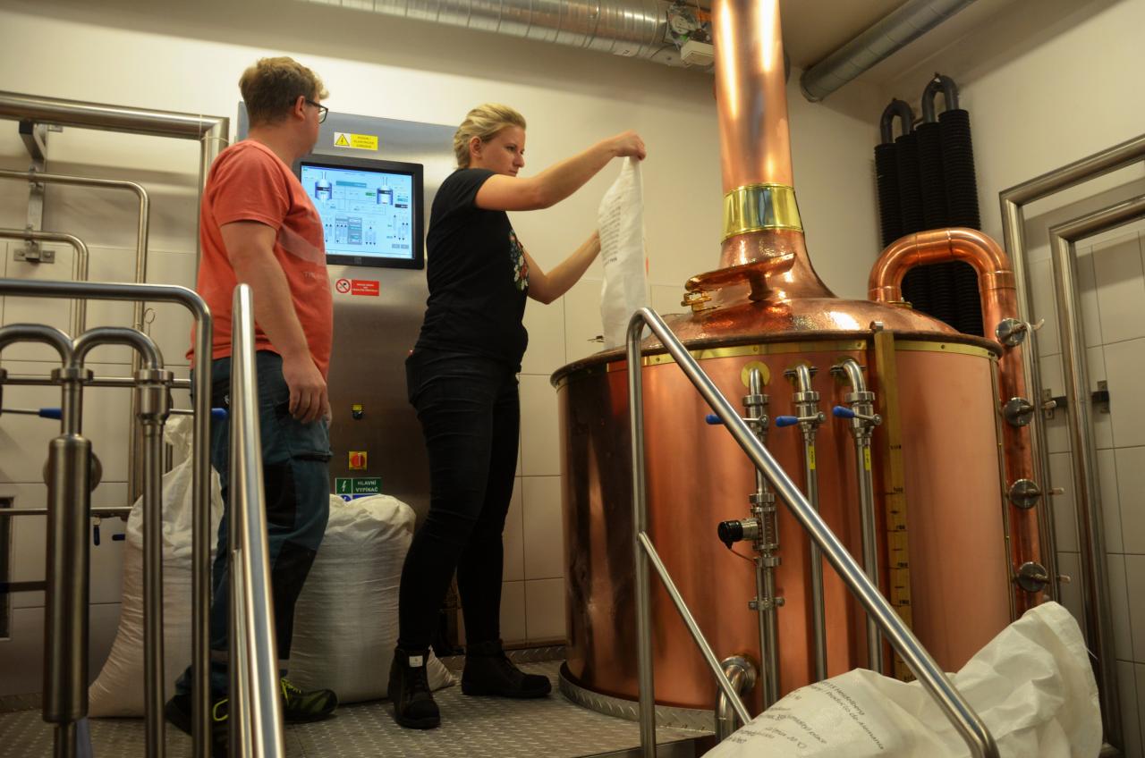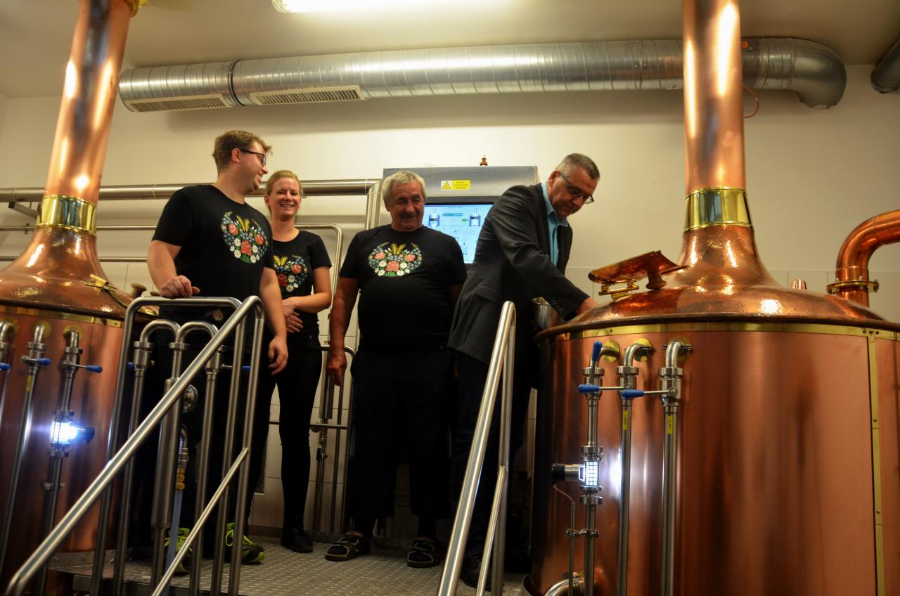 Ve středu 15. července 2020 se v městském pivovaru konala komorní slavnost, kdy do kotle, ve kterém se vaří první várka domažlického piva, přítomní vhodili hrst chmele. Tři sládkové pak zazvonili na zvon Advent pro zdar svého počínání a následně první várce piva požehnali Msgre Emil Soukup a domažlický vikář Miroslaw Gierga. Foto: Jana Jankovcová
