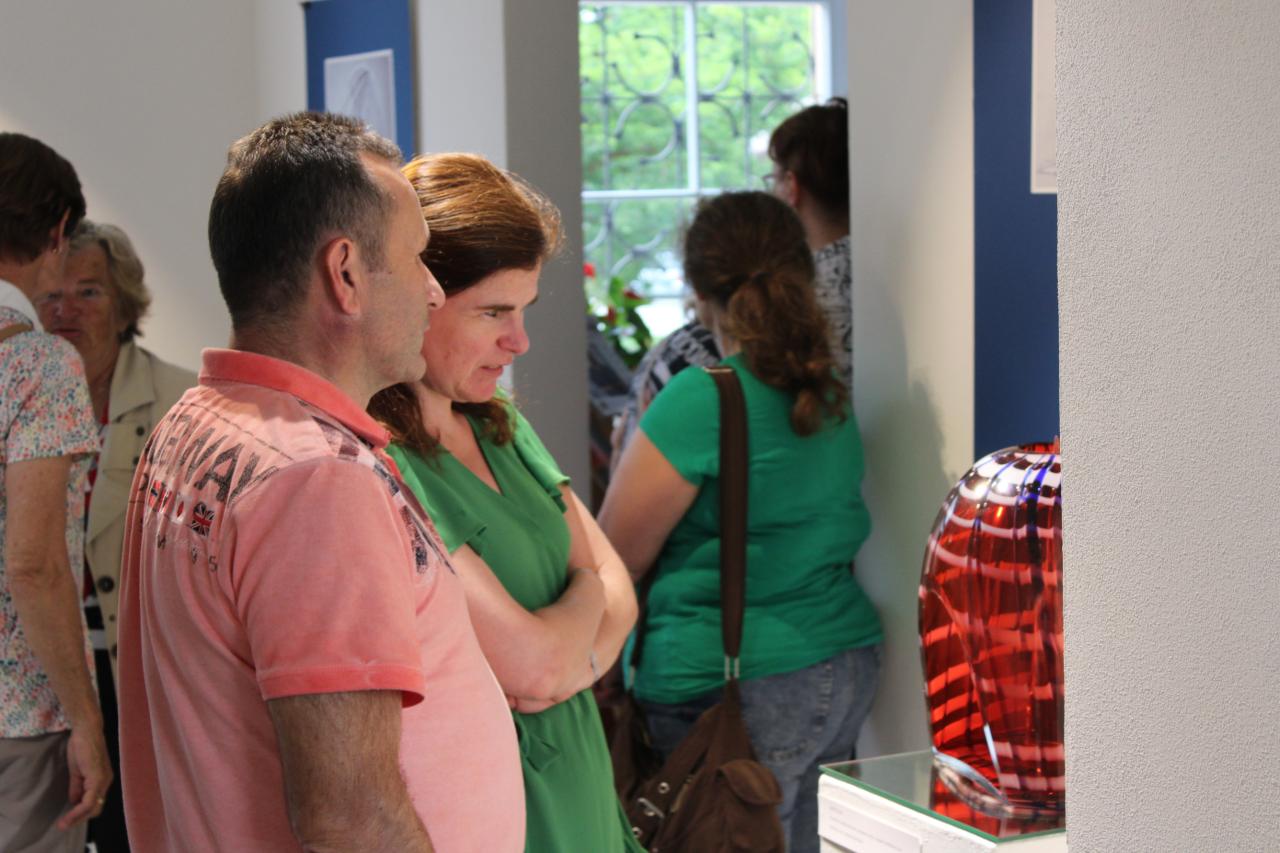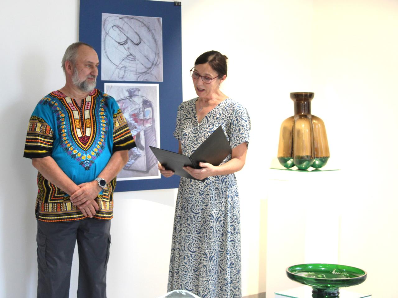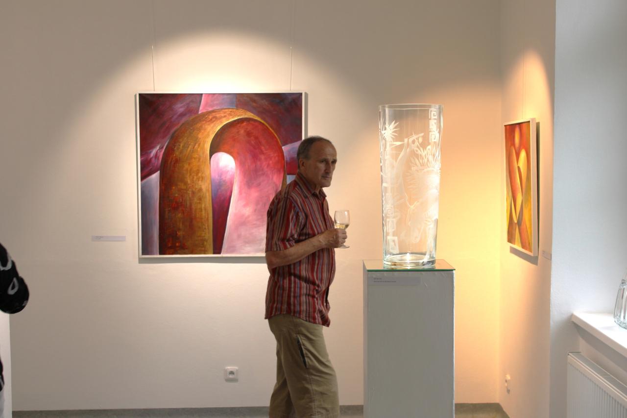 Výstava skla, obrazů a kreseb Ludvíka Kováře byla ve čtvrtek 20. června zahájena v domažlické Galerii bratří Špillarů v Husově ulici.