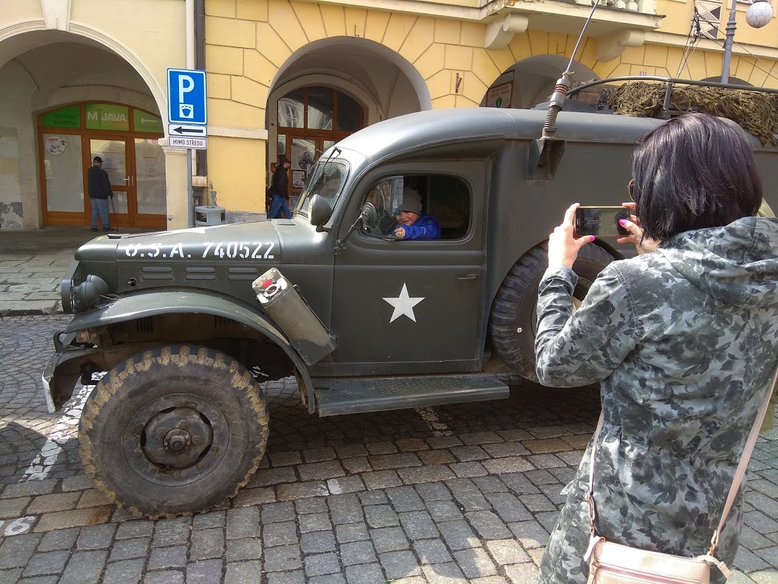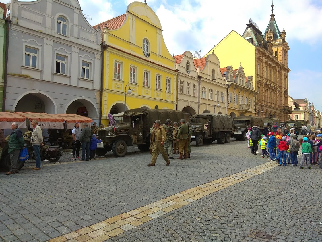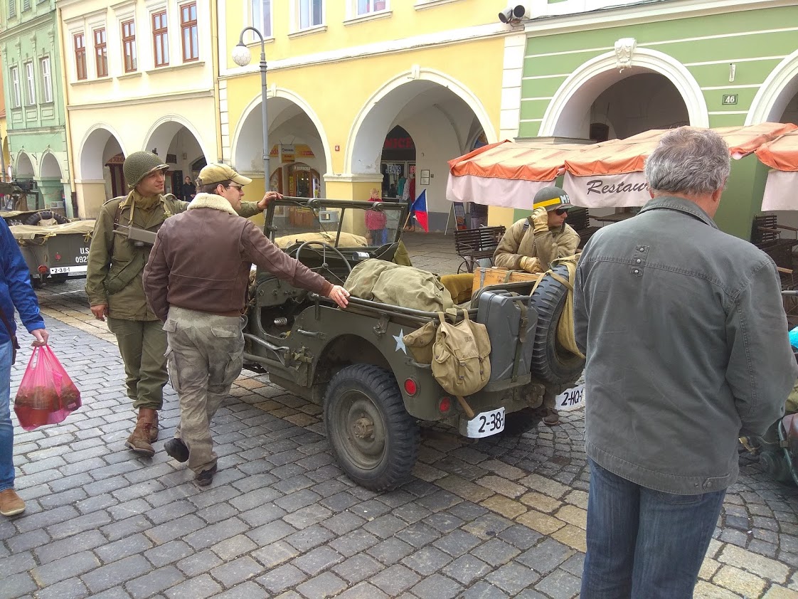 V úterý 30. dubna zhlédli přítomní na domažlickém náměstí rekonstrukci příjezdu americké armády z roku 1945.