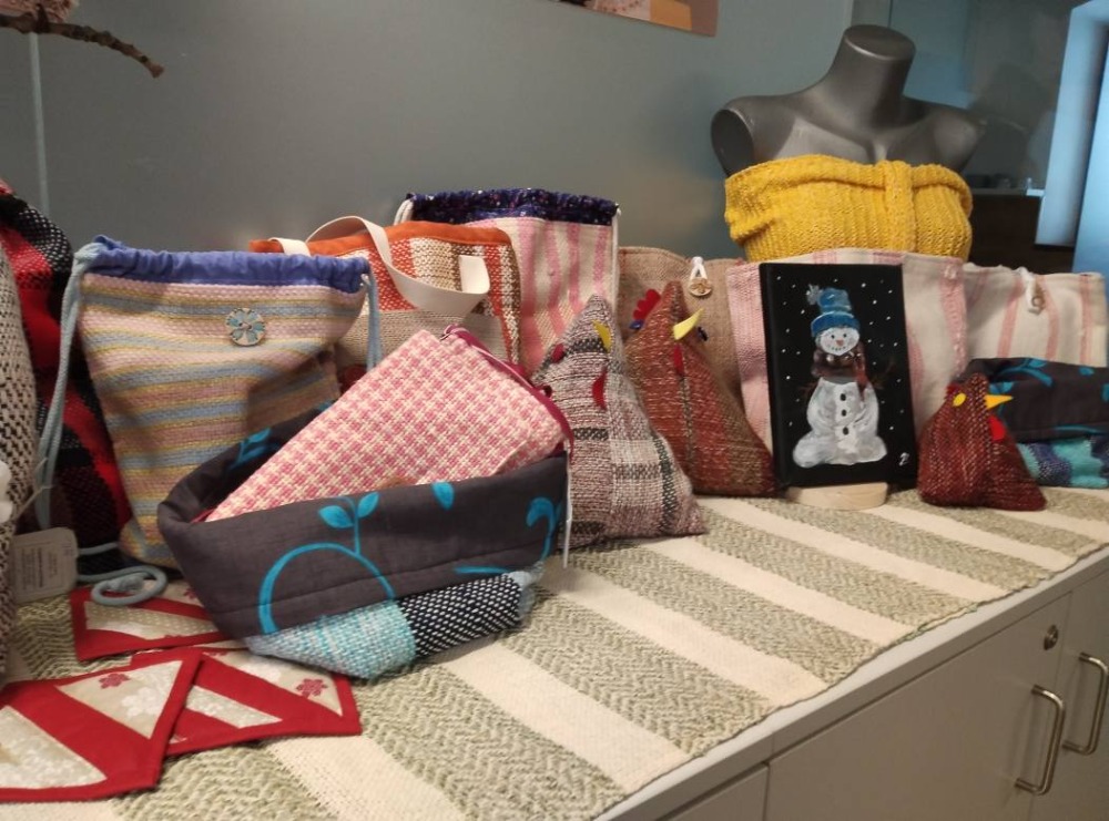 Klienti dílen s podporou pracovníků utkali na tkalcovských stavech základ pro vytvoření krásných dekorativních i užitných předmětů. Návštěvníci se mohou těšit na kabelky, batohy i ponča.
