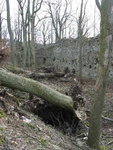 Skoro uprostřed východního úseku obvodové hradby bylo předsazeno zajímavé obranné zařízení, dvojice nestejně hlubokých půlkruhově zakončených baštiček po stranách obdélného jádra. Do hradu se vstupovalo při severovýchodním nároží ohrady. K vnitřnímu líci na východě i na jihozápadě přiloženy vedlejší budovy. Uvnitř západního vrcholu hradu stojí hranolová věž se zaoblenými rohy. Skoro uprostřed hradu se táhne skalnatá ostrožna na jejím východním konci bylo vyzdviženo věžovité lehce obdélné stavení, mělo původně dvě poschodí. Na západě navazoval na další zmizelý objekt. Hrad byl postaven asi v první polovině 14. století, východní předsazené stavení asi až z 15. věku. Již ve 2. čtvrti 16. století zpustl. Hrad je zapsán na seznam kulturních památek ČR.