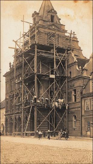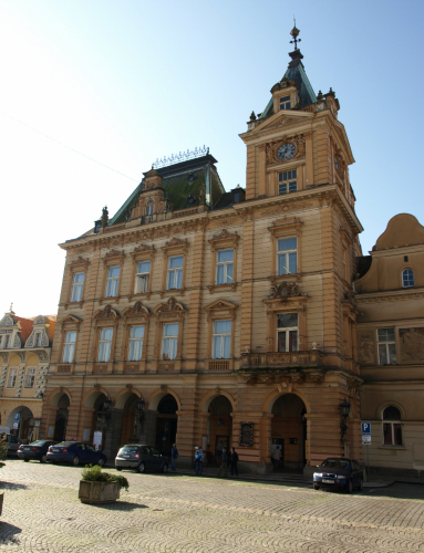 Uprostřed náměstí, přímo proti kostelu byla postavena radnice. V renesanční podobě poznamenané pozdním barokem, s pěkným gotickým portálem a po přestavbách v důsledku ničivých požárů, se dochovala do r. 1891. Pak byla zbořena, aby uvolnila místo dnešní moderní novorenesanční budově s věžičkou, dostavěné roku 1893.