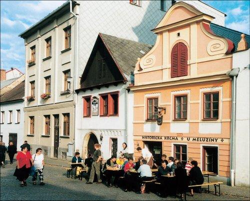 Historické domy ve Vodní ulici se stylovou krčmou U Meluzíny, na jejímž dvoře jsou dochovány zbytky městské hradby s rekonstruovaným ochozem