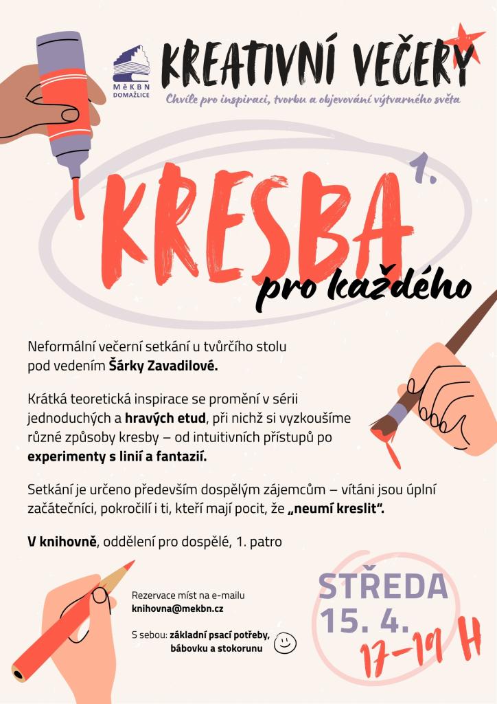 Krátká teoretická inspirace se promění v sérii jednoduchých a hravých etud, při nichž si vyzkoušíme různé způsoby kresby – od intuitivních přístupů po experimenty s linií a fantazií. Setkání je určeno především dospělým zájemcům – vítáni jsou úplní začátečníci, pokročilí i ti, kteří mají pocit, že „neumí kreslit“.