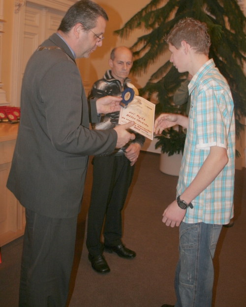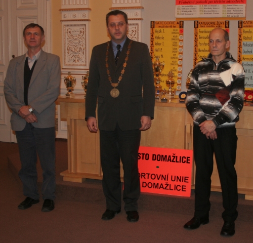 Poháry a plakety předávali nejlepším běžcům Chodska r.2007 starosta města Miroslav Mach, pan Karel Duchek a zástupce sportovní unie okresu Domažlice pan Miroslav Kabourek.