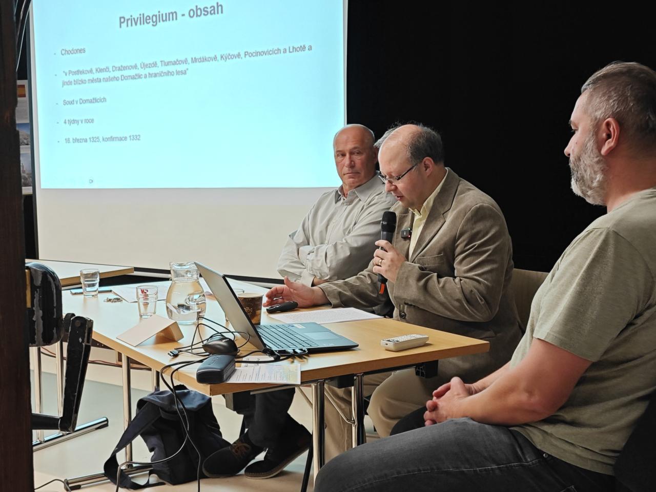 Tématem prvního příspěvku bylo Privilegium z roku 1325 v kontextu politiky Jana Lucemburského. Do sedm století vzdálené historie vzal přítomné na krátkou exkurzi Zdeněk Vašek z Ústavu dějin Univerzity Karlovy a archivu Univerzity Karlovy. Během konference se probírají i témata věnovaná Janu Sladkému Kozinovi, tvorbě malířů bratrů Špillarových , špýcharovým domům domažlických a tachovských Chodů nebo válečnému příběhu Jana Smudka a zdejšímu odboji. Celkem je připraveno na tři desítky příspěvků.