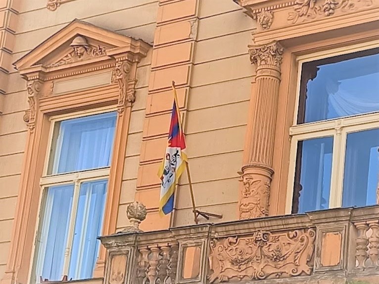 Vyvěšení schválila rada města. Tibetská vlajka se ve výroční den na domažlické radnici pravidelně objevuje více než dvě desítky let.