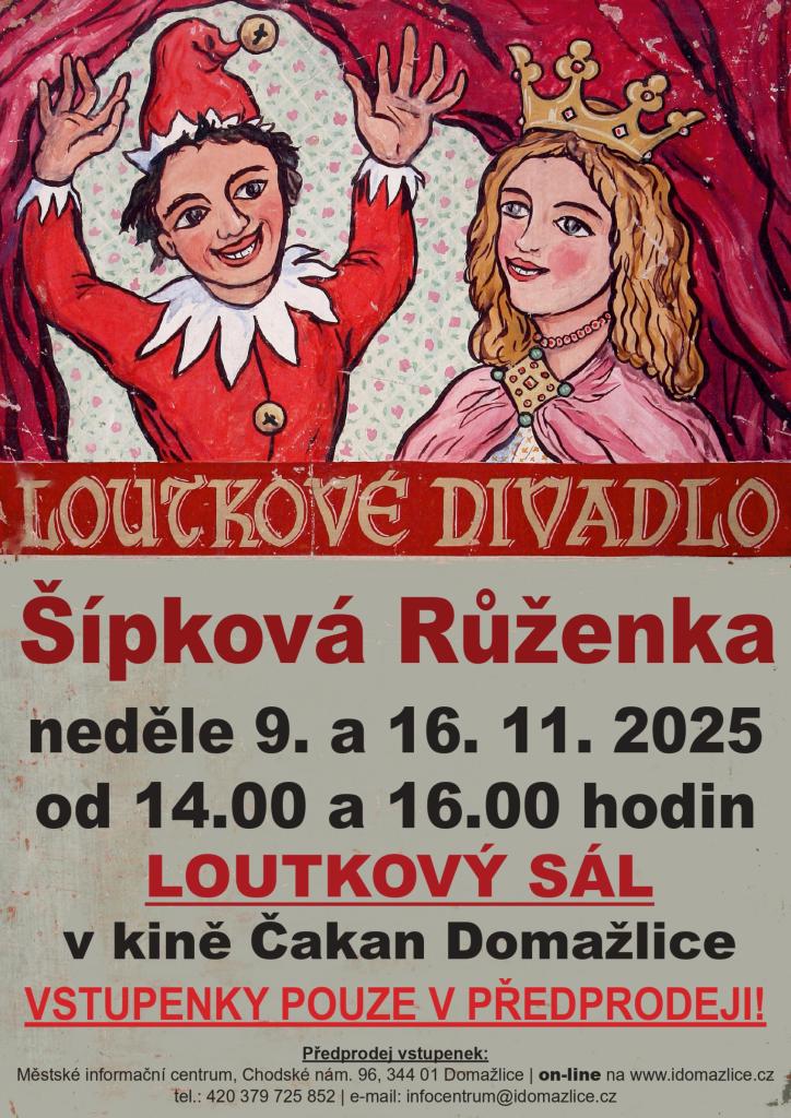 Po letní přestávce začínají hrát domažličtí loutkoherci. V listopadu ve 4 představeních (9. a 16. listopadu od 14:00 a 16:00) představí pohádku Šípková Růženka.