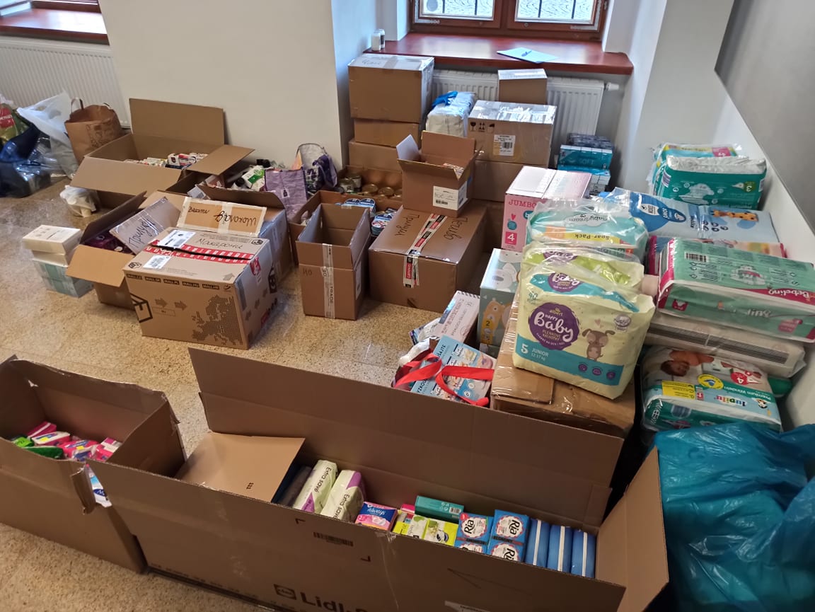 Sbírku zorganizovaly a koordinují dvě ukrajinské lékařky – Olena Demchenko a Oksana Ilnytska, které pracují v Domažlické nemocnici. Věci putují do malého města Pryluky, kam v tuto chvíli humanitární pomoc velkých organizací nedorazila (ta zatím dorazila do velkých měst).