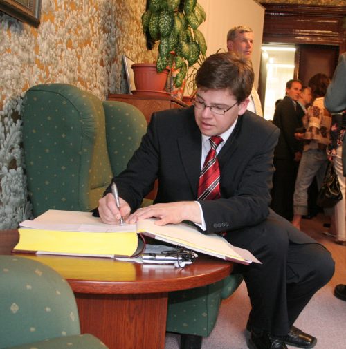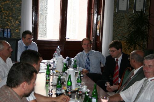 Po třetí hodině se opět na radnici, v kanceláři starosty Jiří Pospíšil zúčastnil setkání se zástupci hospodářské komory v Domažlicích, dalším významným účastníkem tohoto setkání byl Ing. Miroslav Kalous, náměstek ministra pro místní rozvoj, který má v referátu evropské fondy a o možnostech čerpání z těchto fondů na tomto setkání také přednášel.