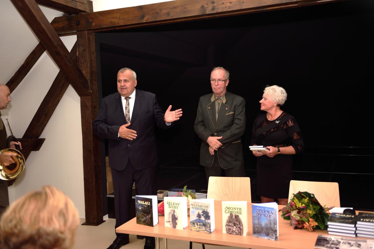 Nejnovější přírůstek pokřtil 11. září radní Plzeňského kraje pro kulturu, památkovou péči a cestovní ruch Libor Picka (na snímku vlevo). Právě Plzeňský kraj vydání knihy finančně podpořil. Akce se zúčastnil i domažlický místostarosta Jan Benc.