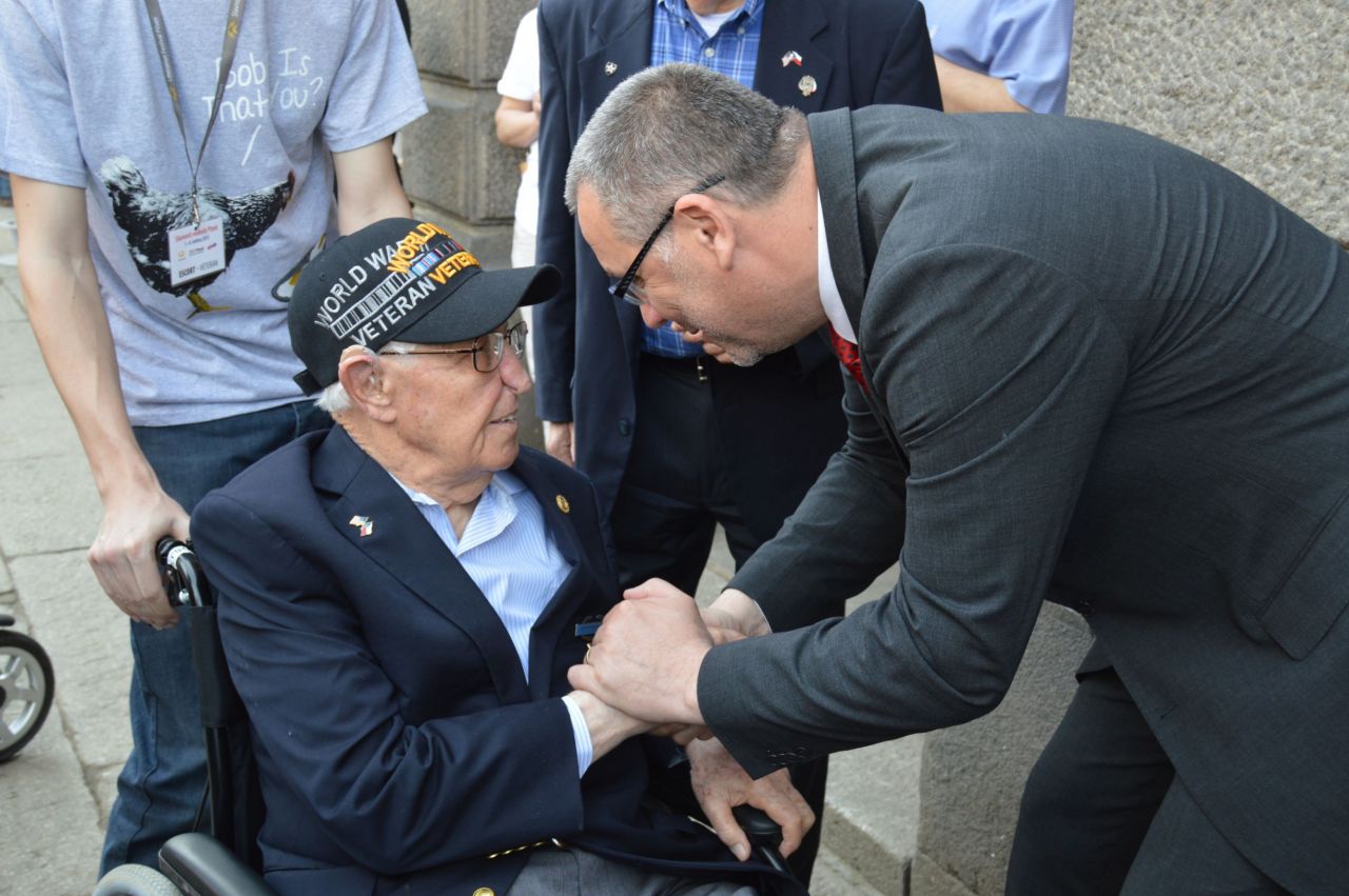 Především v duchu velkého poděkování a úcty k americkým osvoboditelům se nesl celý program Oslav osvobození v Domažlicích. Po pietních aktech byl zahájen oficiální program na náměstí před radnicí. „Loni jsem byl dojat, když přijeli veteráni v tom obdivuhodném věku, letos jsem dojat dvojnásobně,“ řekl starosta Domažlic Miroslav Mach. Jeho slova mířila k trojici mužů, kteří Domažlice před 70 lety skutečně osvobozovali a letos si oslavy opět nenechali ujít. Herman Geist, James Duncan a Robert Gilbert, kterému je neuvěřitelných 100 let, berou Domažlice jako svůj druhý domov.