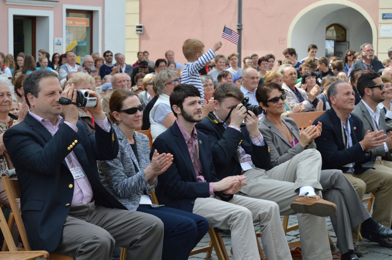 Velmi vzácnou návštěvou letošních jubilejních oslav byl velvyslanec USA v České republice Andrew H. Schapiro, jehož předci dokonce z Domažlic pochází. „Je mi velkou ctí že dnes můžu být s vámi v tomto krásném historickém městě. Je třeba si uvědomit, že američtí vojáci sem před 70 lety nepřijeli zabírat nové území nebo přírodní zdroje, ale přijeli bojovat za svobodu a nové hodnoty a principy,“ uvedl Schapiro, který také přijal pozvání domažlického starosty na letošní Chodské slavnosti. „Nevím ještě, jaký mám přesný program, ale pokud to bude možné, rád bych tento kraj, ze kterého pochází i sestřenice mé babičky, rád lépe poznal a ukázal také mé rodině,“ řekl.