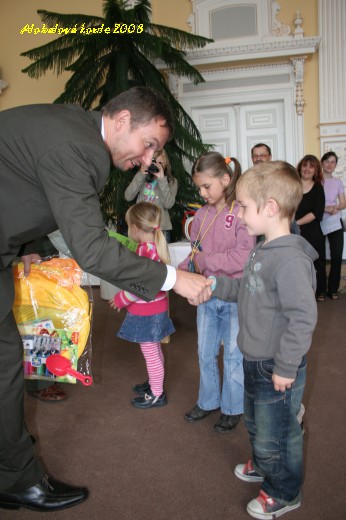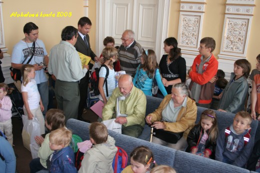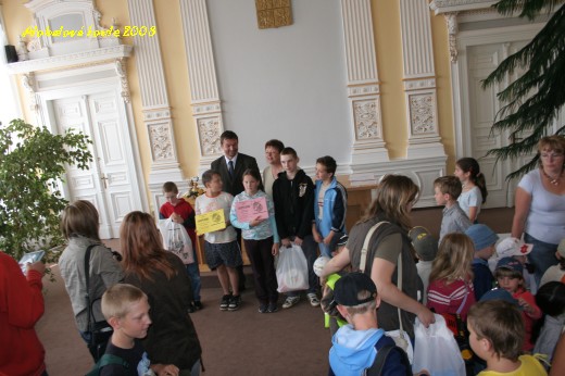 Takhle to vypadalo při slavnostním předání cen nejúspěšnějším účastníkům XV. ročníku soutěže "O největší alobalovou kouli", které proběhlo 18.6.2008 v obřadní síni domažlické radnice.