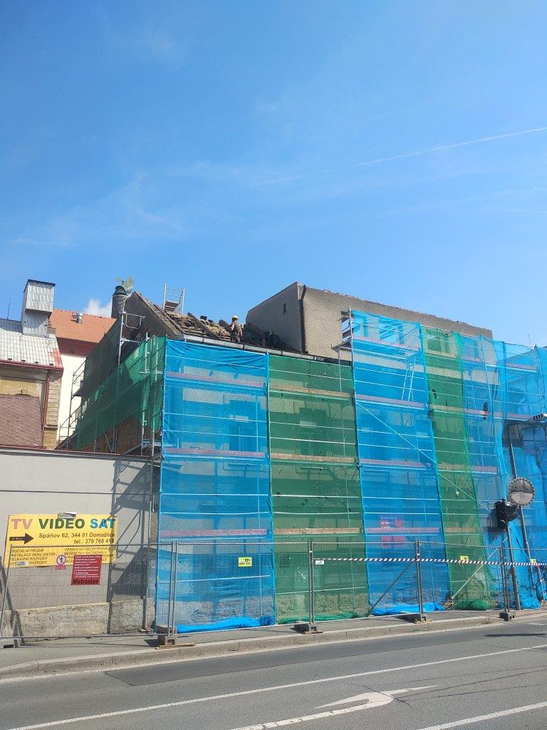 Na jižním křídle probíhají demoliční a bourací práce původní jižní přístavby včetně střešního pláště a krovu. V suterénních prostorách obou křídel pracovníci těží zeminu pod novou základovou desku a budou zde pokračovat pokládkou ležaté kanalizace pro obě křídla.