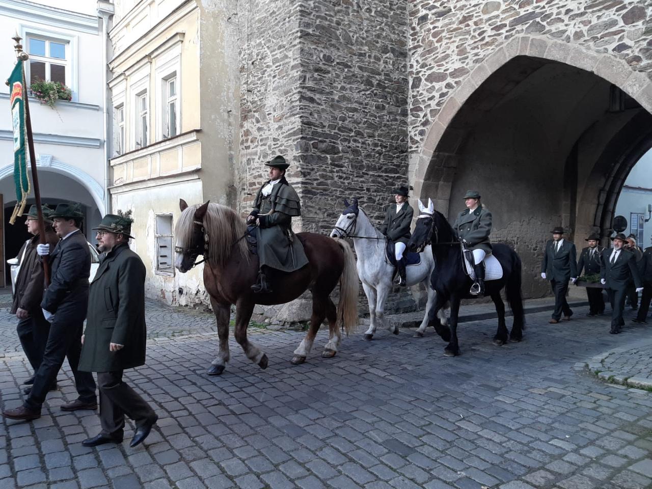 Před zahájením mše svaté ku cti a slávě patrona myslivců svatého Huberta v arciděkanském kostele na domažlickém náměstí přijela družina tohoto světce. Účastníky průvodu přivítal starosta Stanislav Antoš. V průvodu hráli trubači OMS, na mši dále účinkovaly Lovecké trio Praha a pěvecký sbor Canzonetta.