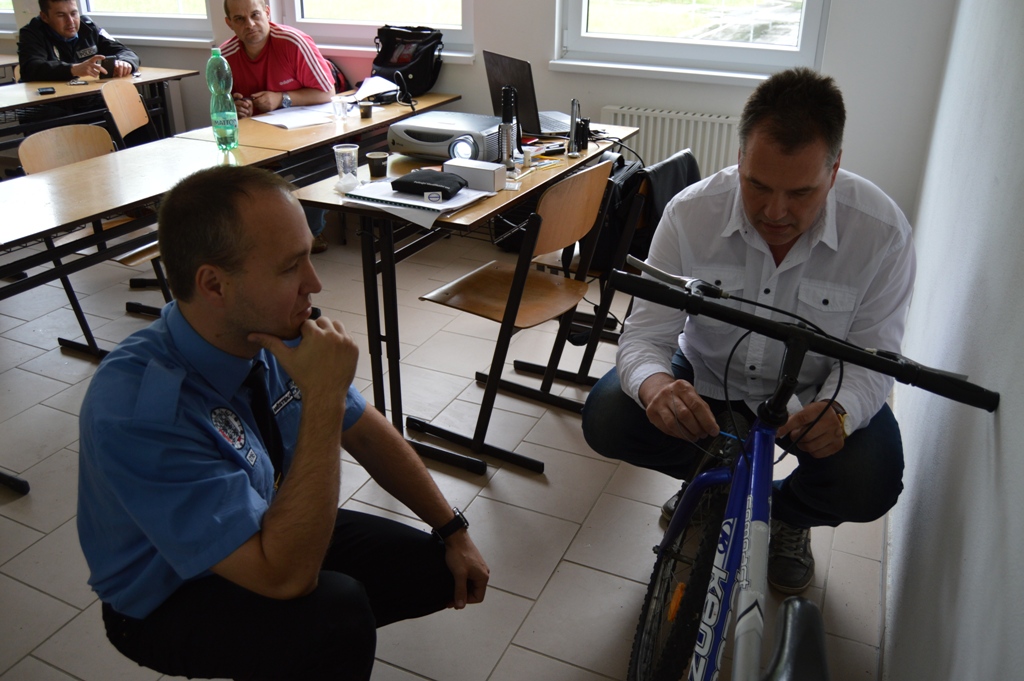 Školení prováděl garant značení p. Kolařík z Ostravy a kromě domažlických strážníků se ho účastnil i vedoucí strážníků z Přeštic, protože Městská policie Přeštice by se v příštím roce do projektu značení jízdních kol pomocí syntetické DNA ráda zapojila.