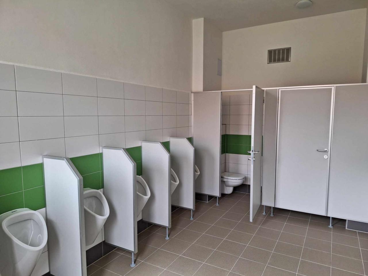 Dělníci a řemeslníci během prázdnin stihli provést opravy toalet dívek, chlapců a toalet zaměstnanců, rovnání podlah, nový nátěr topných těles, nové obklady stěn, podlah, instalovali sanitární příčky, pisoáry, záchodové mísy a dveře, čekalo je i osazení nových umyvadel, položení nových rozvodů, vyspravení stěn, malby zdí a další drobné práce s rekonstrukcí spojené.