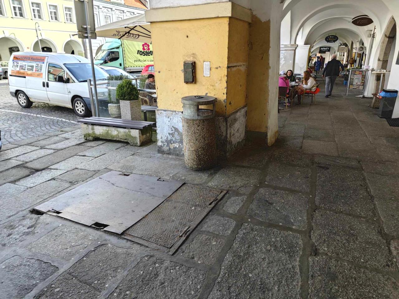 ,,Původně jde o vstup do sklepa pod budovou MKS. Dříve sloužil jako zázemí tehdejší restaurace Slavia. Právě tudy se spouštěly sudy. V šachtě je po desetiletí zborcená plošina na jejich svážení. Vrata jsou vodorovně uložená na pomezí venkovního chodníku a podloubí. Jsou zkorodovaná, i z bezpečnostních důvodů je nutné je odstranit a vhodným způsobem zakrýt vstup," popsal starosta Stanislav Antoš.