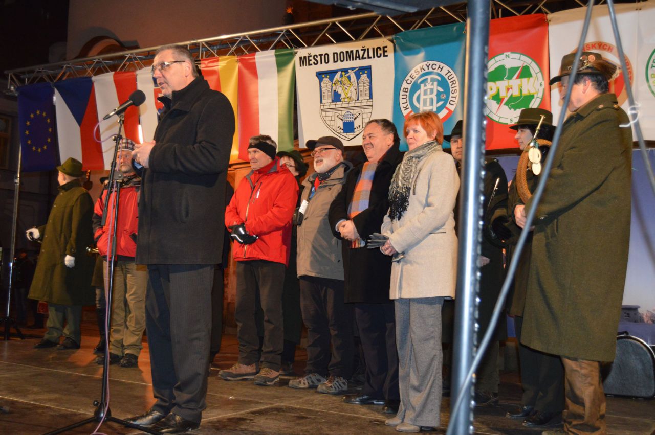 Od 19 hodin se poté konalo slavnostní zahájení XV. Českého zimního srazu turistů v Domažlicích přímo na náměstí před radnicí. V úvodu nechybělo vystoupení ponocného a také trubačů. K milovníkům zimní turistiky, kteří na sraz do Domažlic vážili cestu, promluvili významní hosté. Kromě starosty Domažlic všechny přivítal například senátor Jan Látka nebo náměstkyně hejtmana Plzeňského kraje Ivana Bartošová.